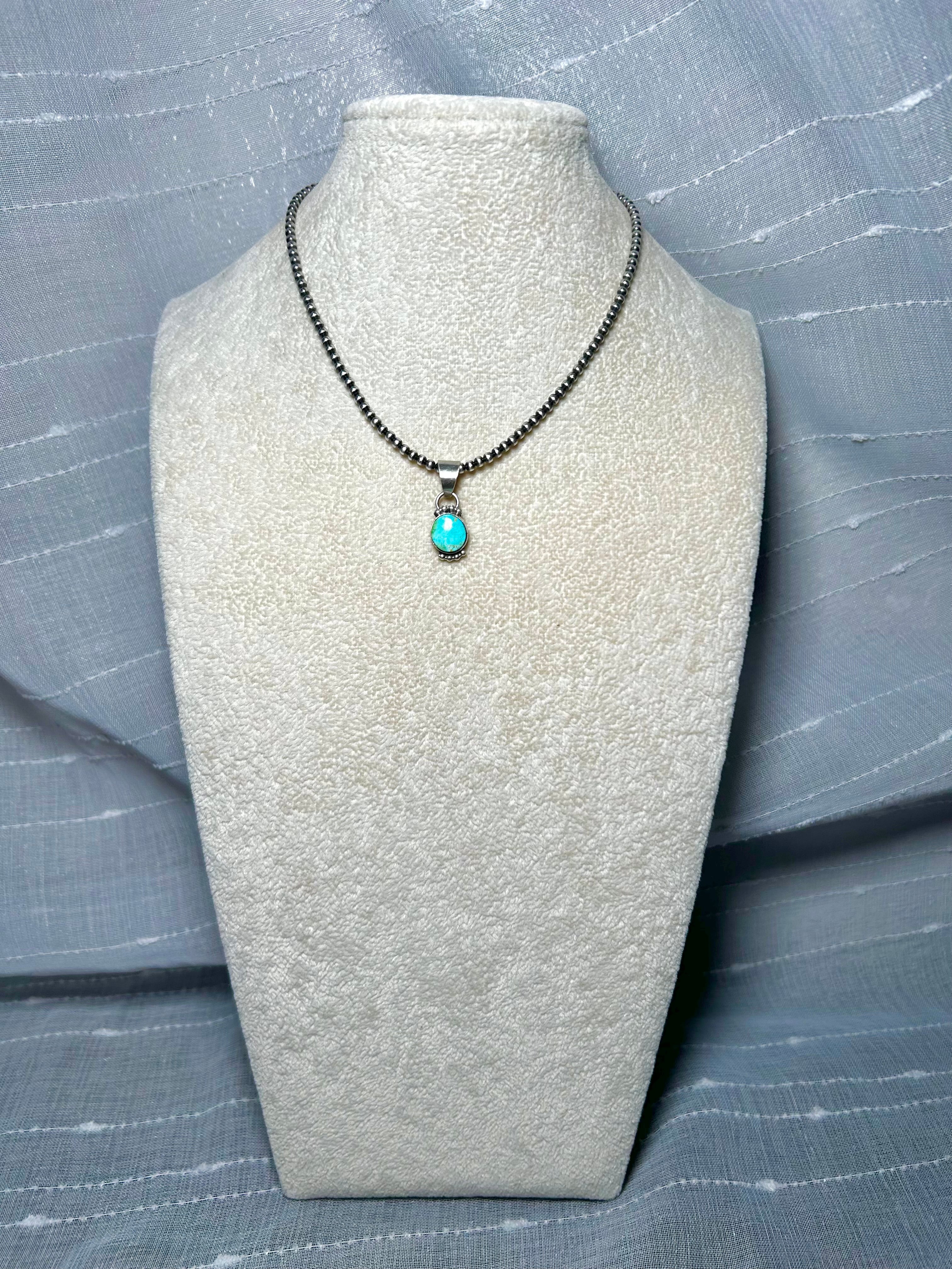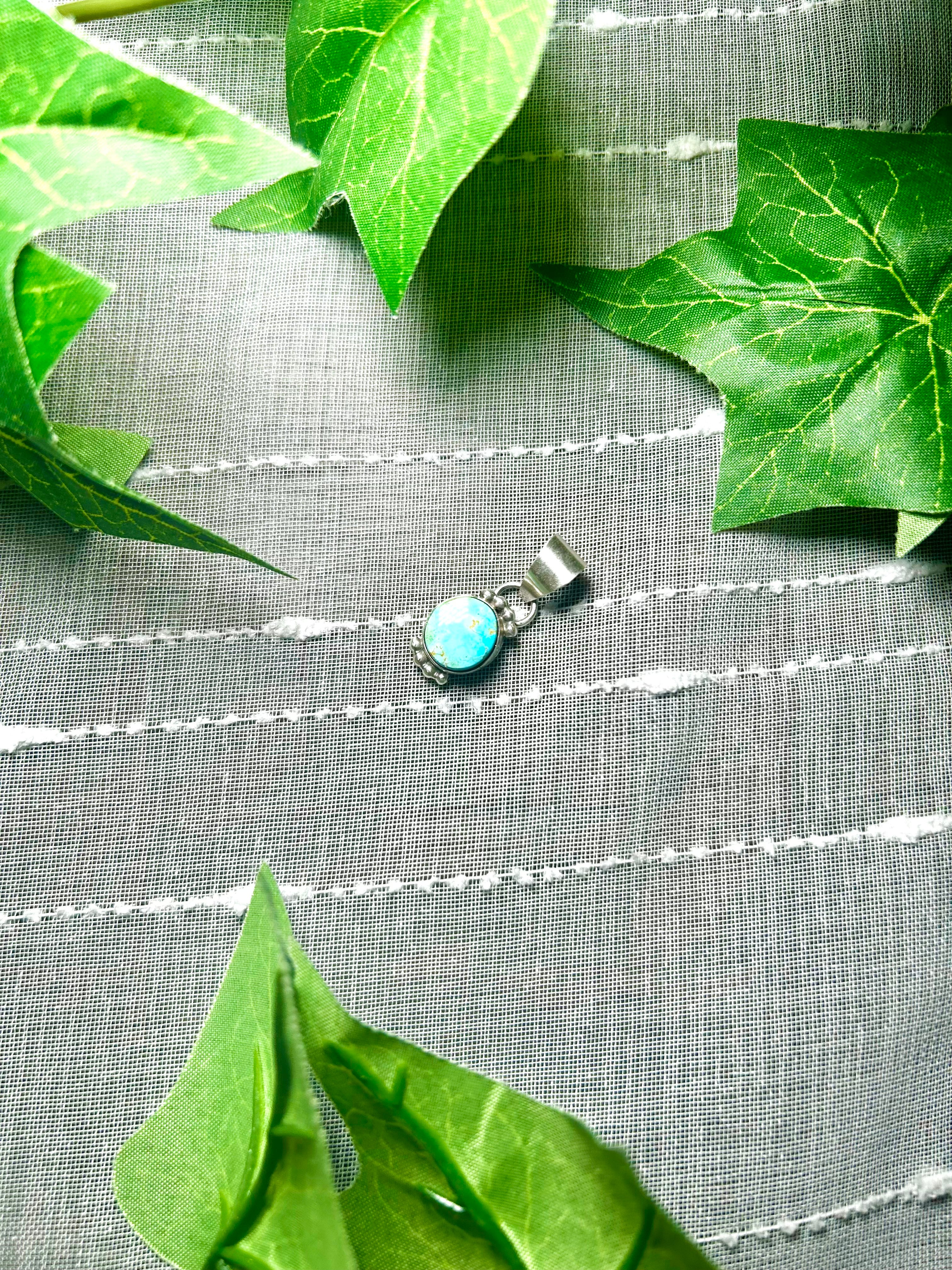 Navajo Made Sonoran Mountain & Sterling Silver Pendant. It measures 1 1/8 inches long and 3/8 of an inch wide. Pendant Only! Signed by the artist and stamped sterling silver.