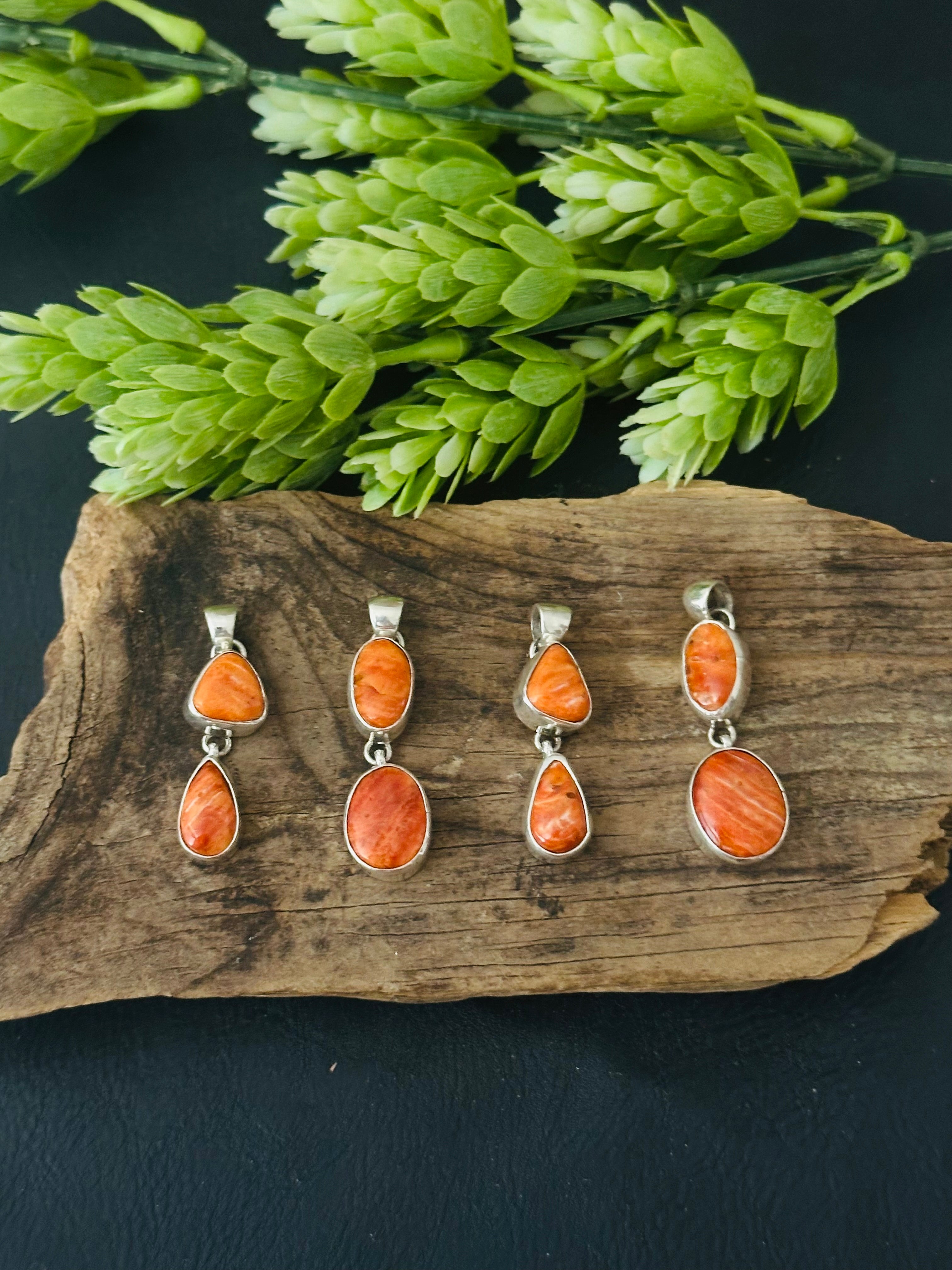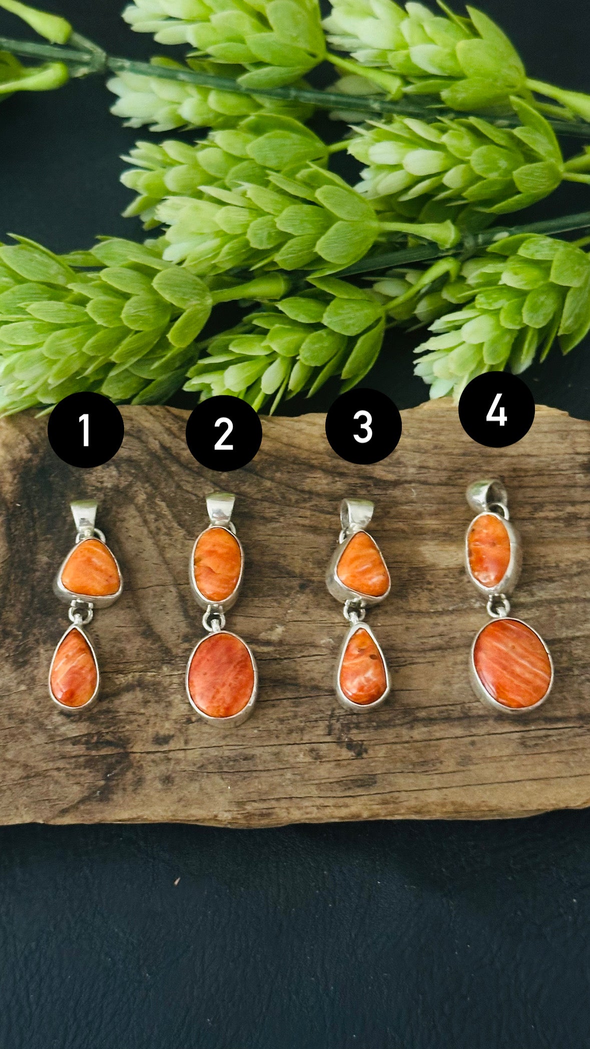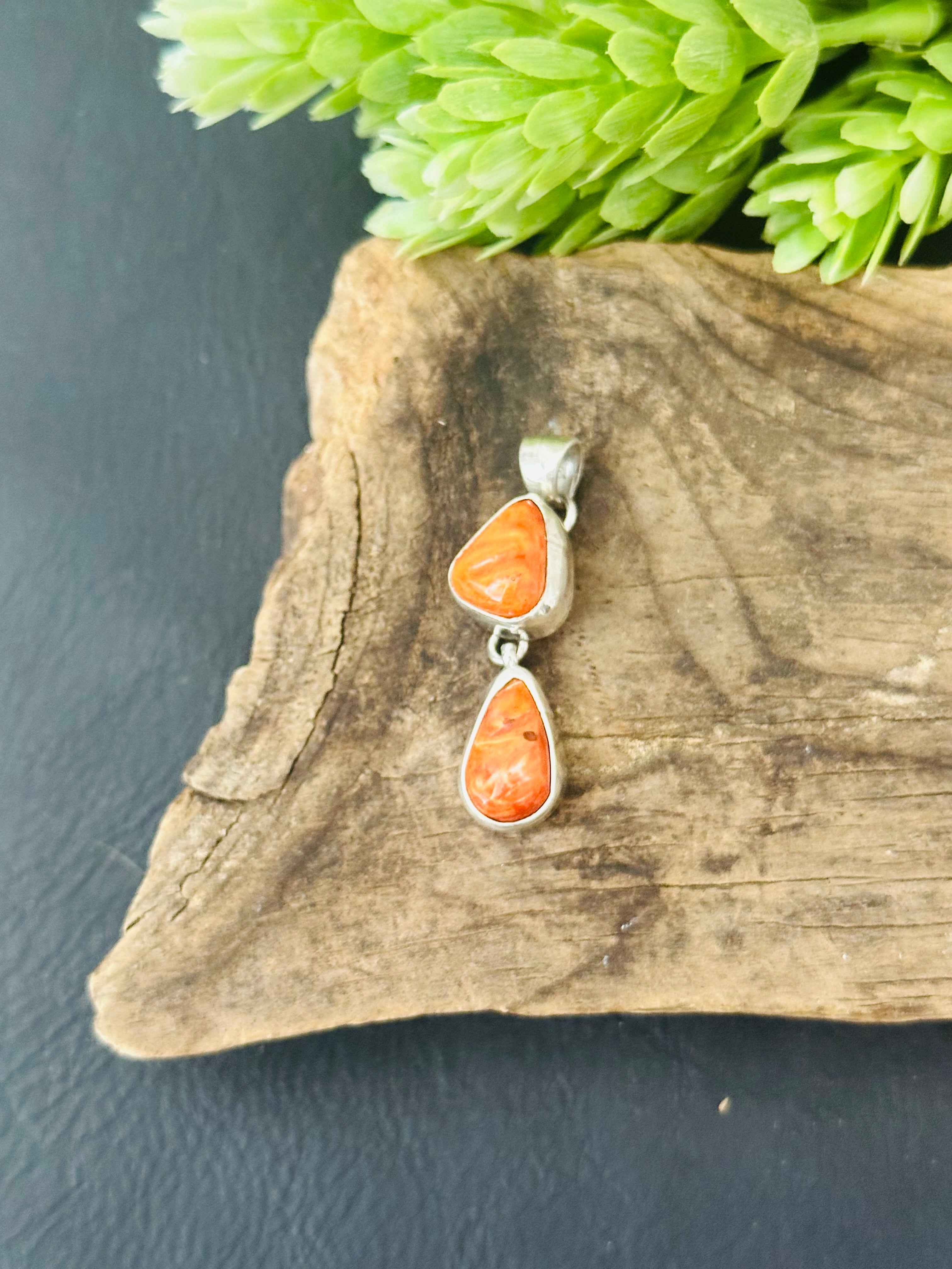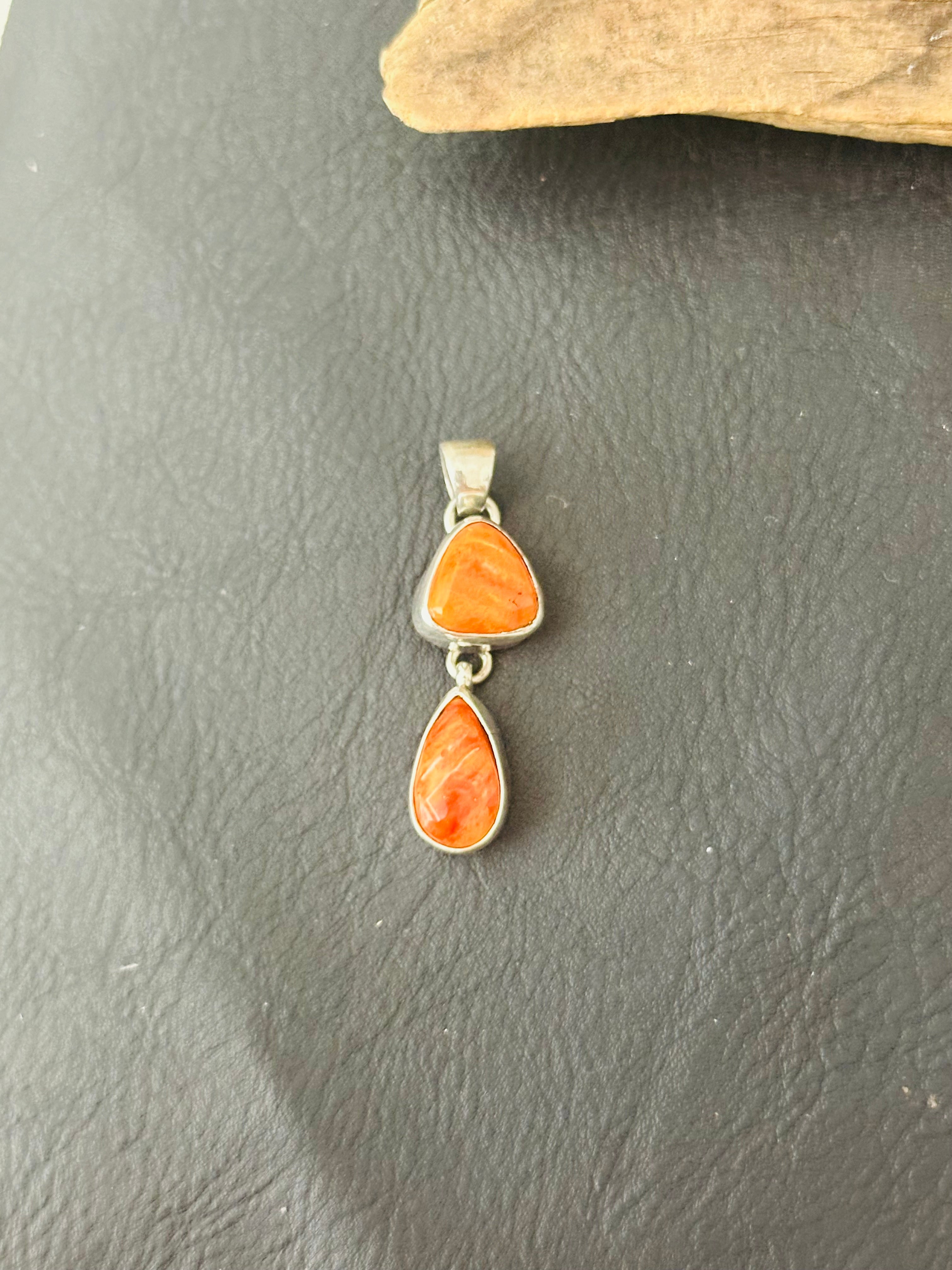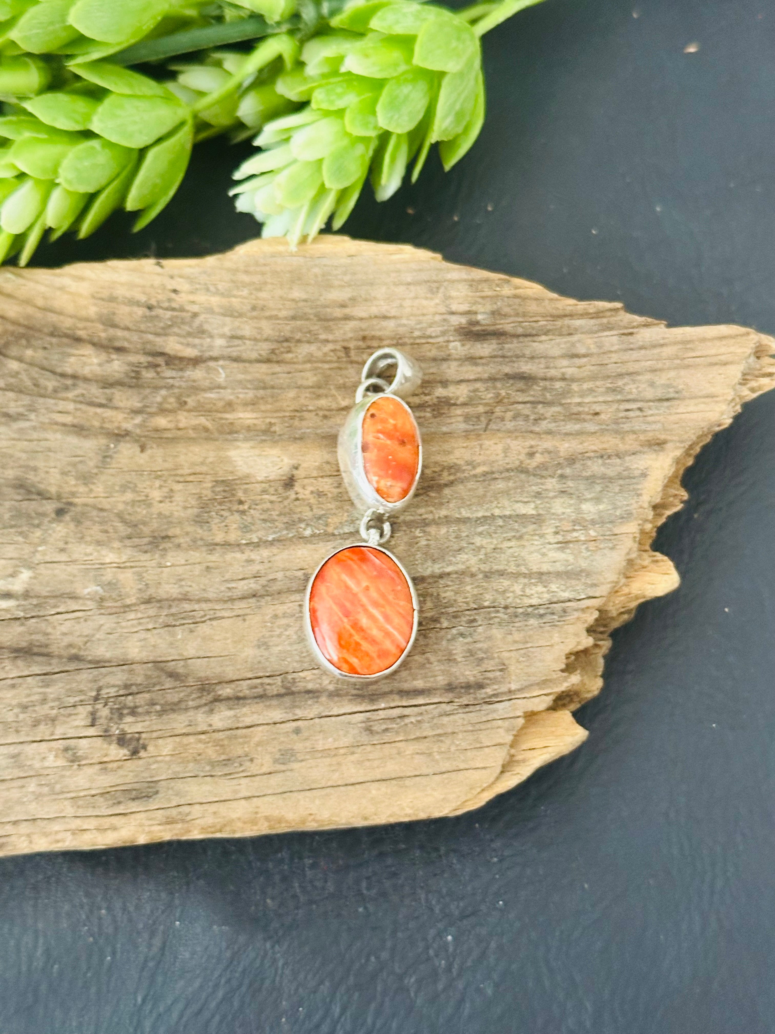 Gorgeous pendant, very well made. Navajo Made Spiny Oyster & Sterling Silver Pendant. It measures 1 3/4 inches long and 1/2 of an inch wide. Pendant Only. Signed by the artist and stamped sterling silver.