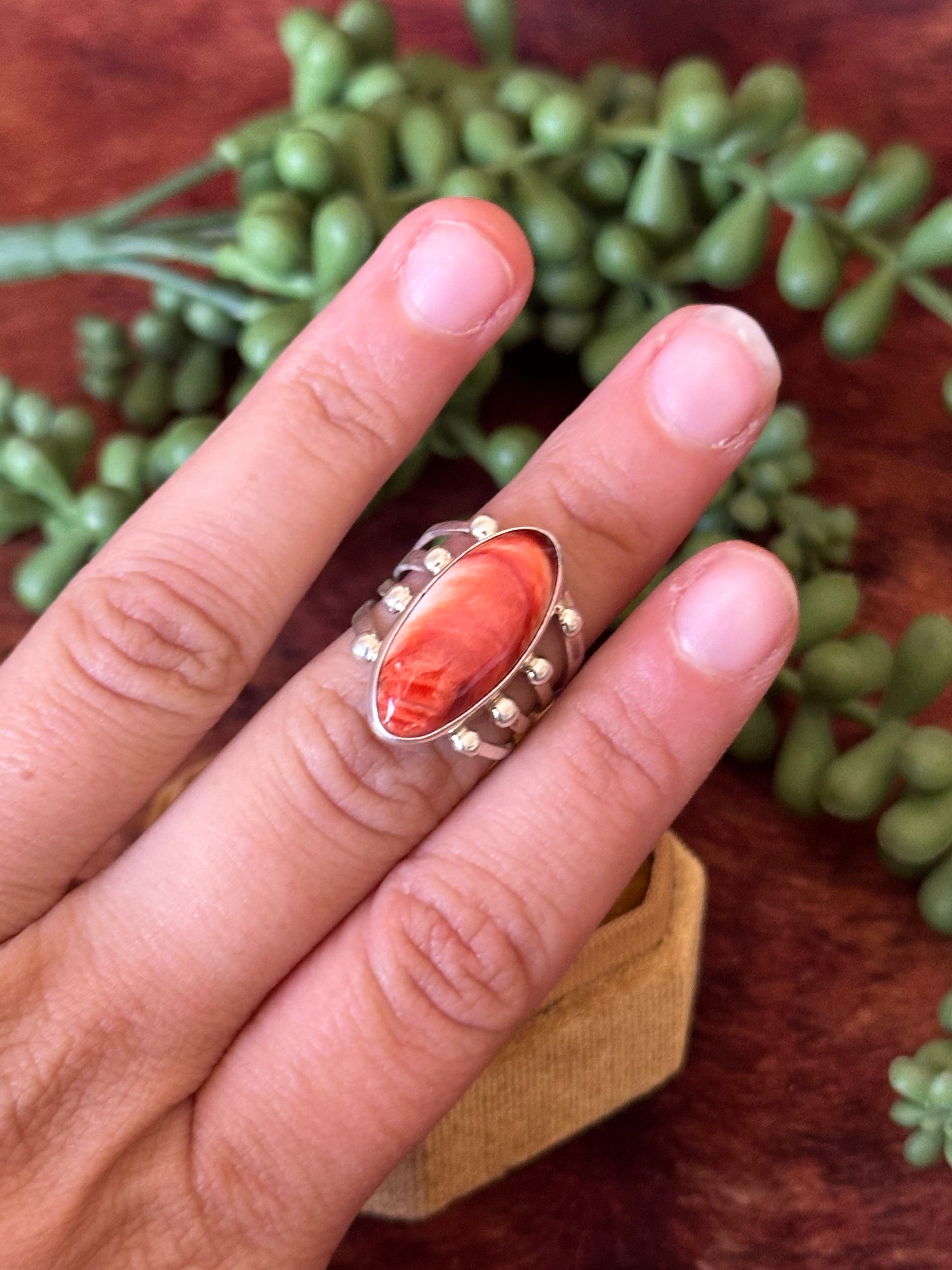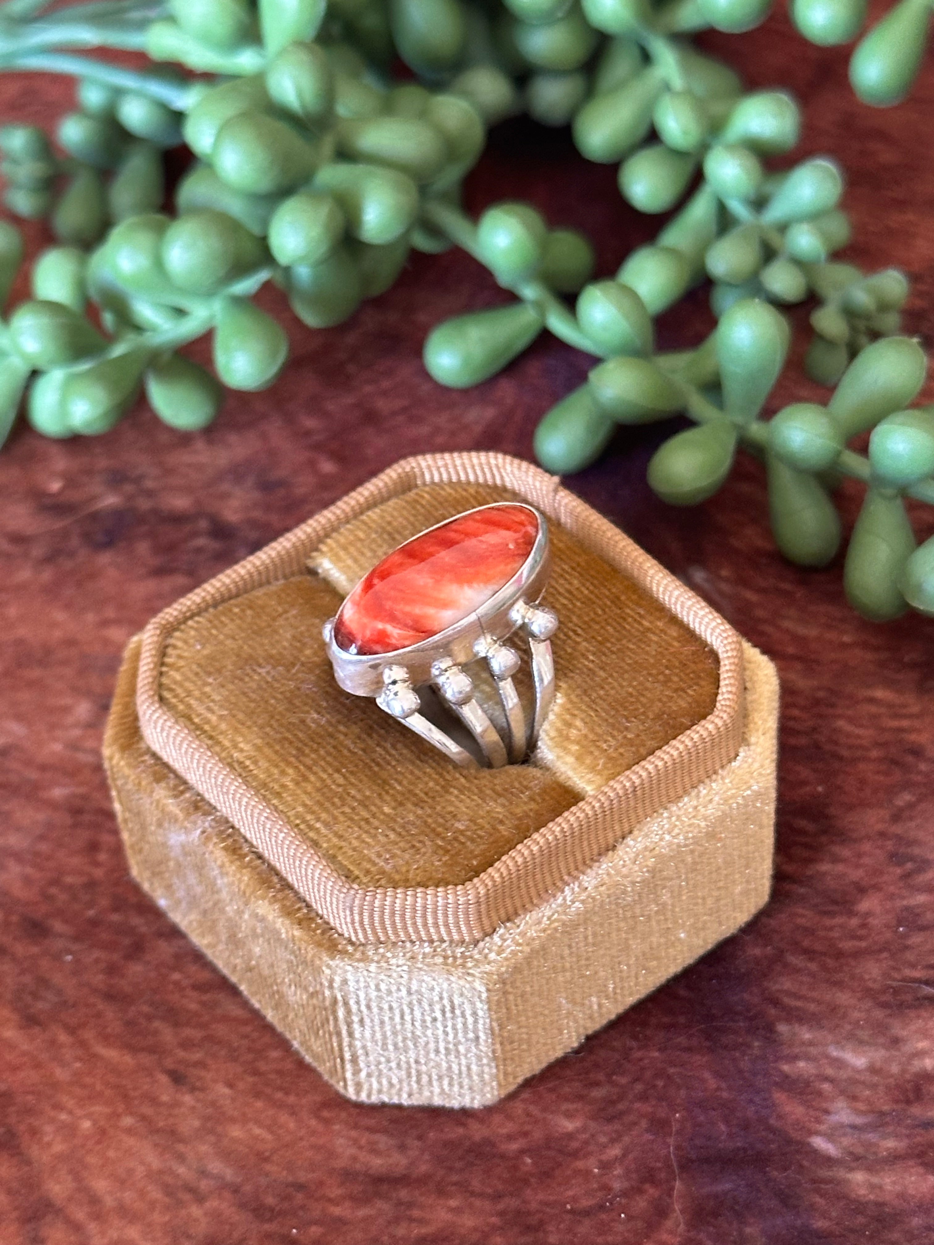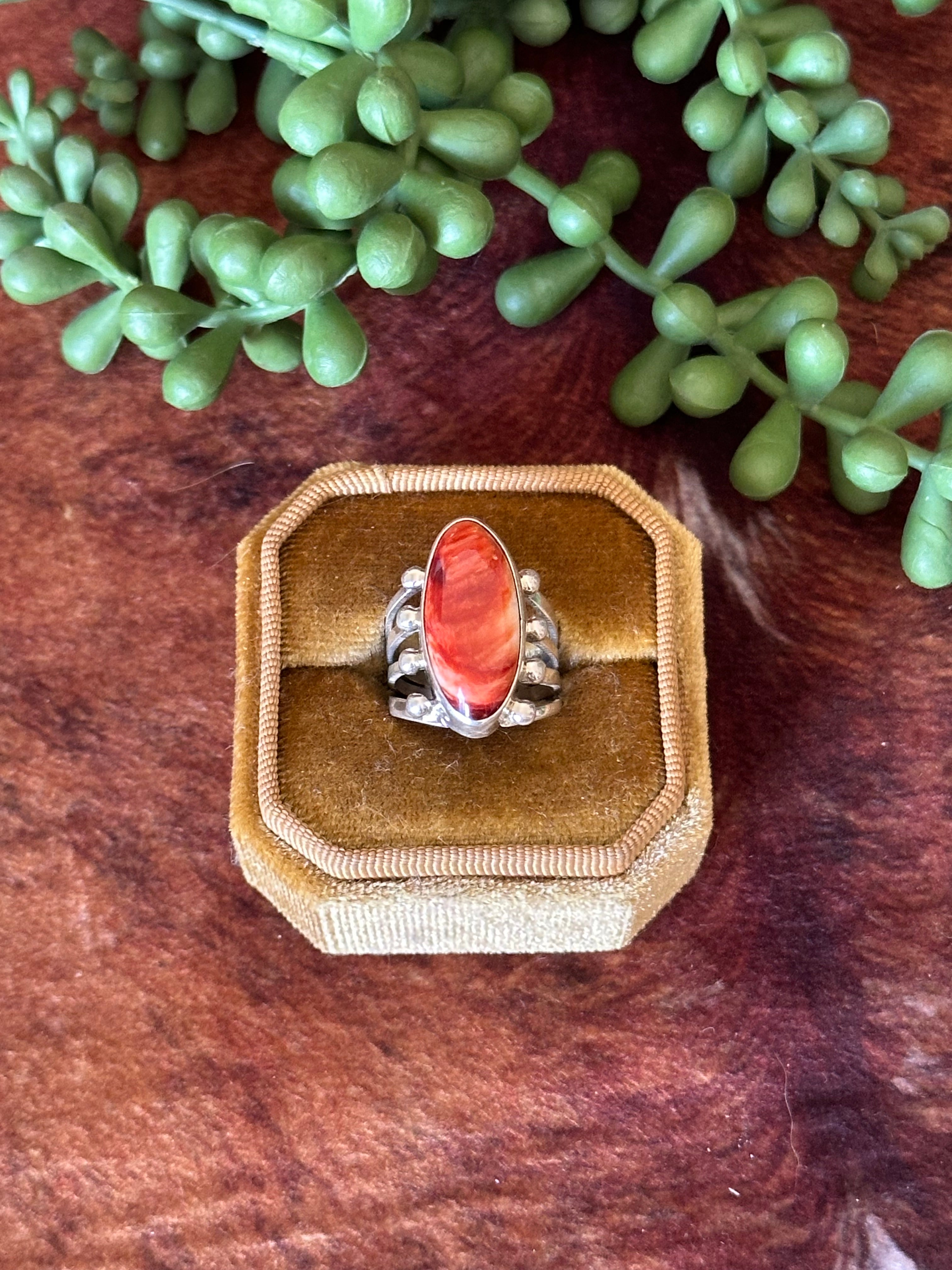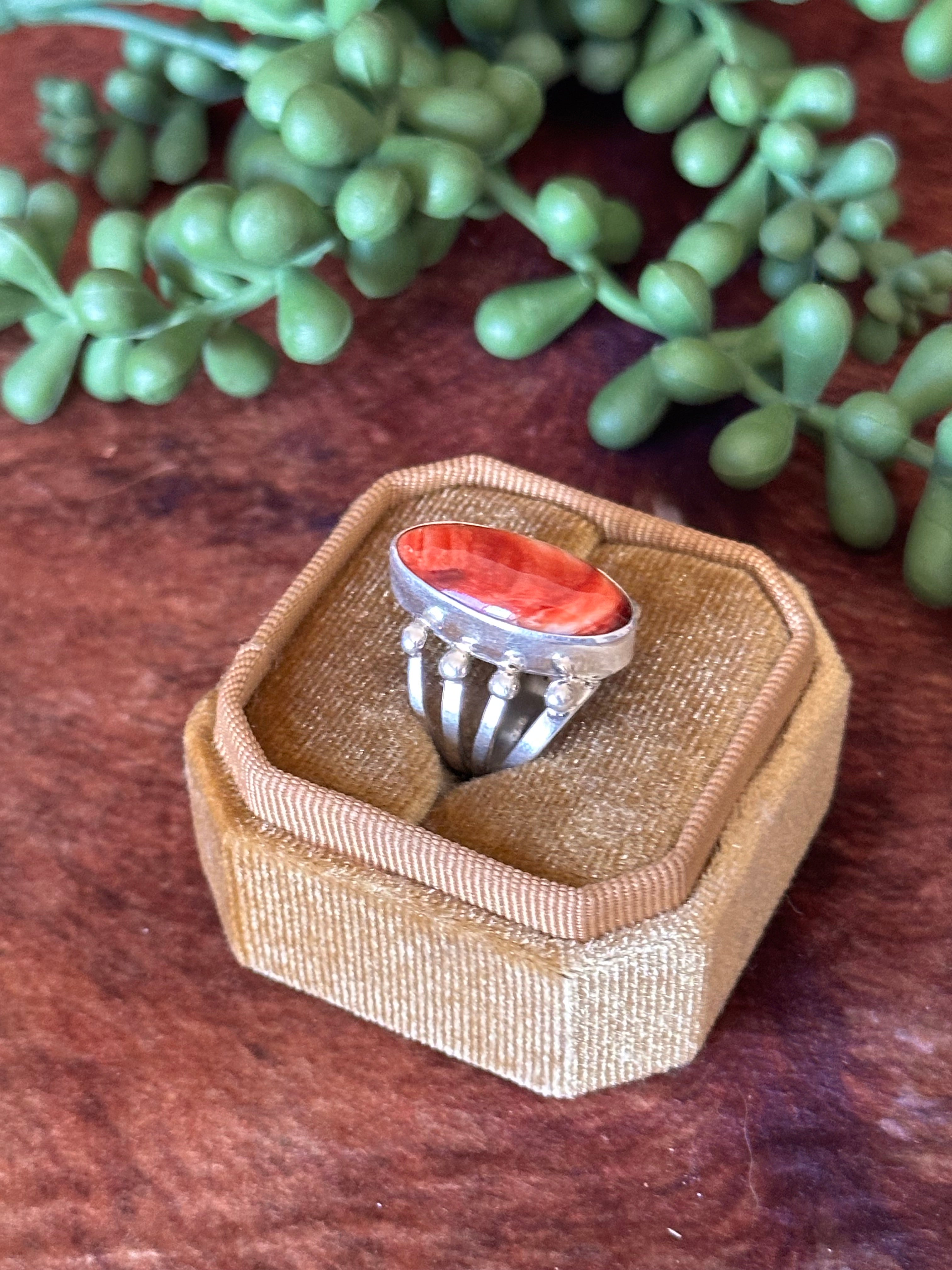 Navajo Made Spiny Oyster & Sterling Silver Ring Size 5.5