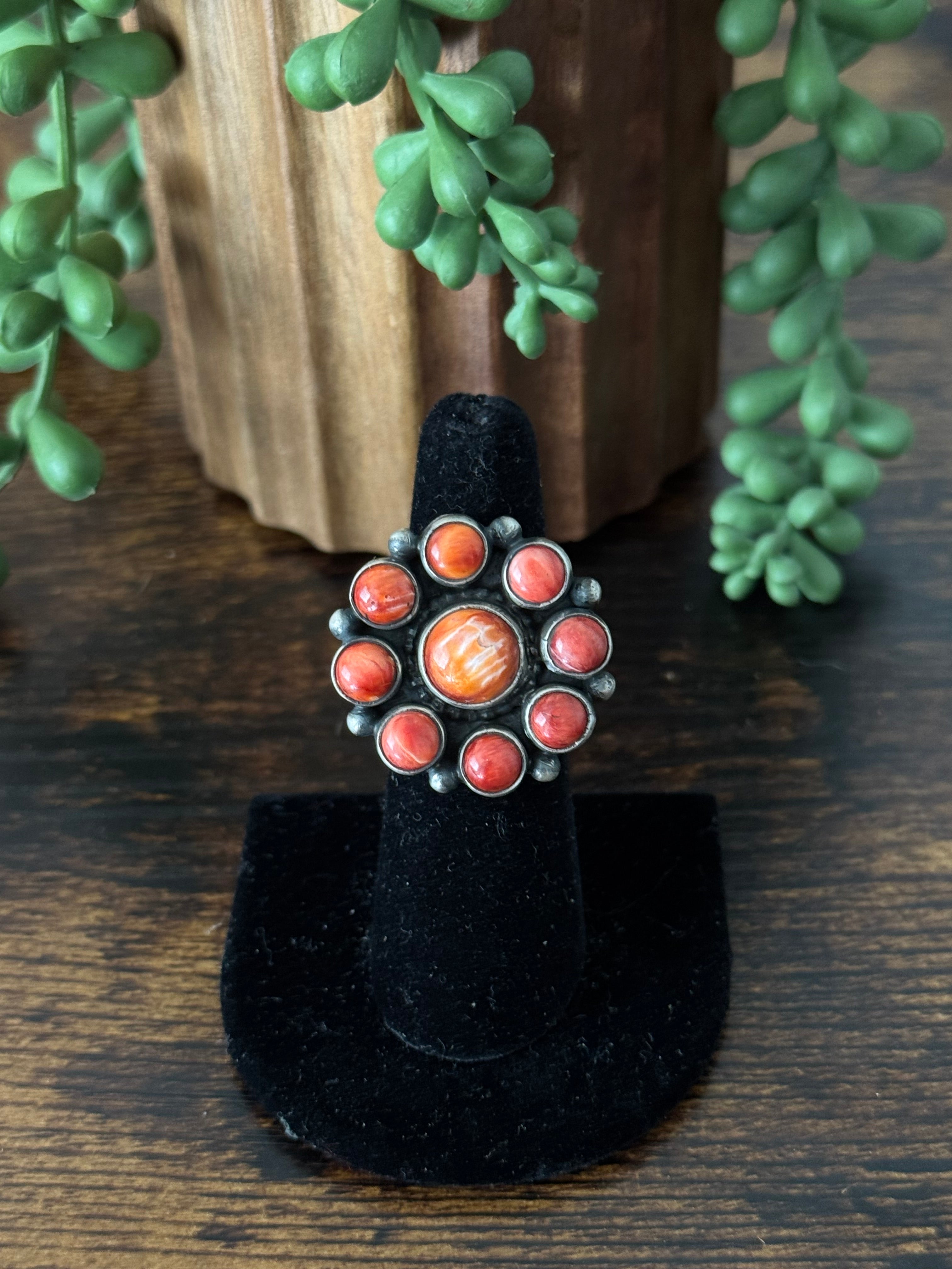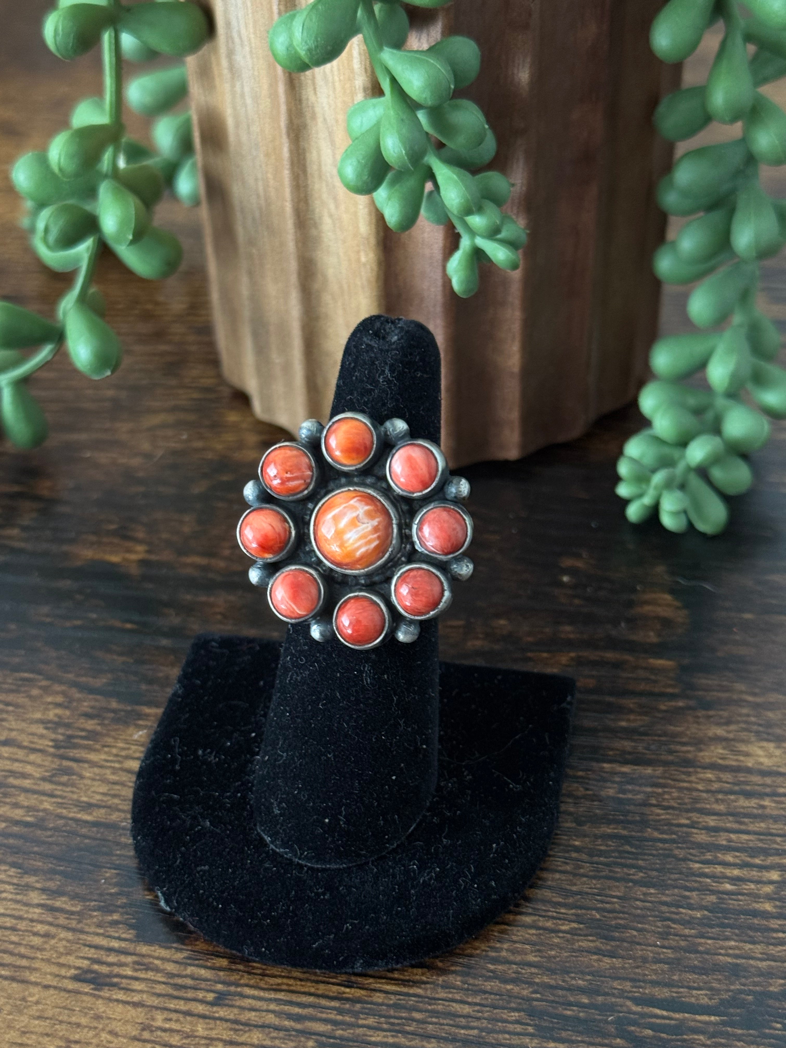 Navajo Made Spiny Oyster & Sterling Silver Ring Size 6.5
