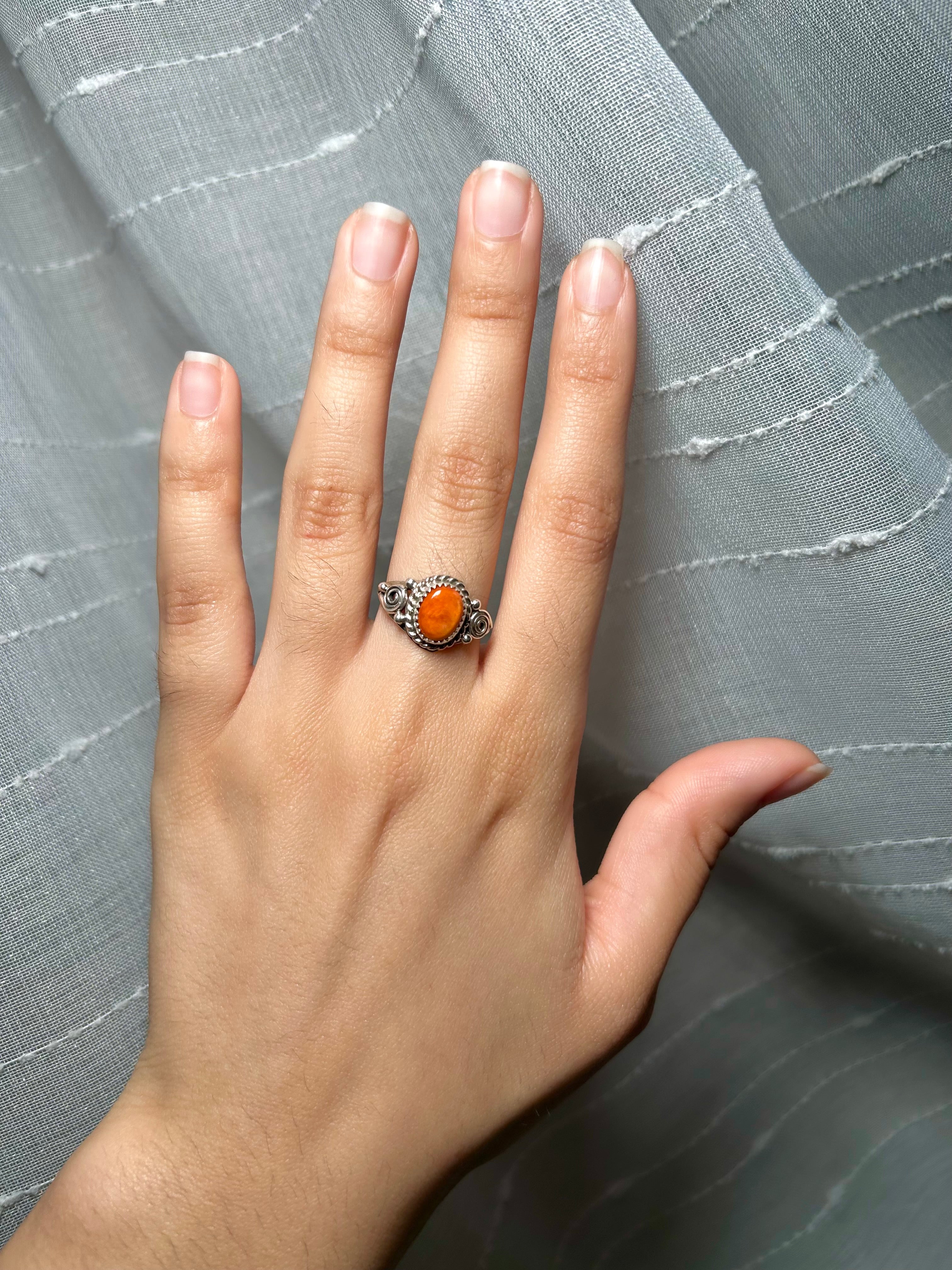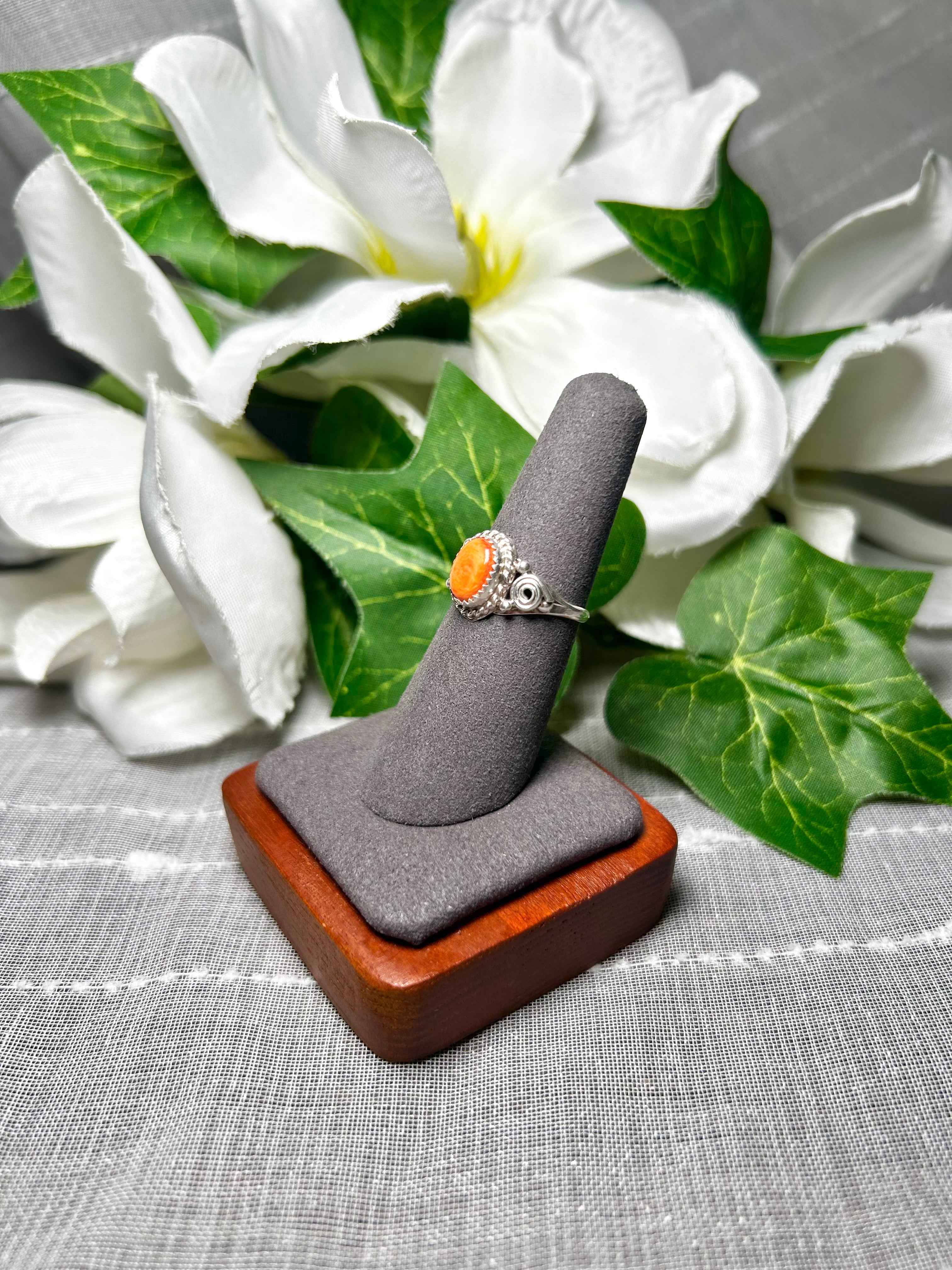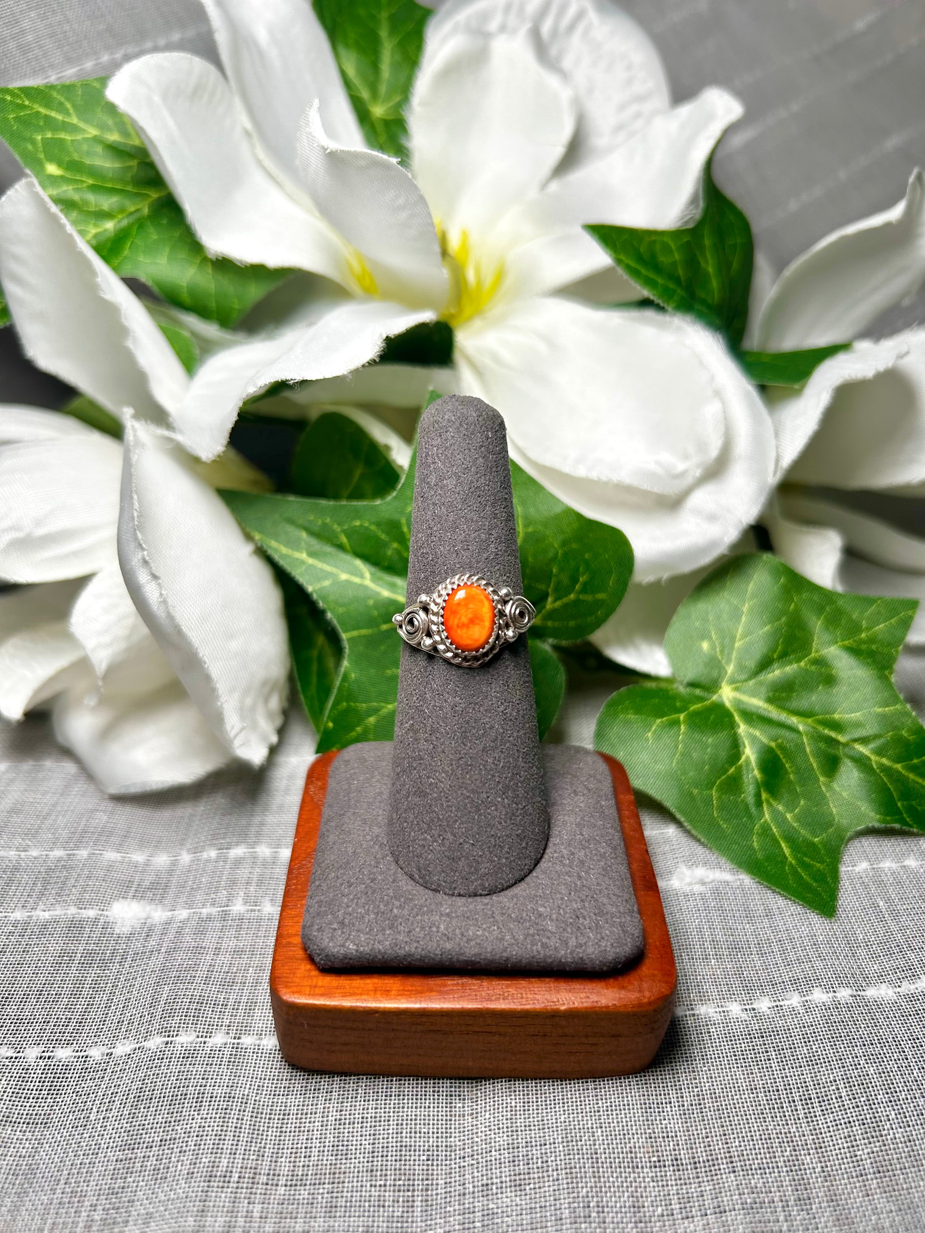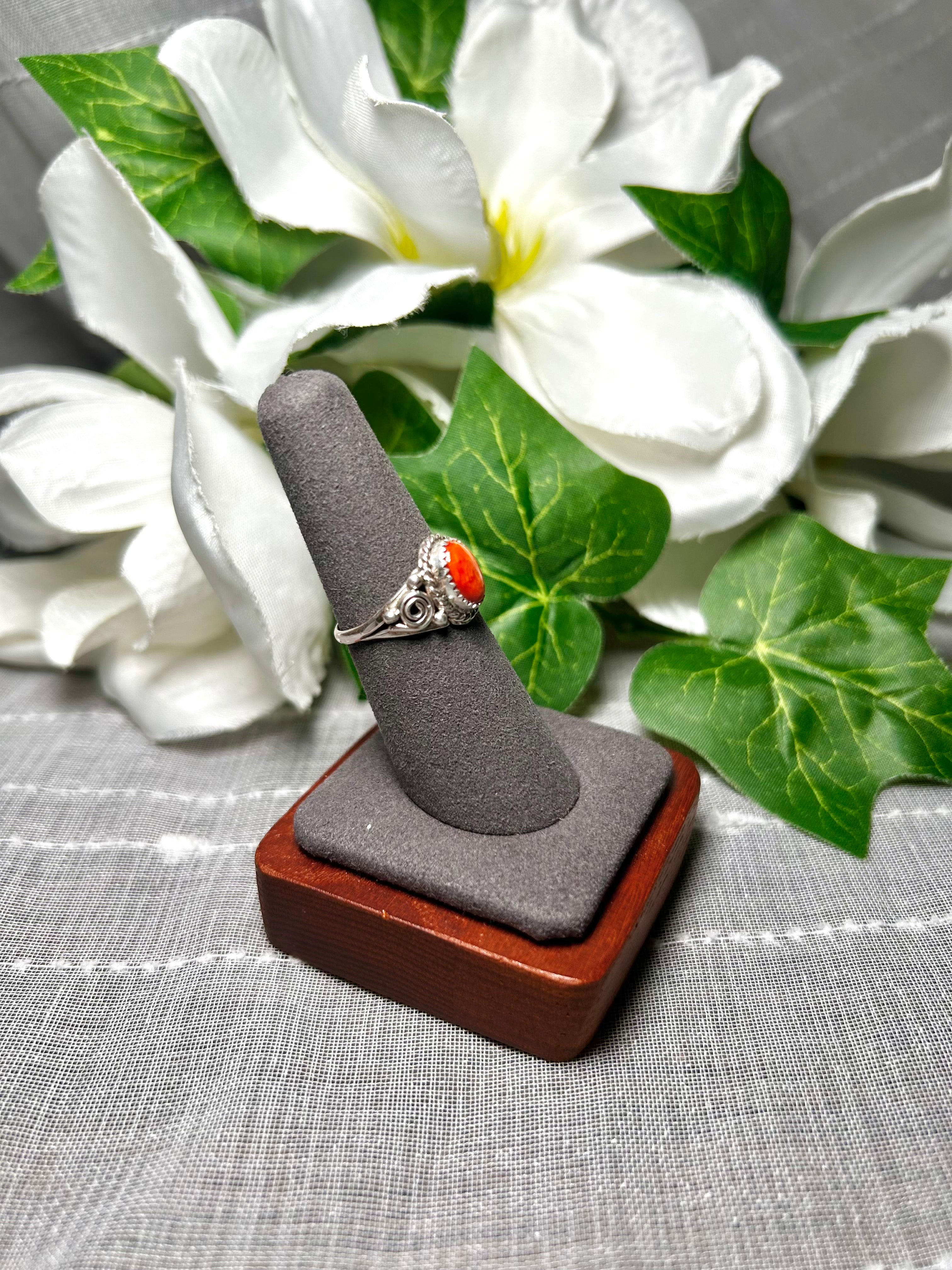 Navajo Made Spiny Oyster & Sterling Silver Ring Size 6.75