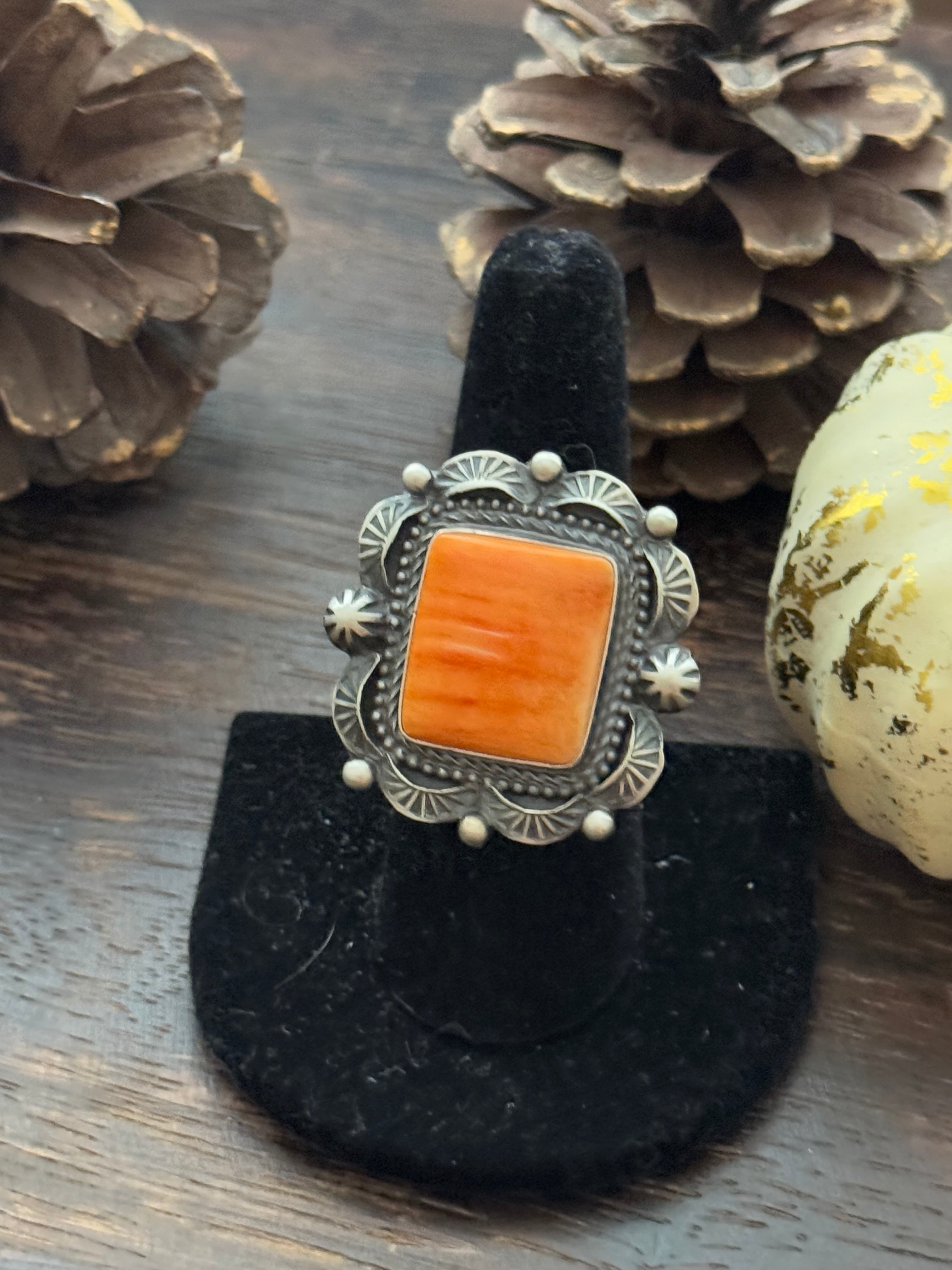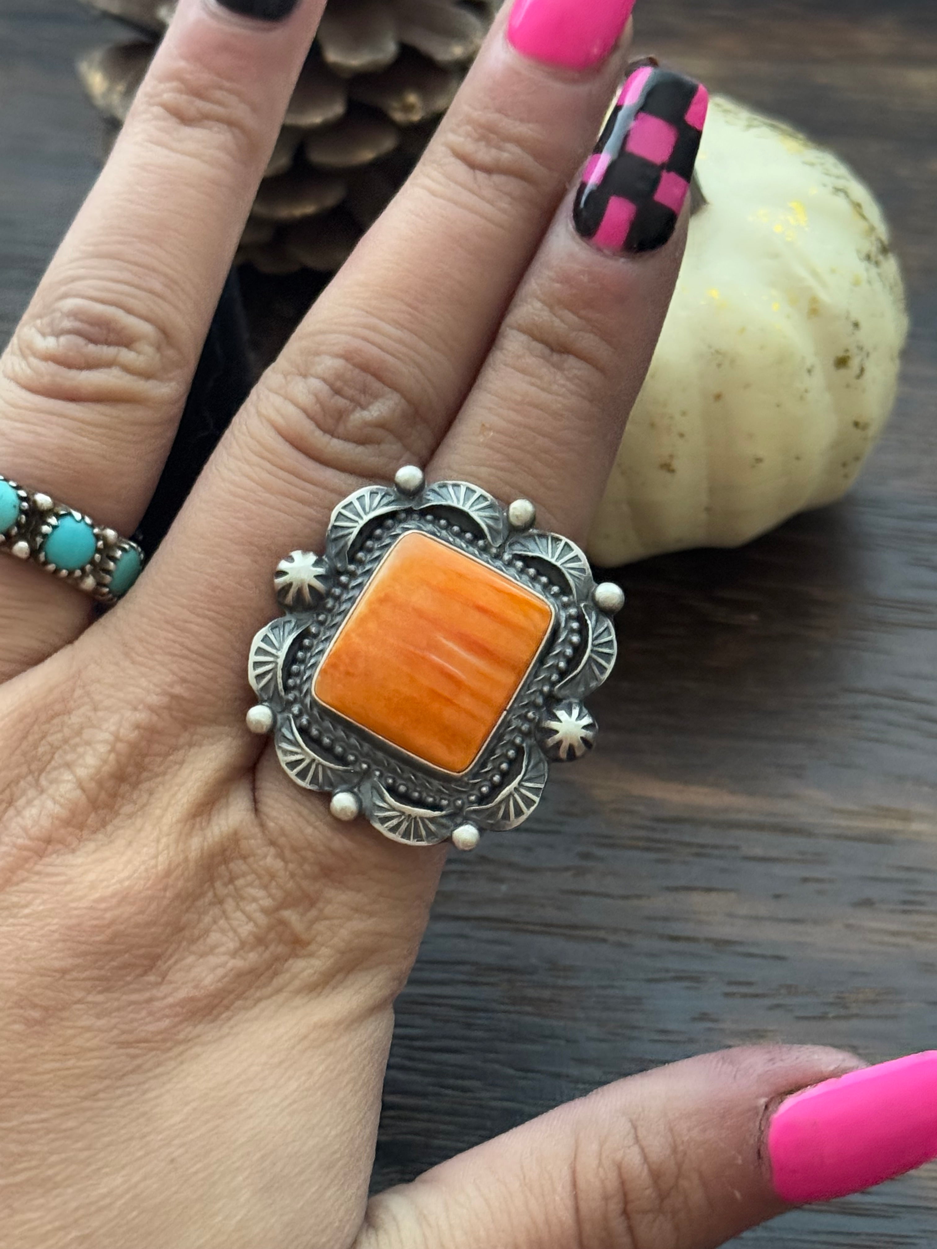 Julia Tso Spiny Oyster & Sterling Silver Ring Size 9.5