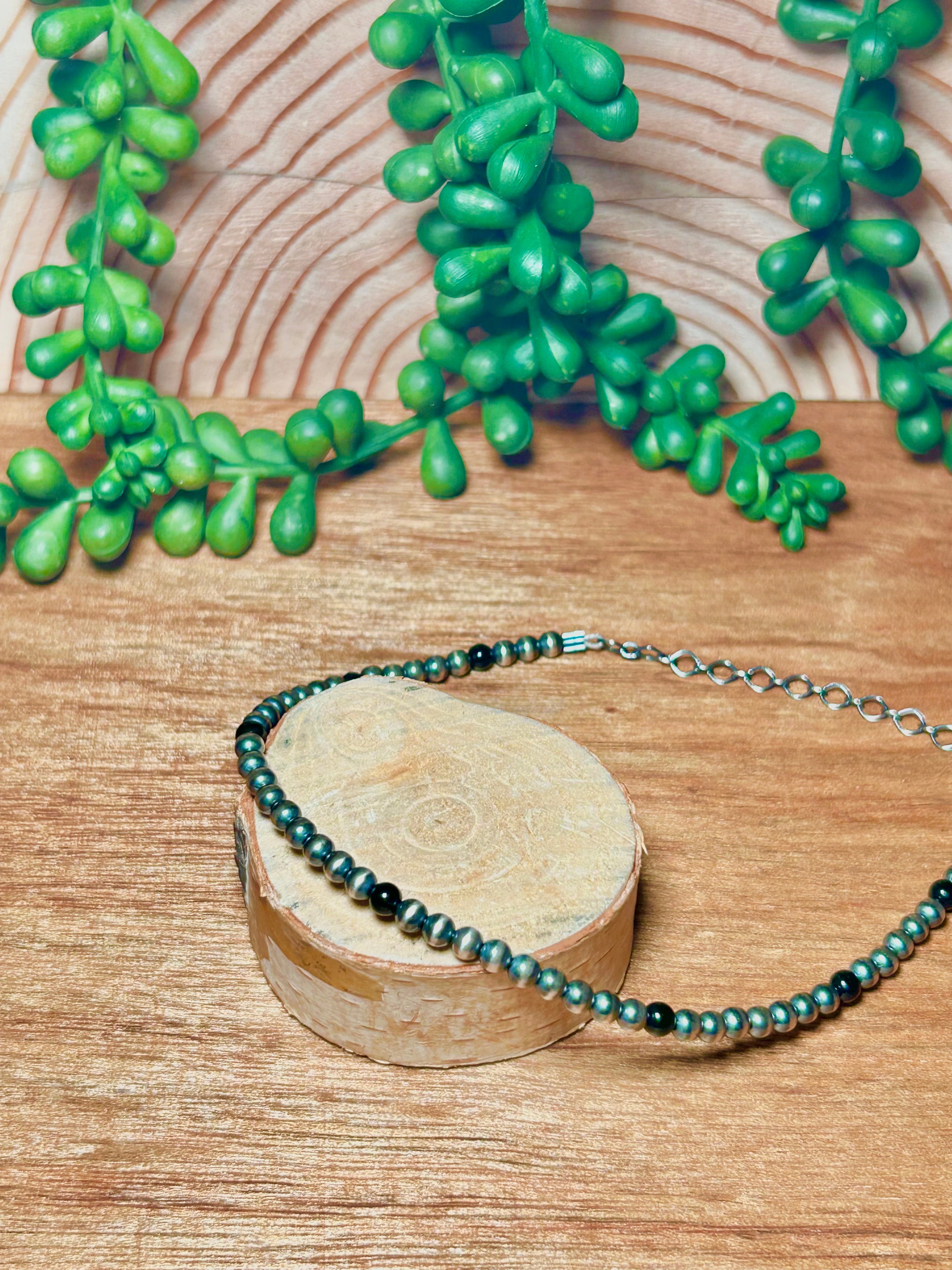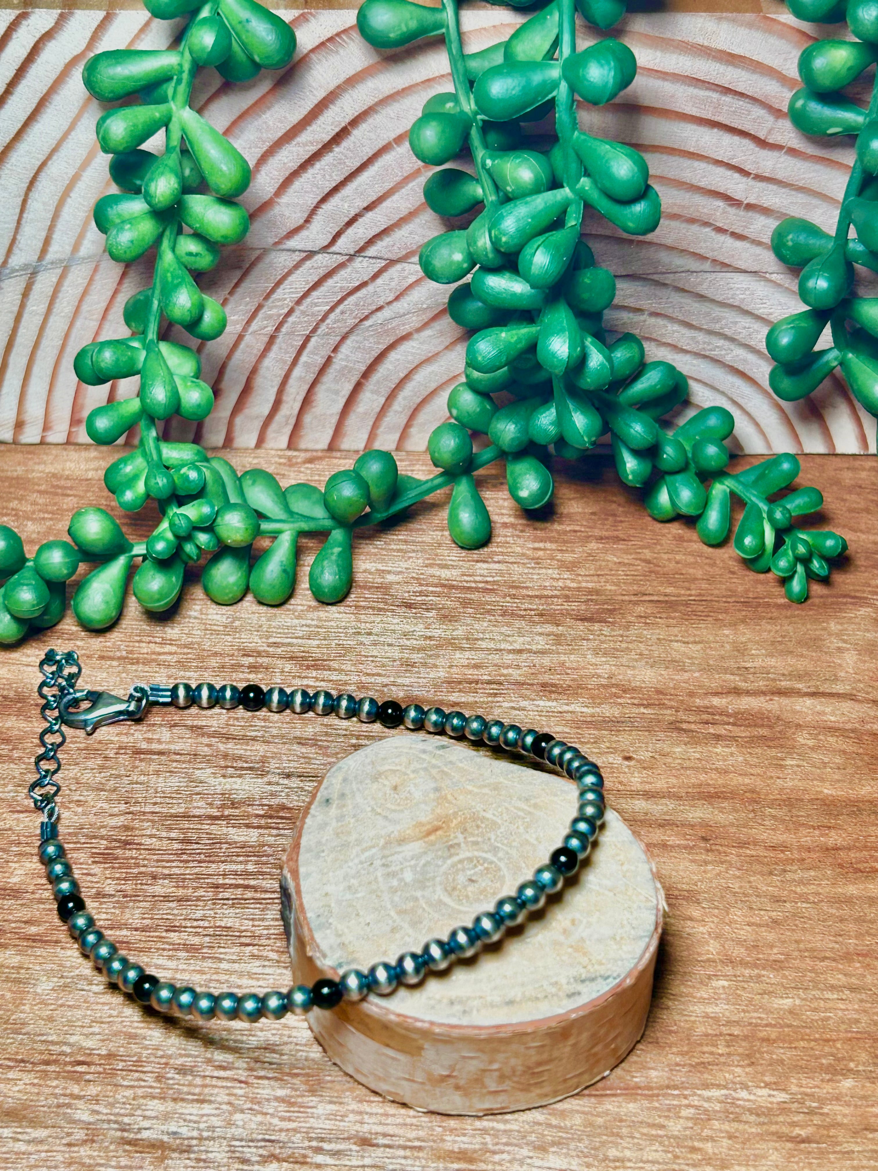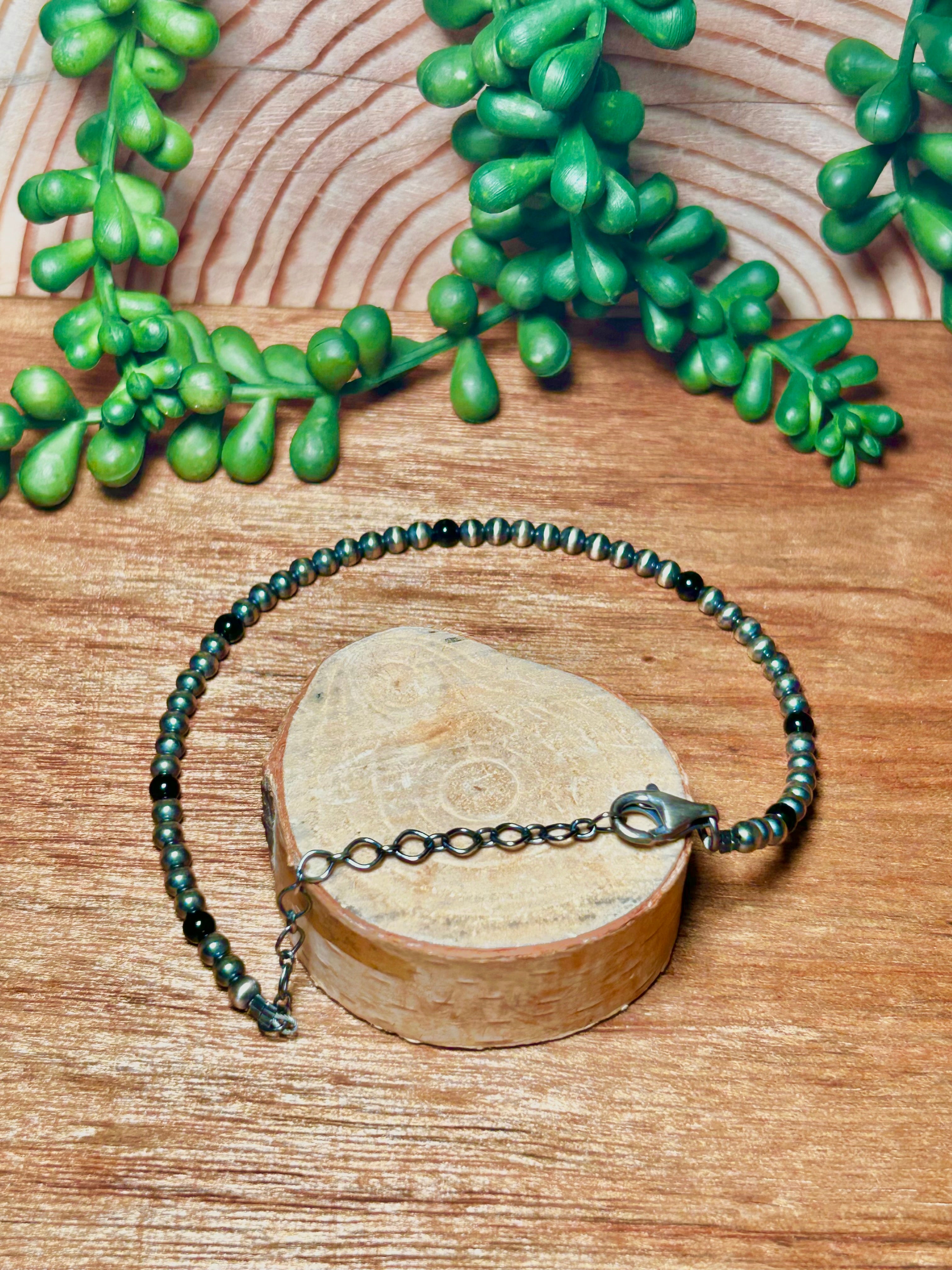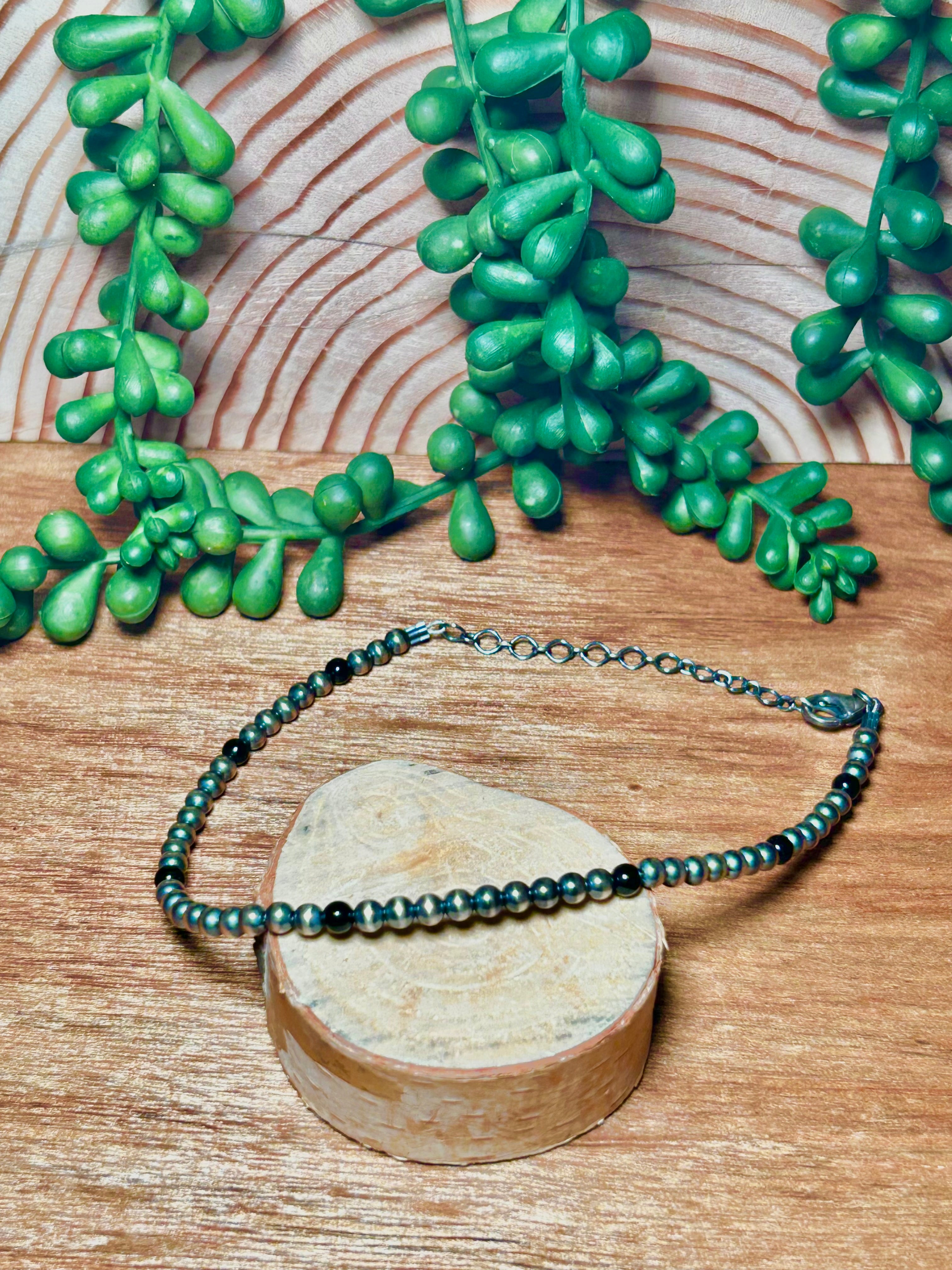 Navajo Made Onyx & Sterling Silver Strung 4 MM Anklet