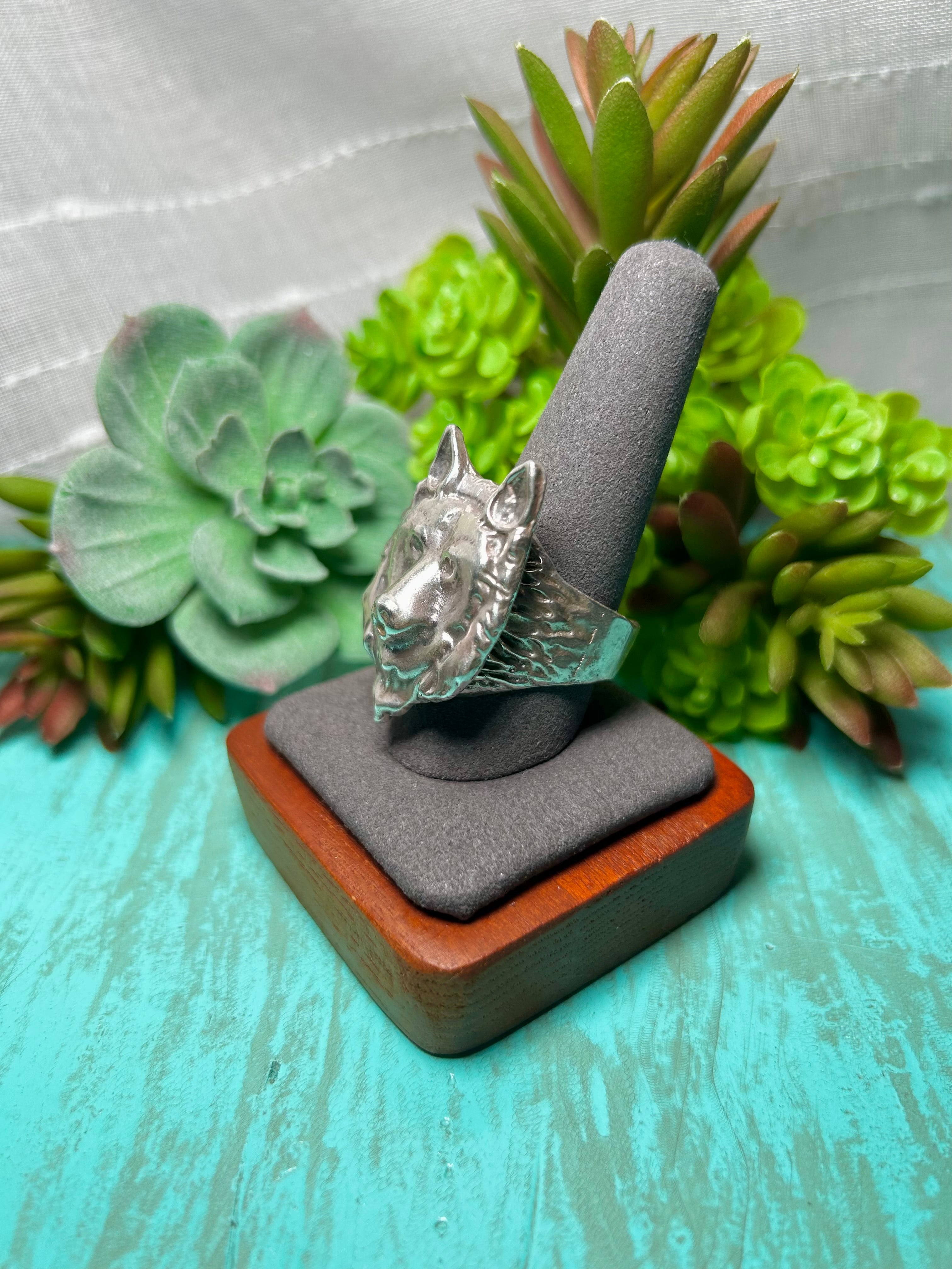 Navajo Made Sterling Sliver Ring Size 10.5. It measures 1 3/8 inches long and 1 inch wide. Signed by the artist and stamped sterling silver.