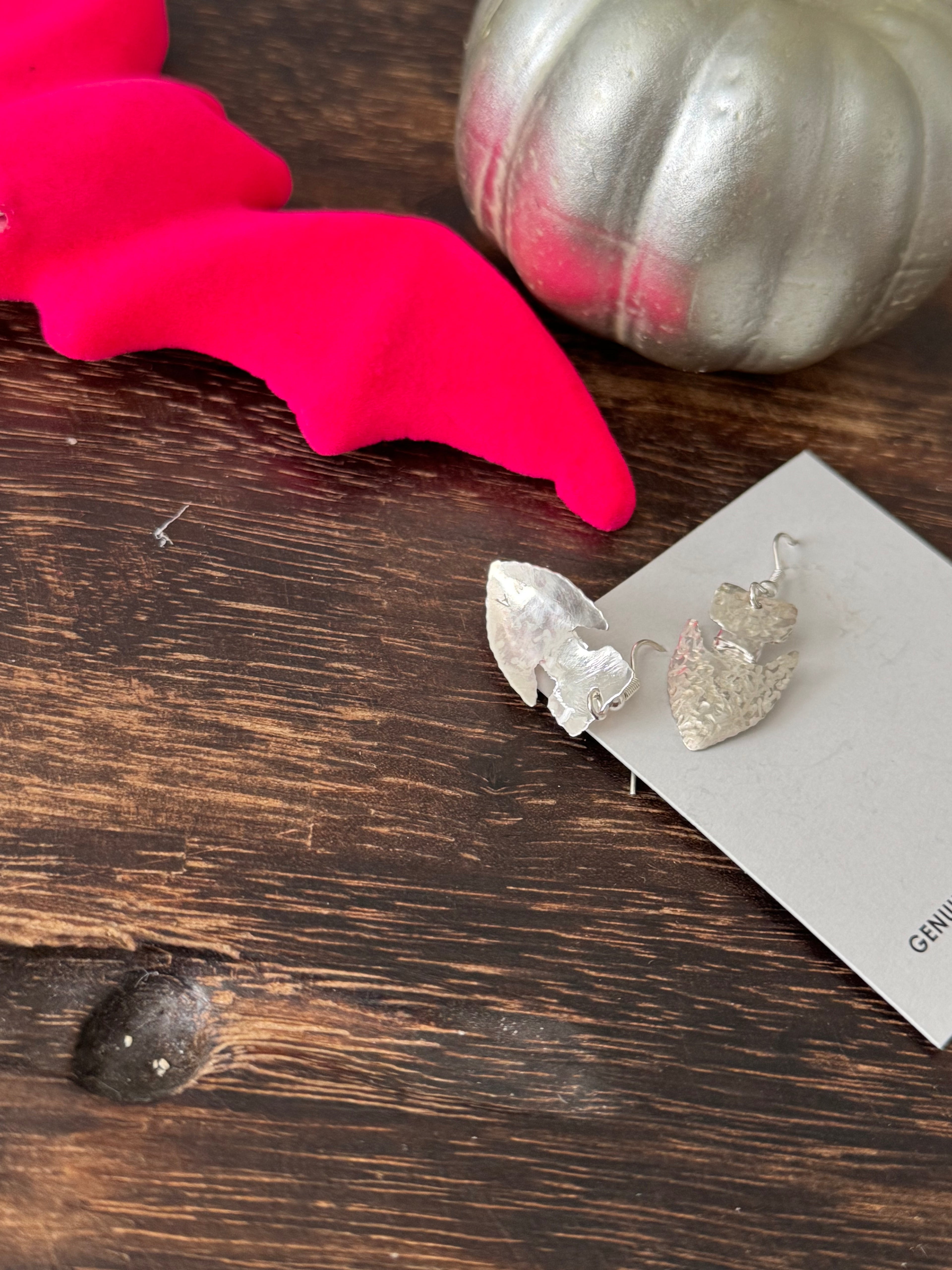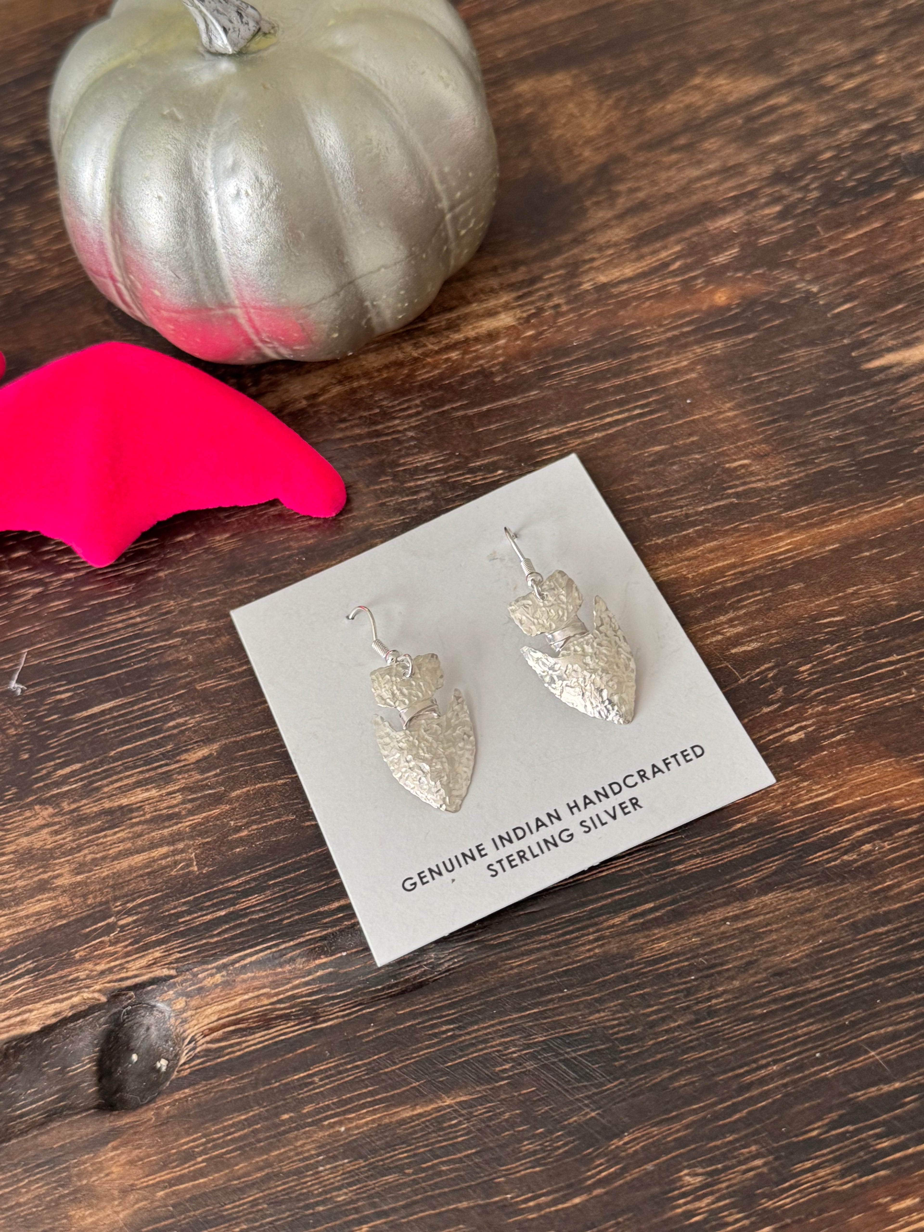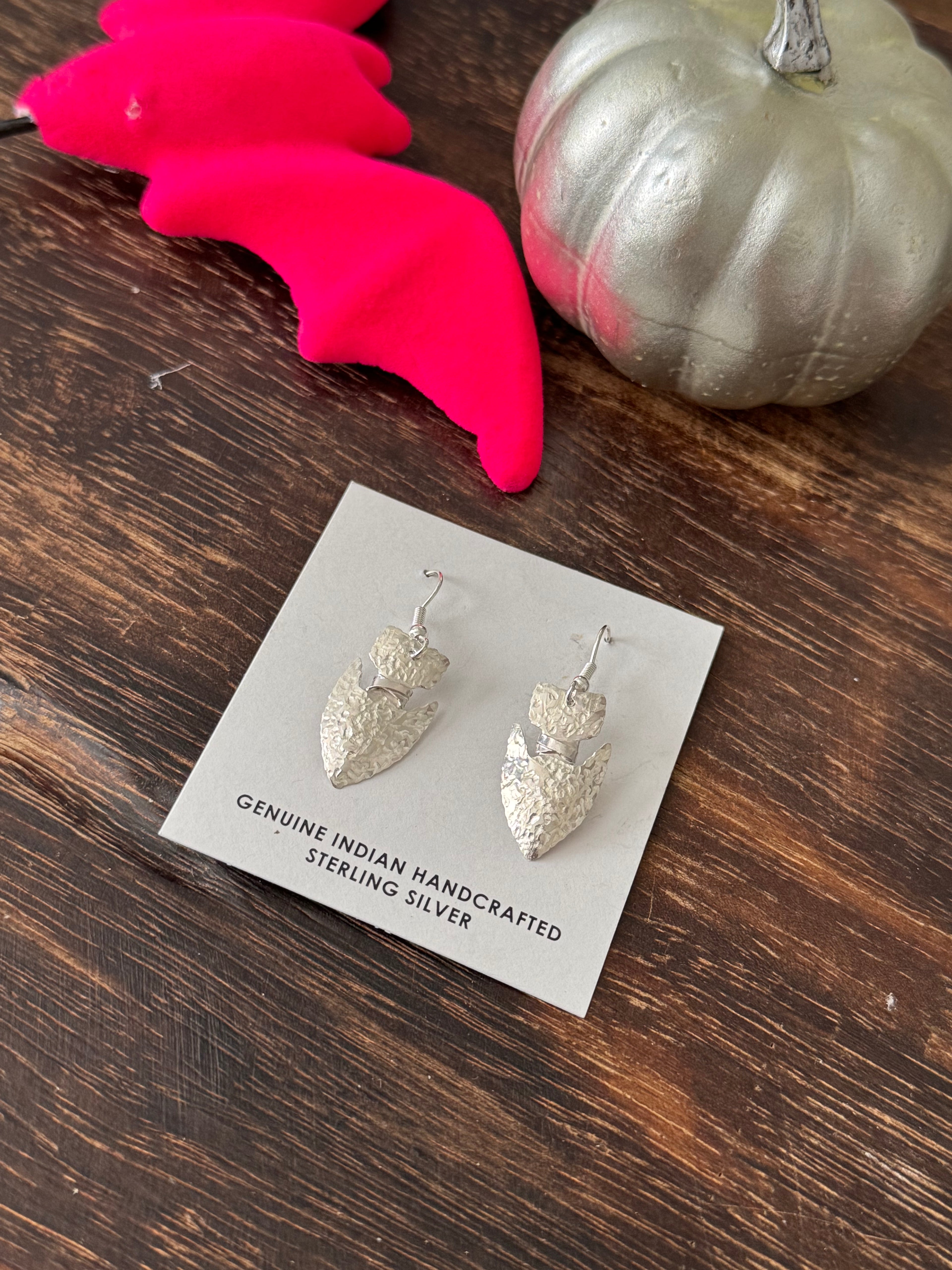 Navajo Made Sterling Silver ArrowHead Dangle Earrings