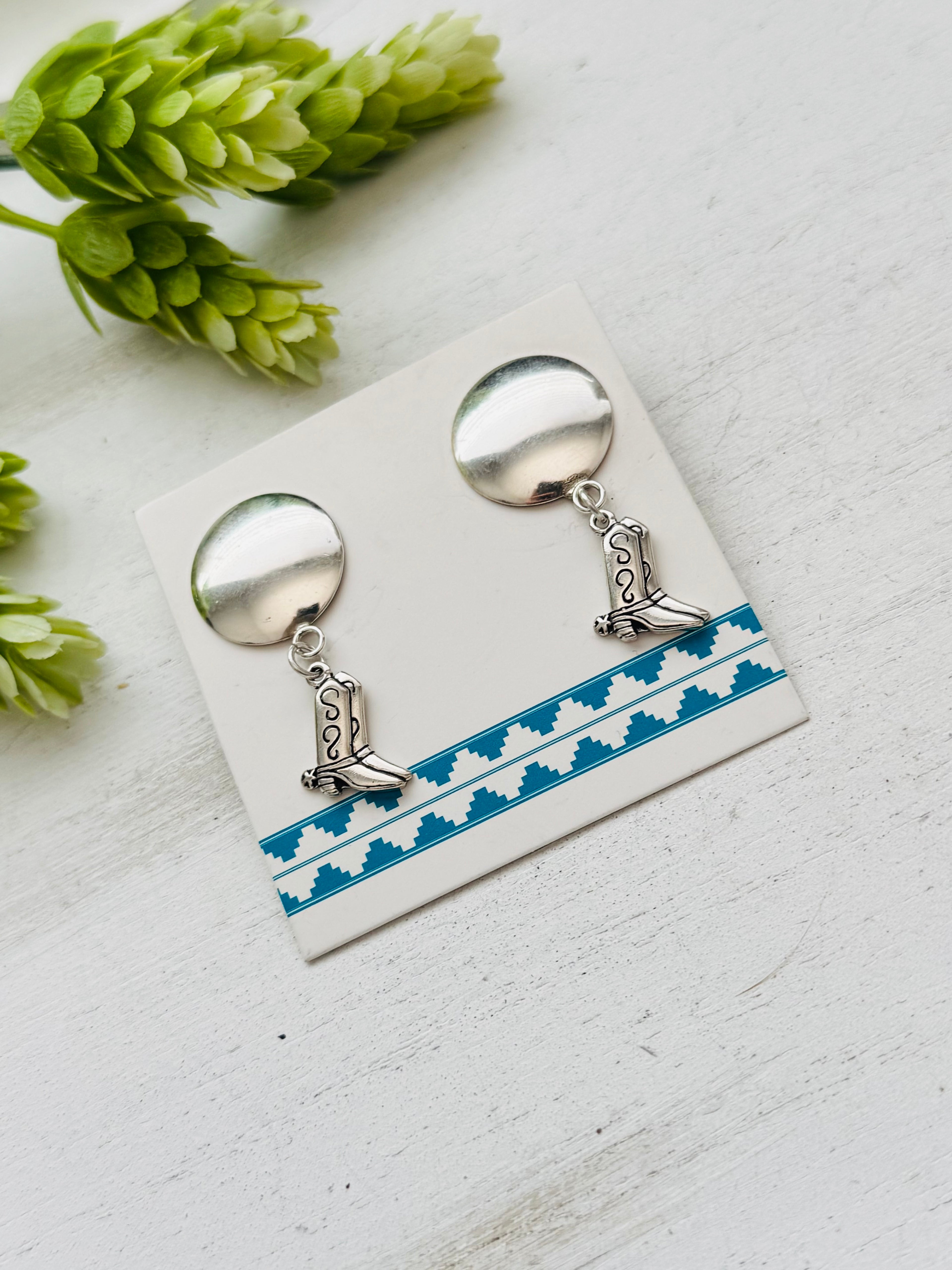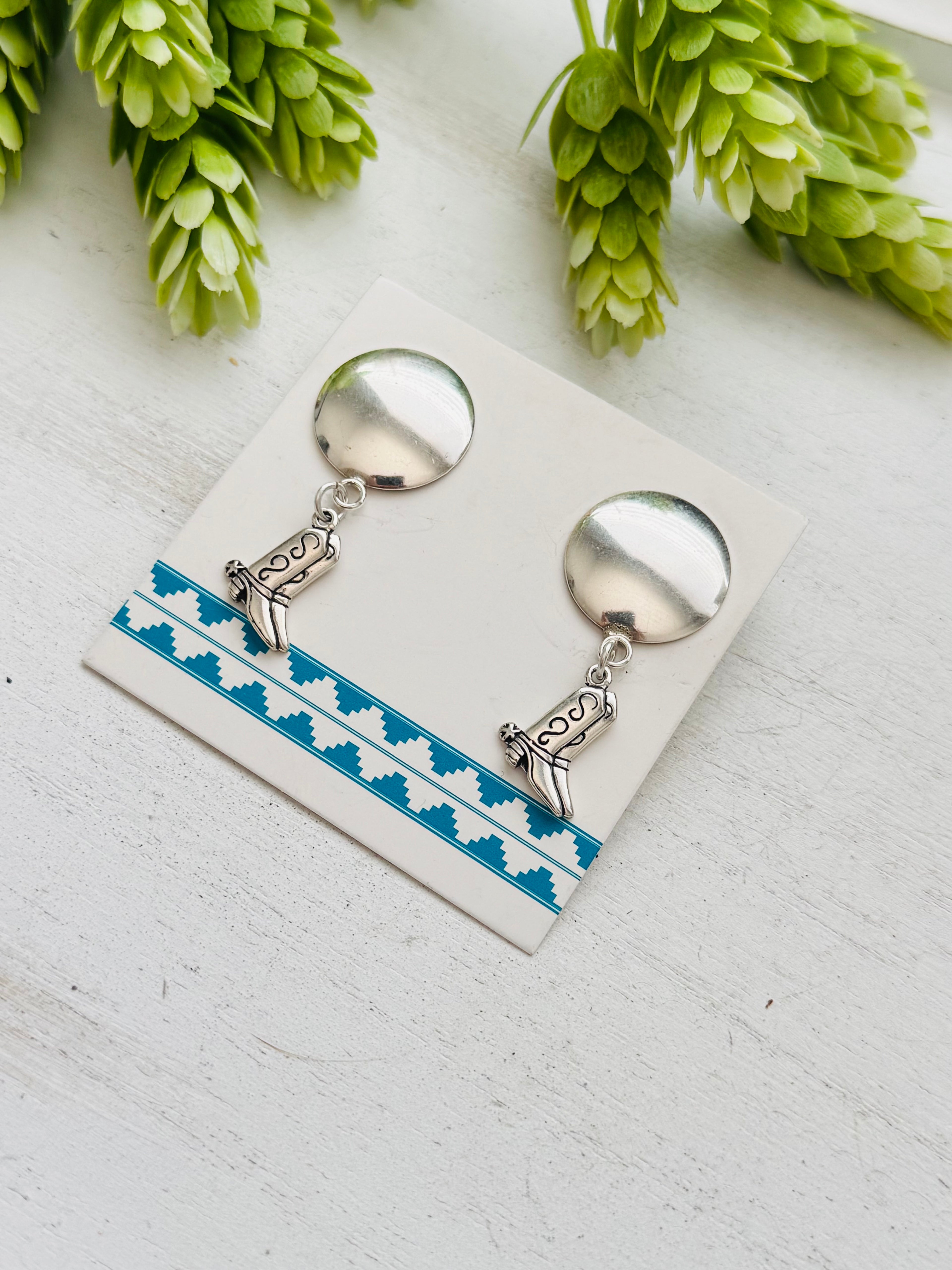In love with these everyday earrings. Navajo Made Sterling Silver Cast Post Earrings. It measures 1 5/8 of an inches long and 3/4 of an inch wide.