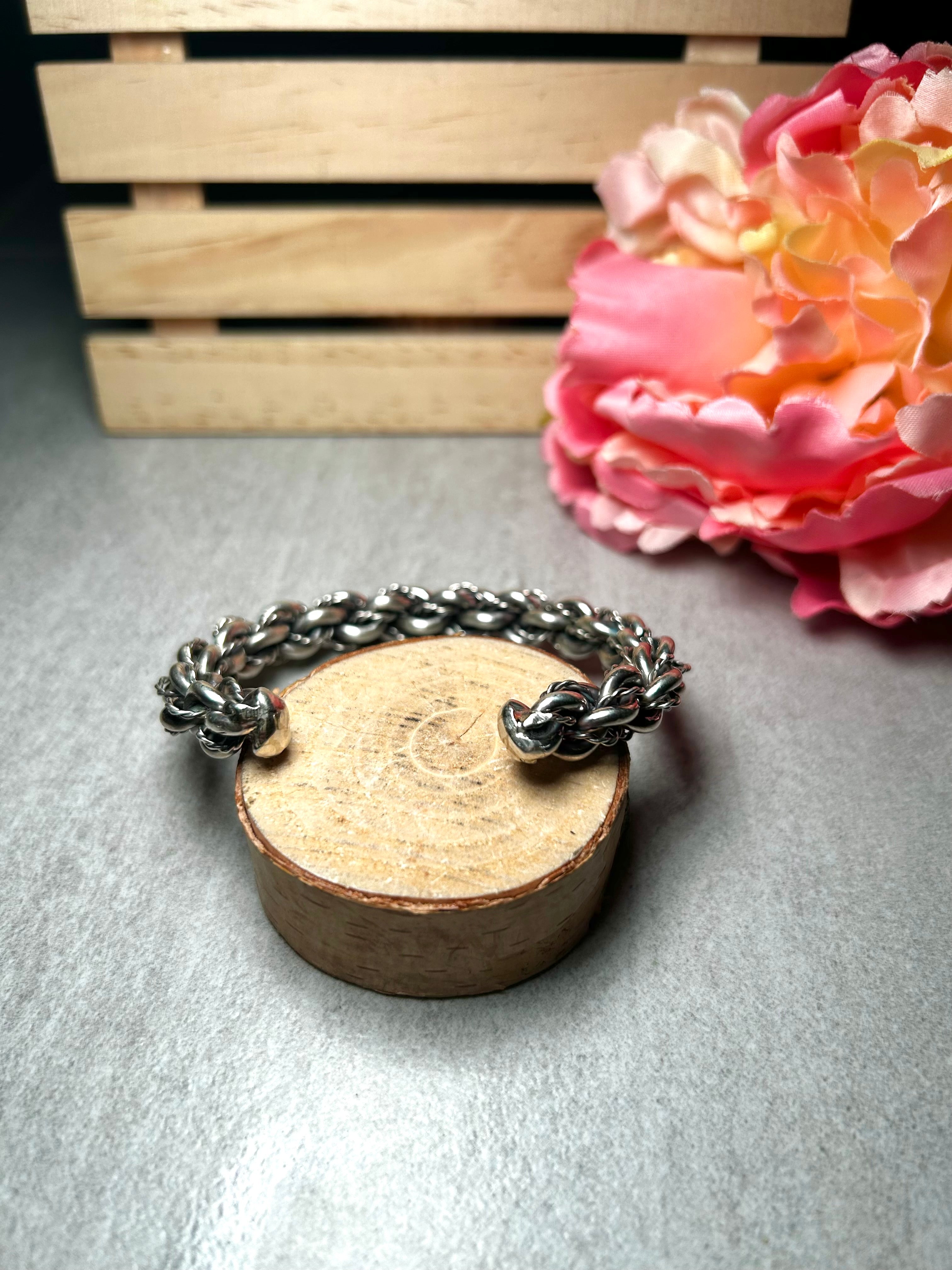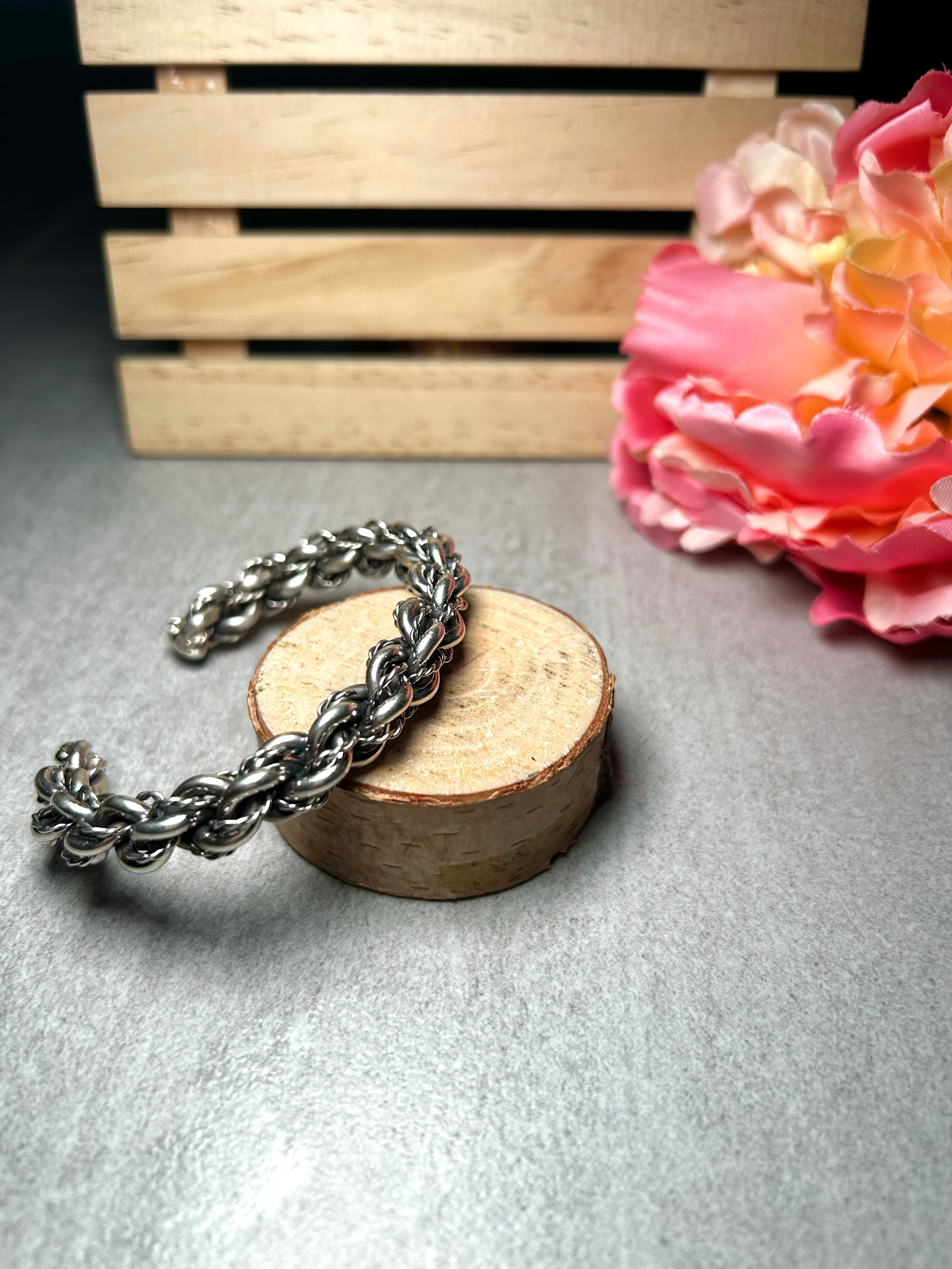 Navajo Made Sterling Silver Cuff Bracelet. It measures 1/2 of an inch wide with an inside circumference of 5 1/2 inches and a gap of 1 inch. Signed by the artist and stamped sterling silver.