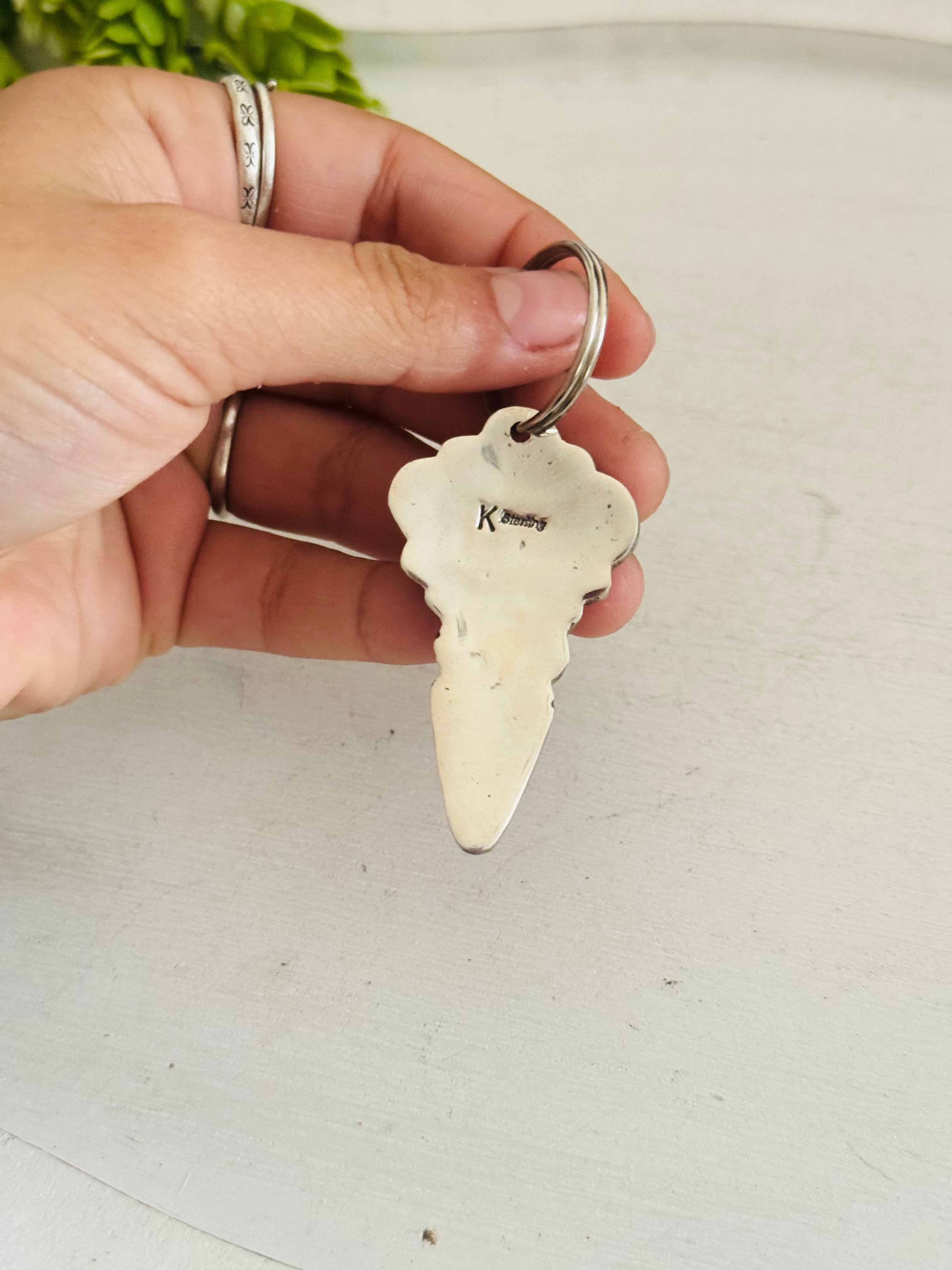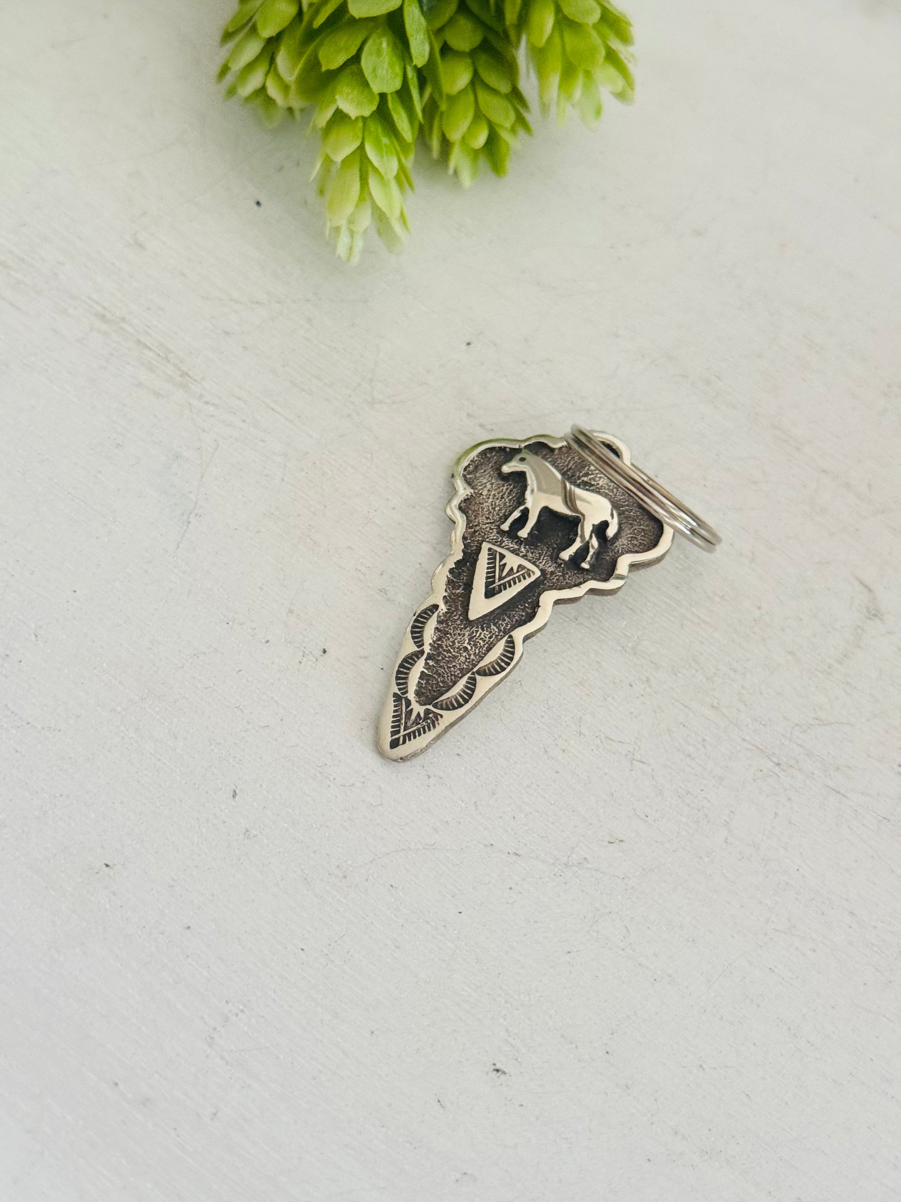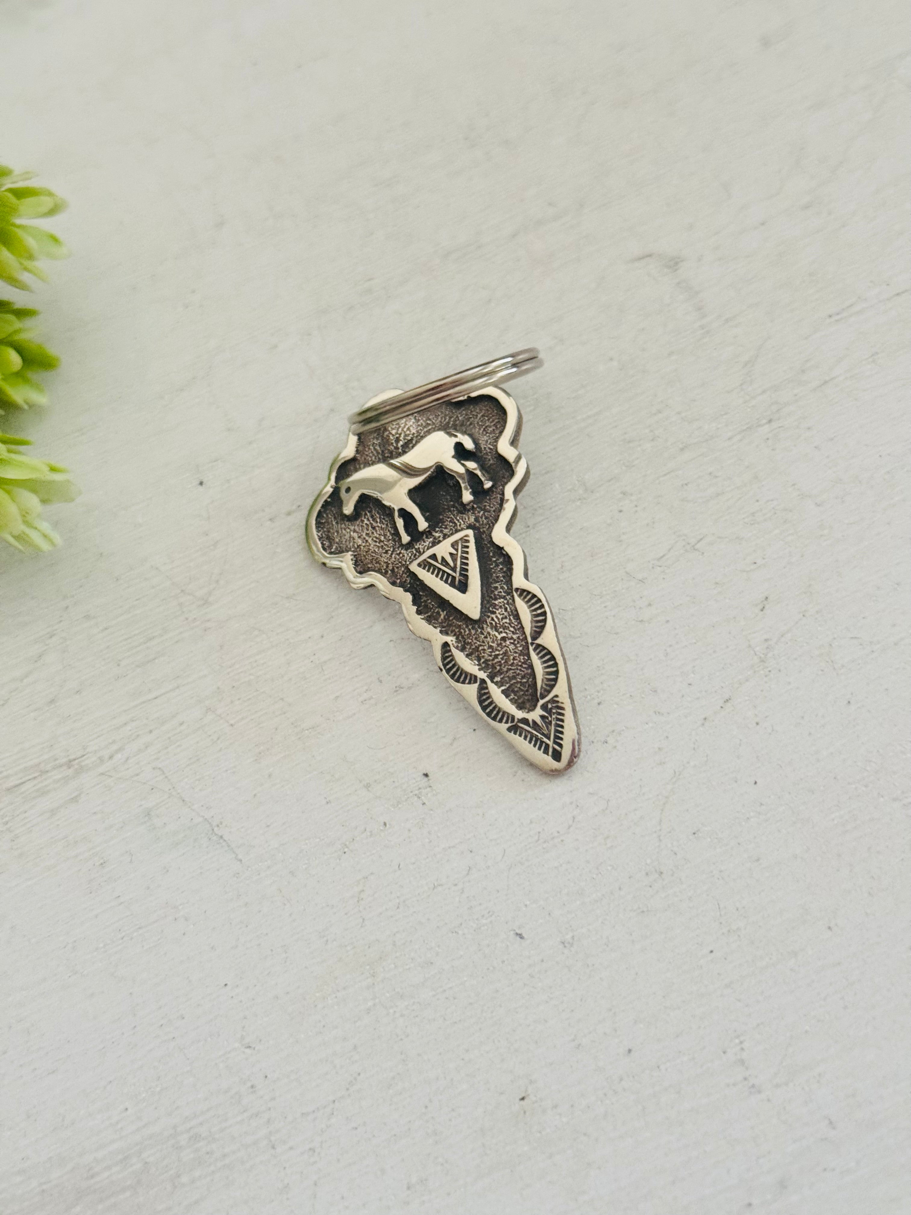 Navajo Made Sterling Silver Horse Key Chain. It measures 3 inches long and 1 1/4 inch wide. Signed by artist and stamped sterling silver.