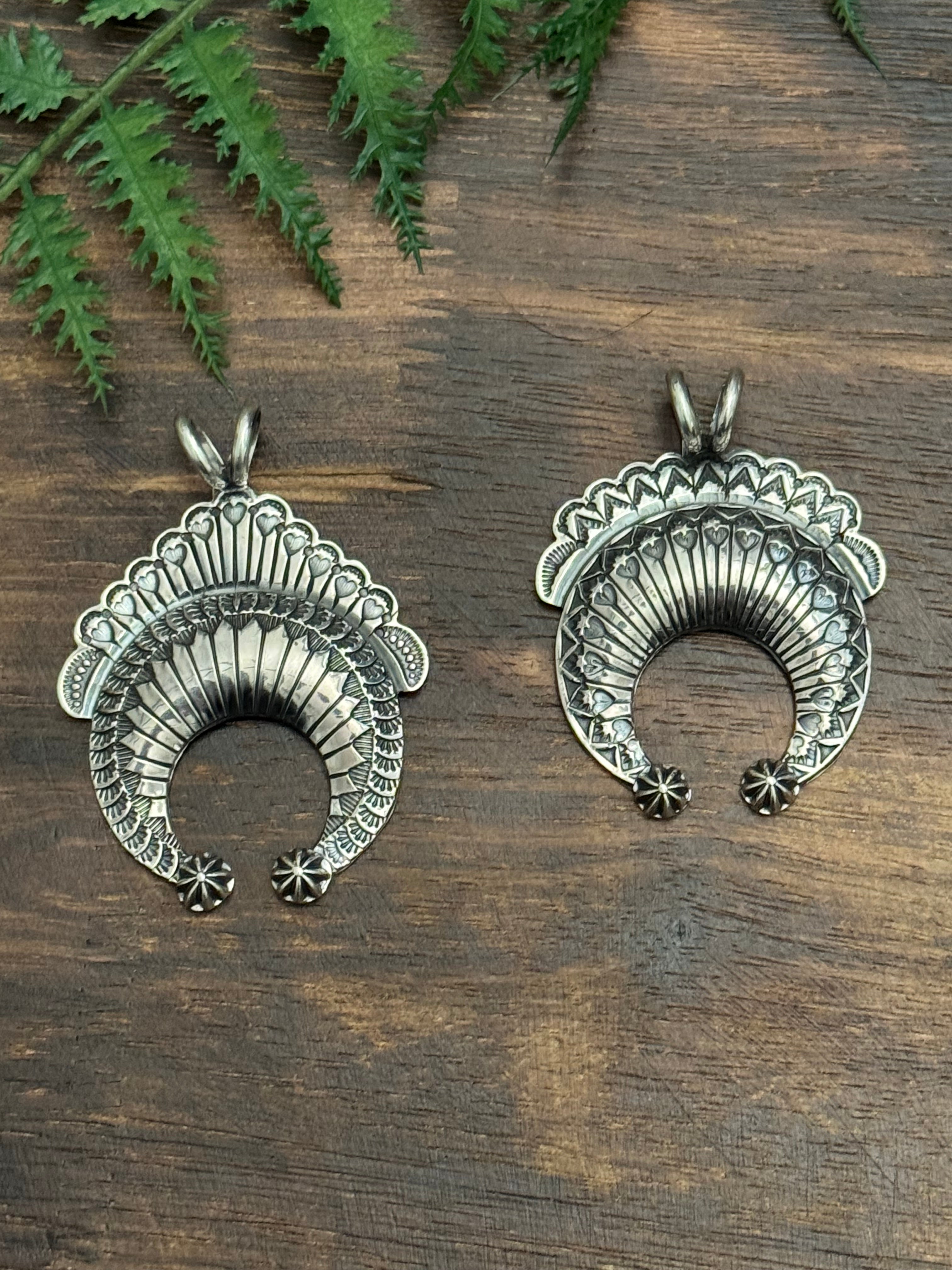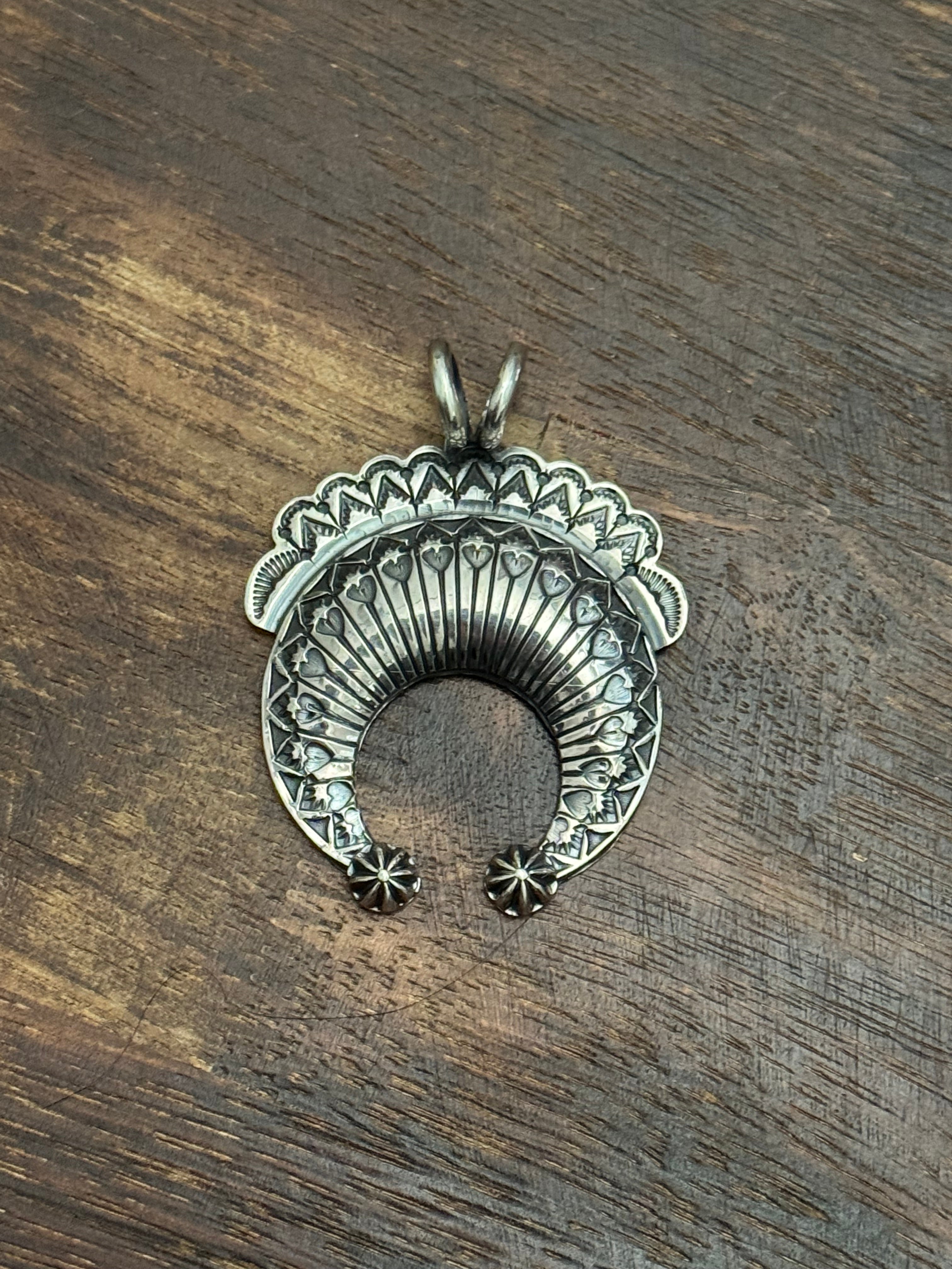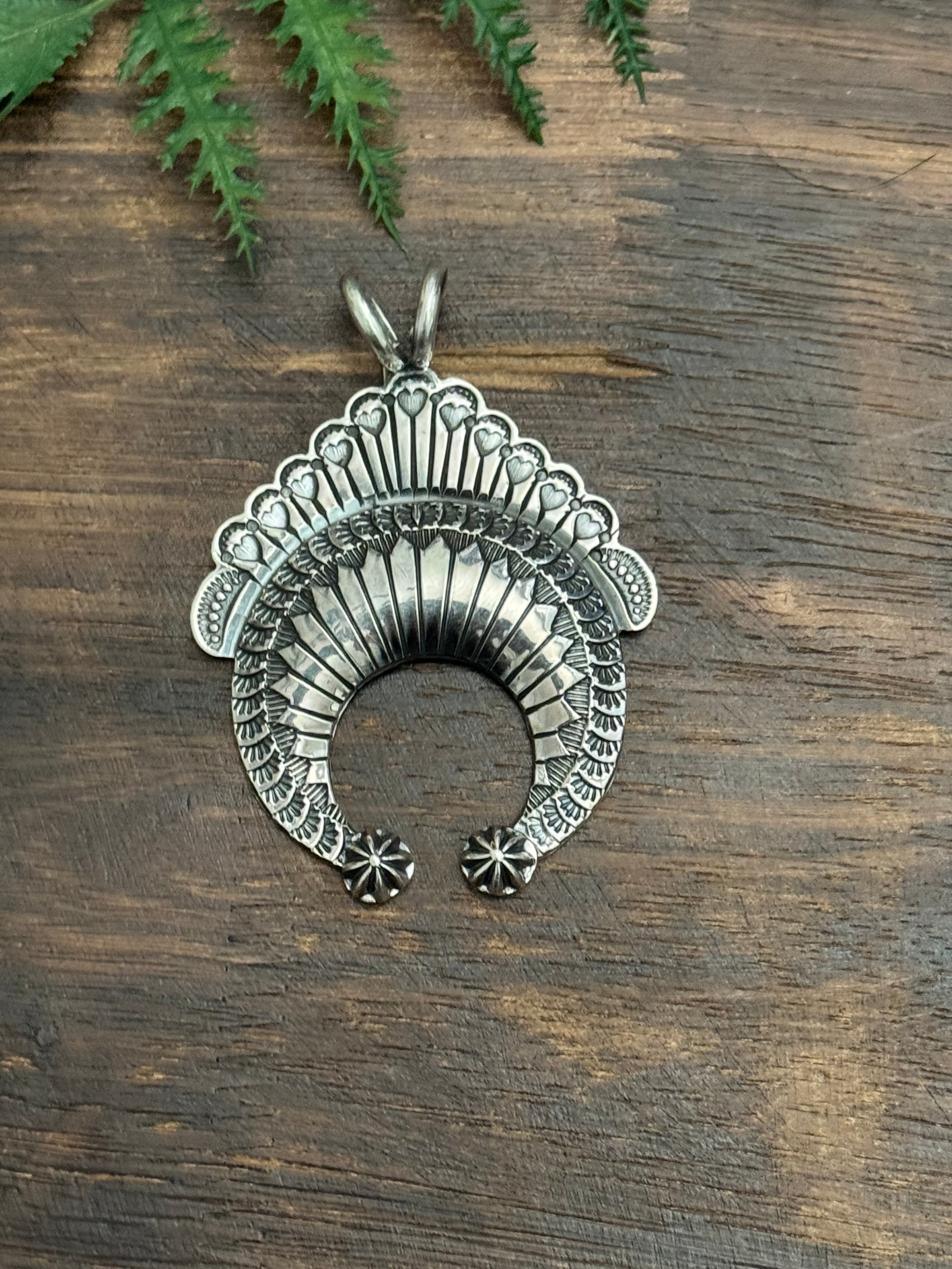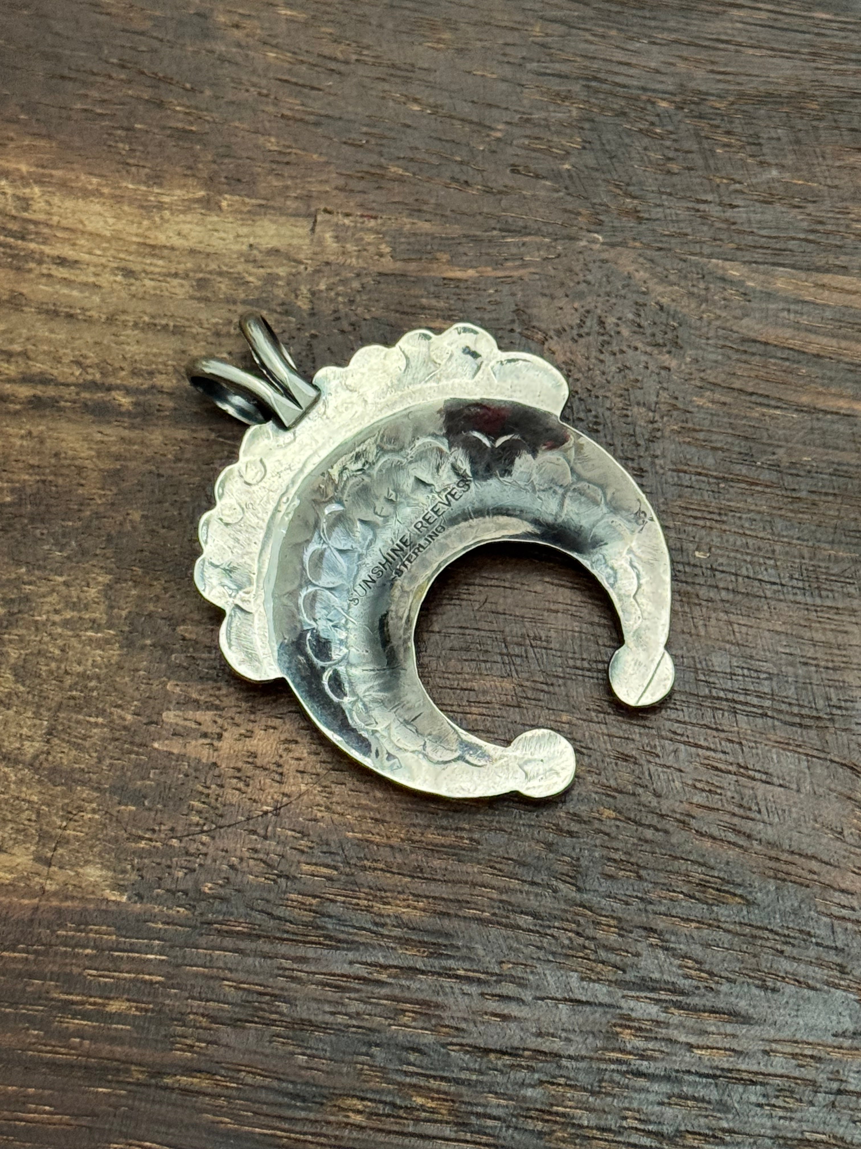 Sunshine Reeves Sterling Silver Pendant. It measures 2 1/2 inches long and 1 7/8 inches wide. Pendant Only. Signed by the artist and stamped sterling silver.