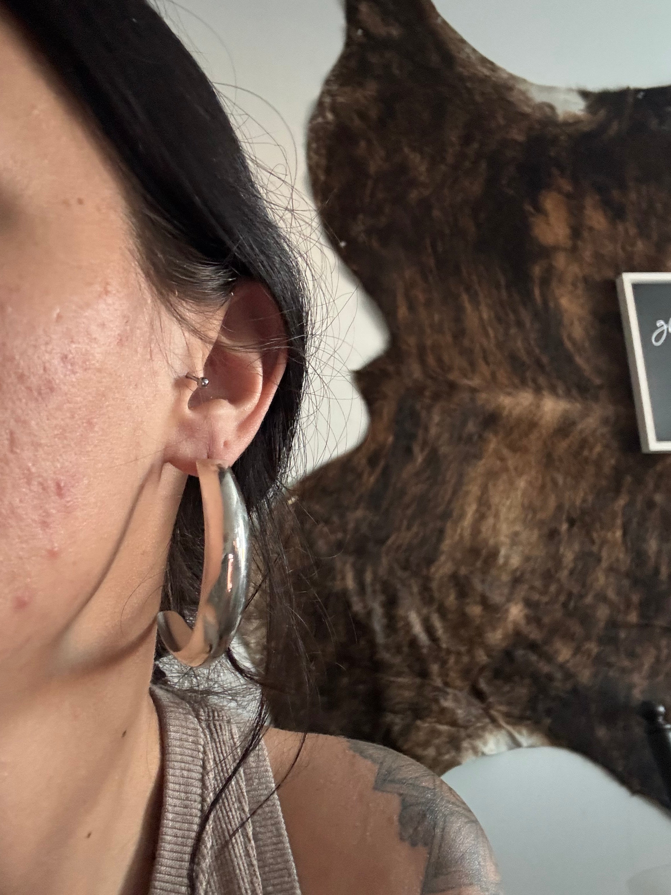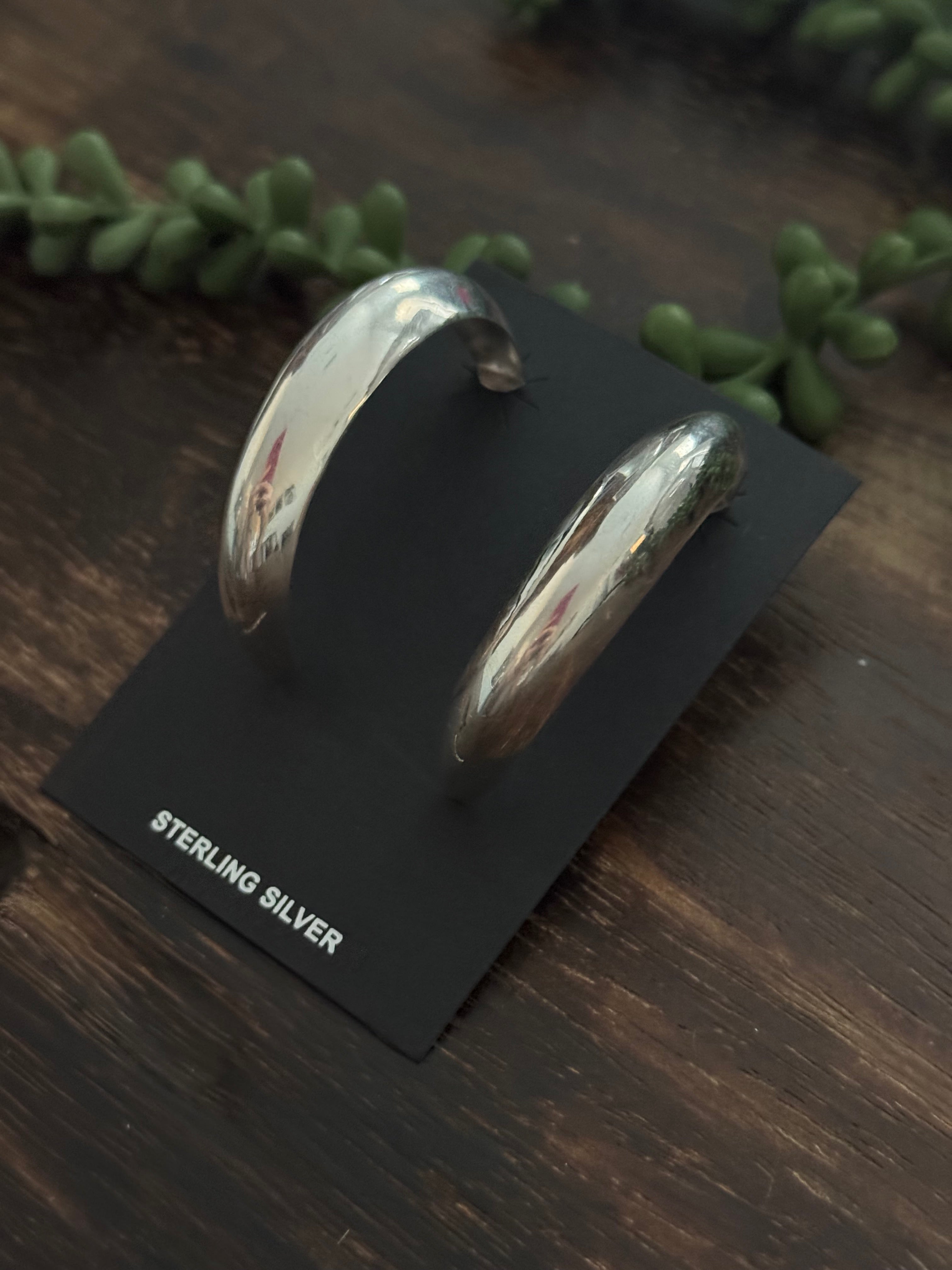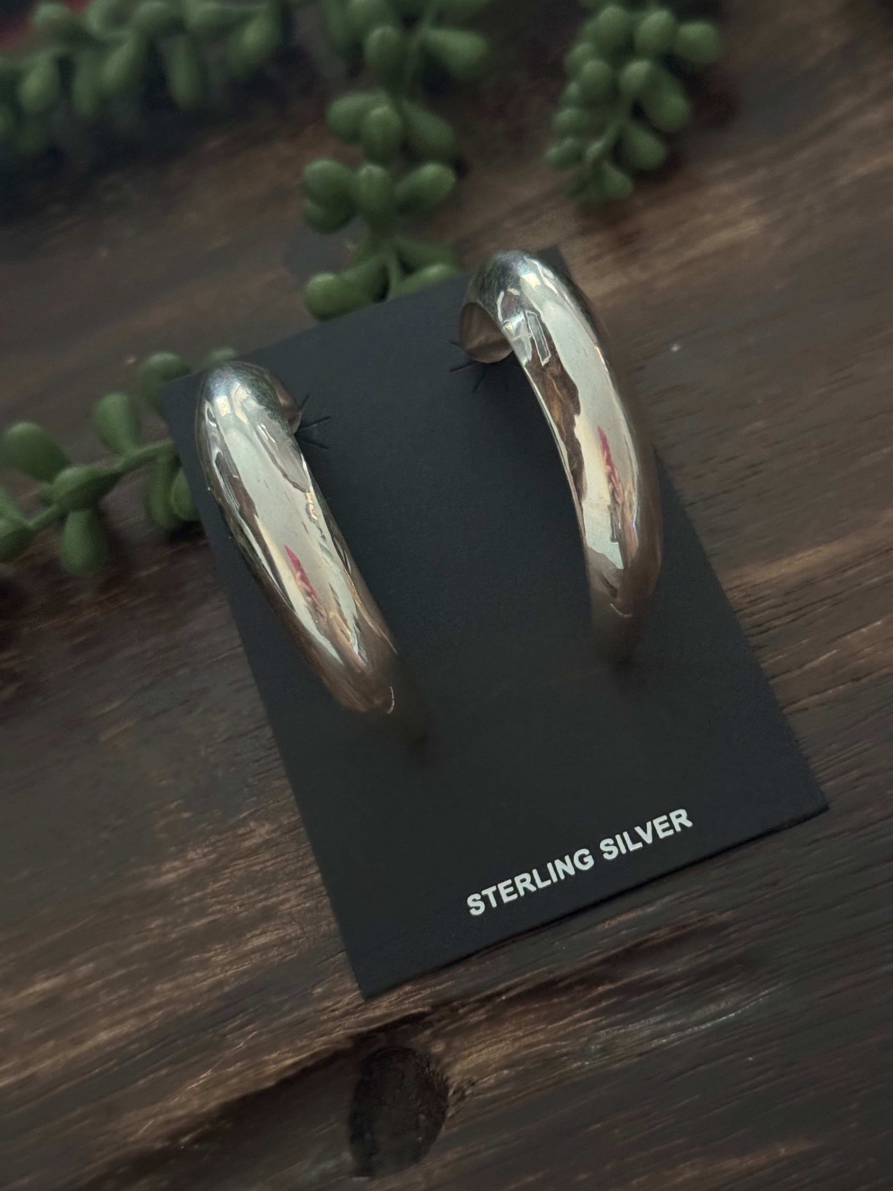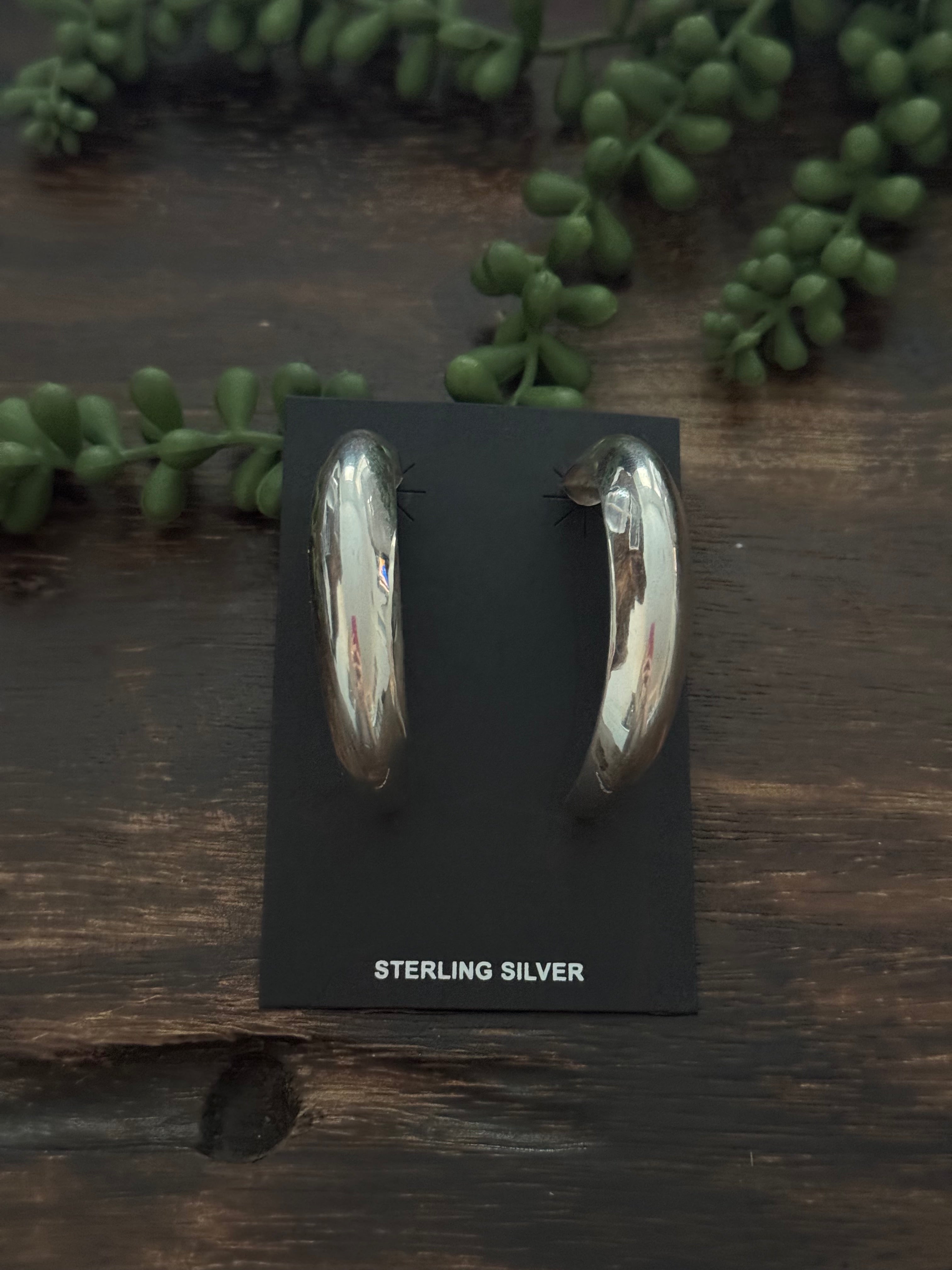Navajo Made Sterling Silver Post Hoop Earrings. they measure 1 7/8 inches long and just under 1/2 of an inch wide.
