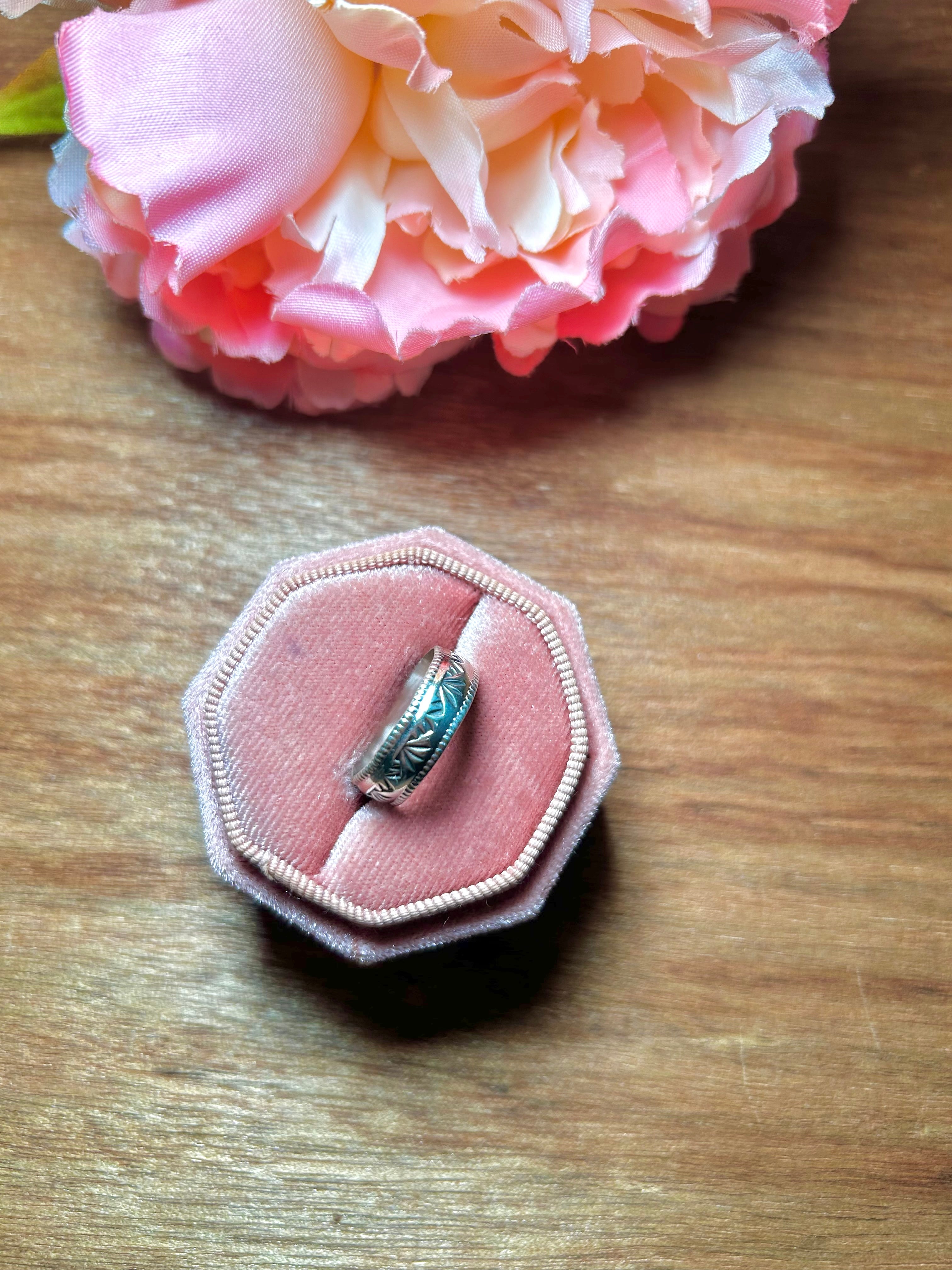 Navajo Made Sterling Silver Ring Size 6.25. It measures 1/4 of an inch long. Stamped sterling silver and signed.
