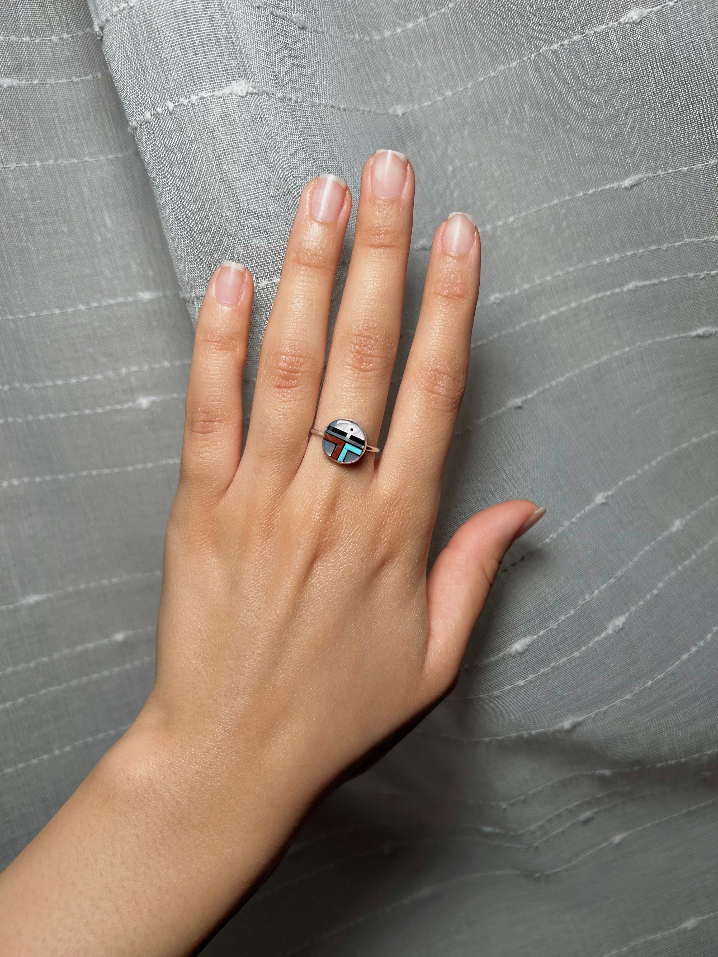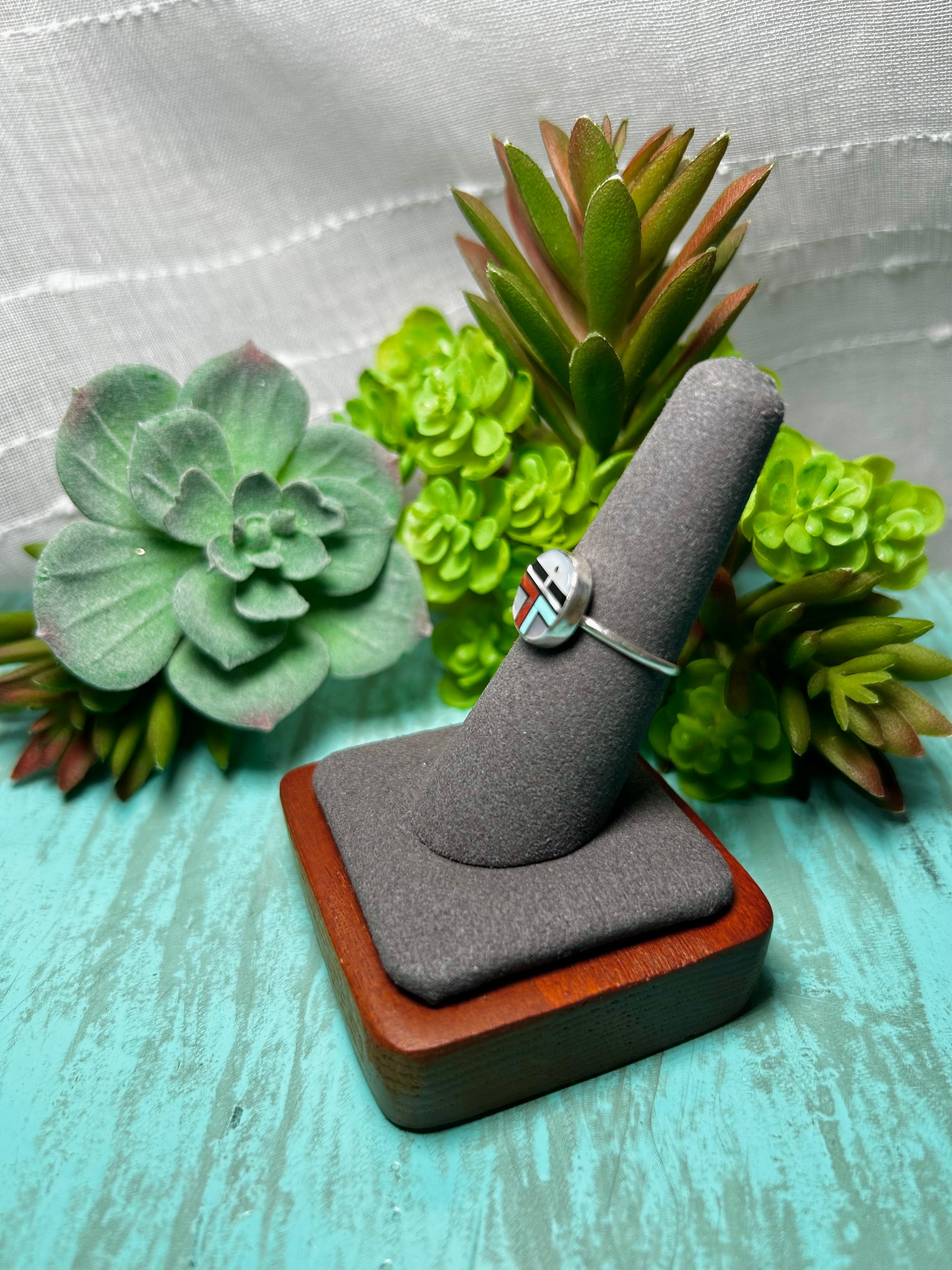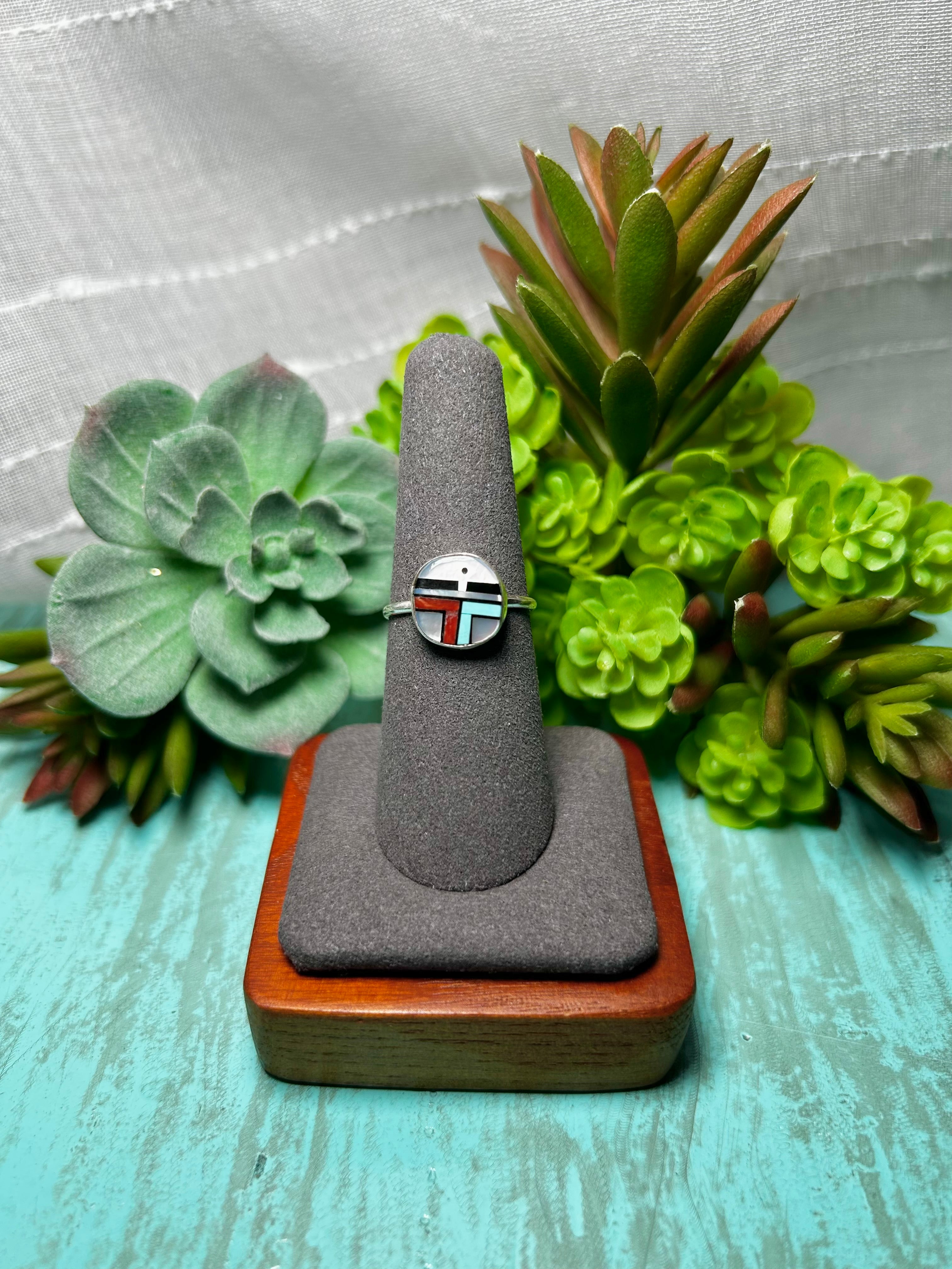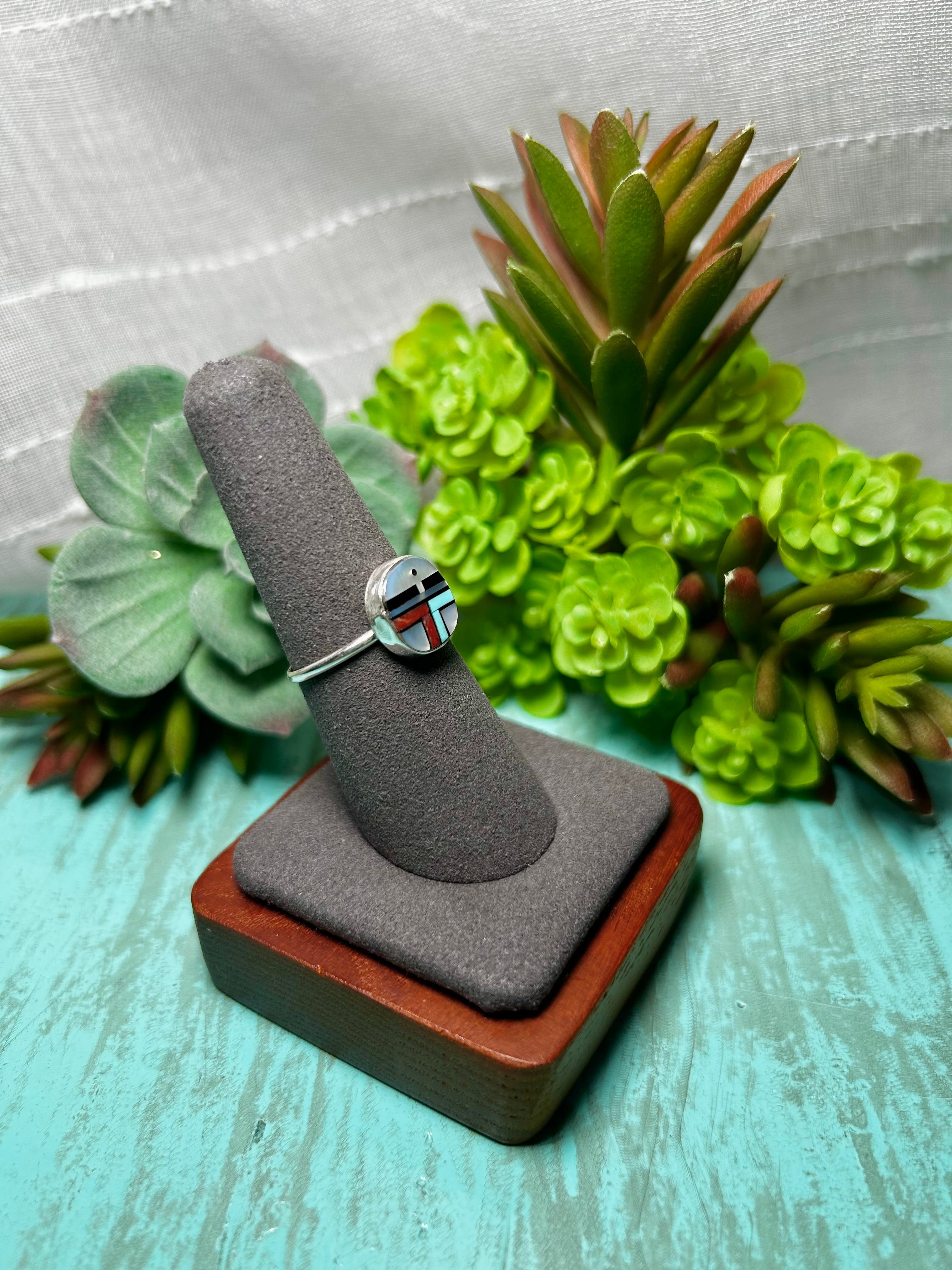Zuni Made Multi Stone & Sterling Sliver Ring Size 7.5