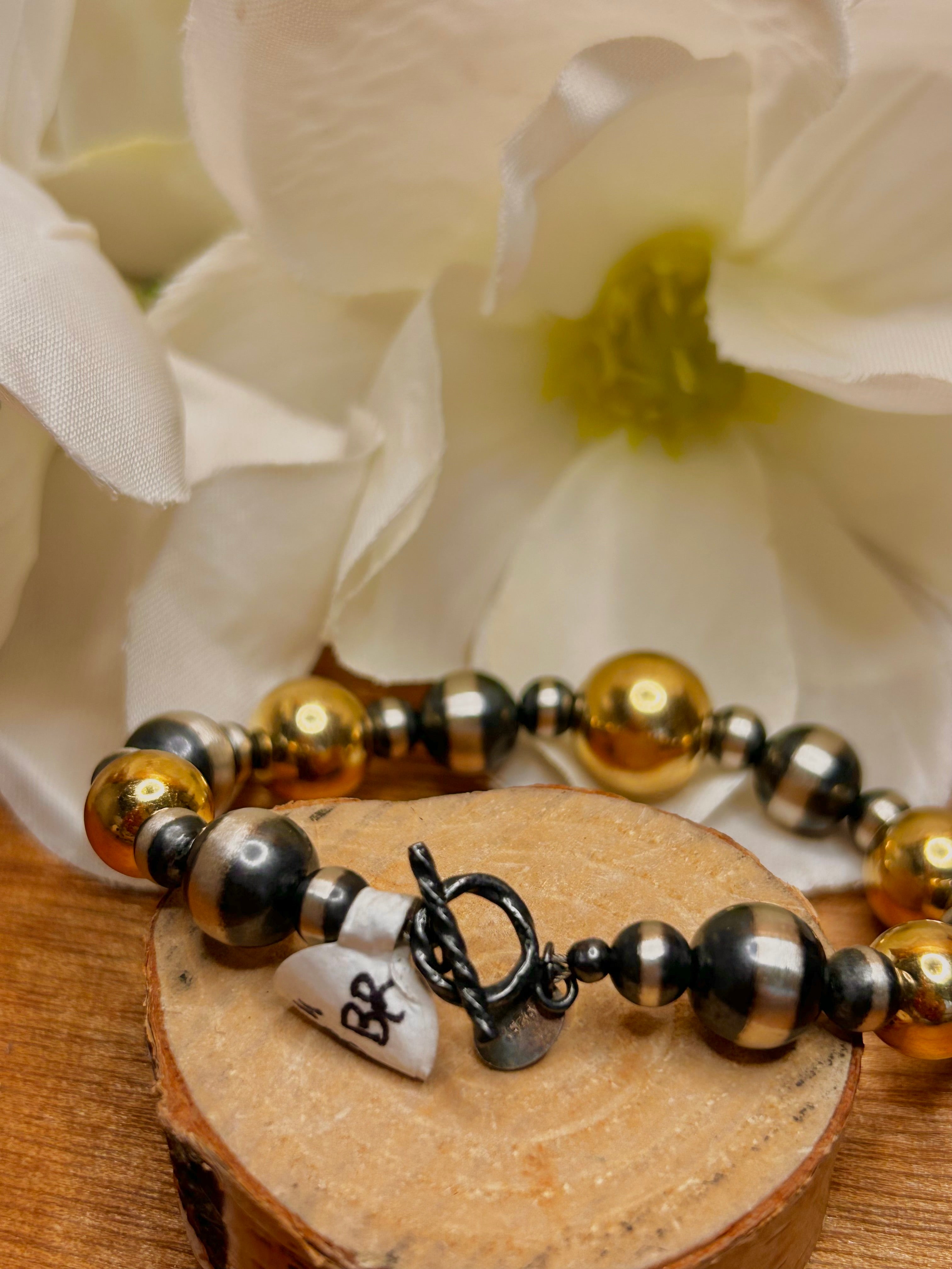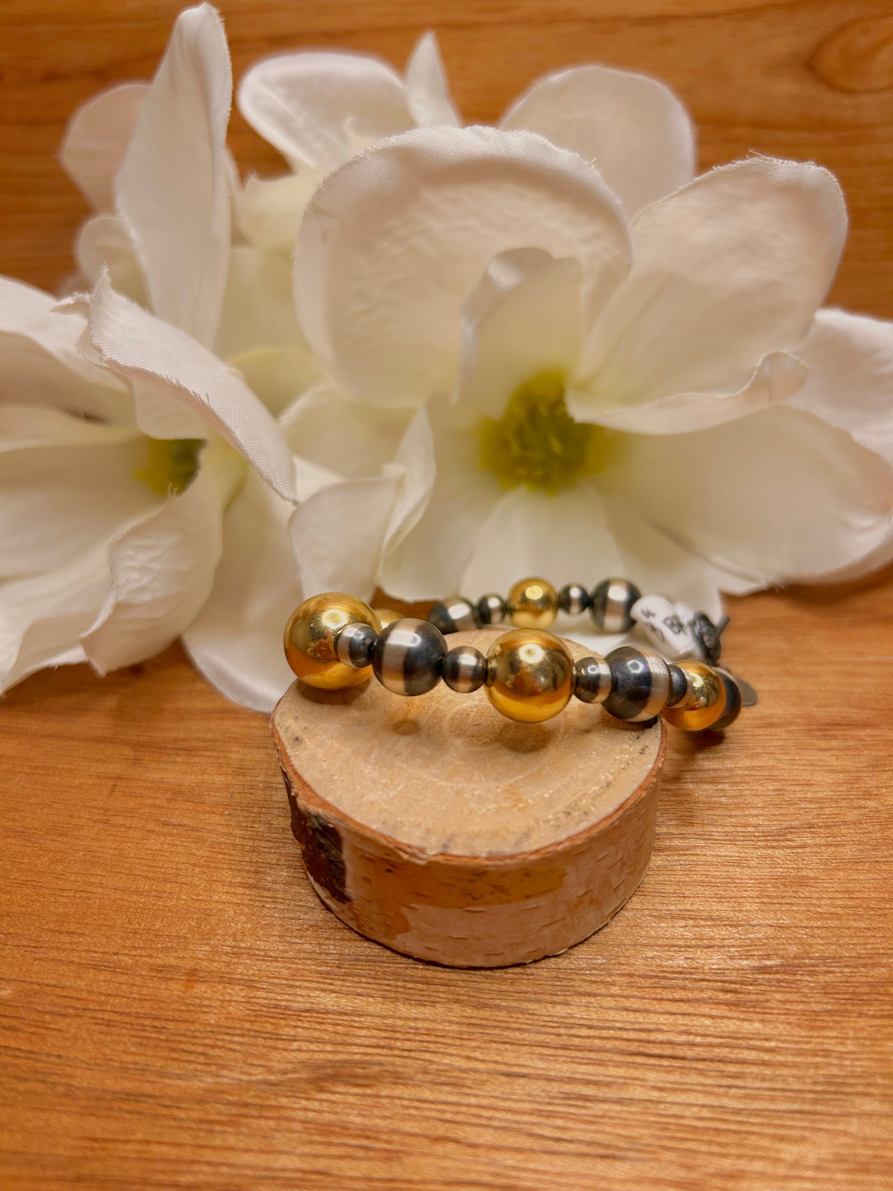 Navajo Made Strung 14k Gold Coar & Sterling Silver Pearl Bracelet