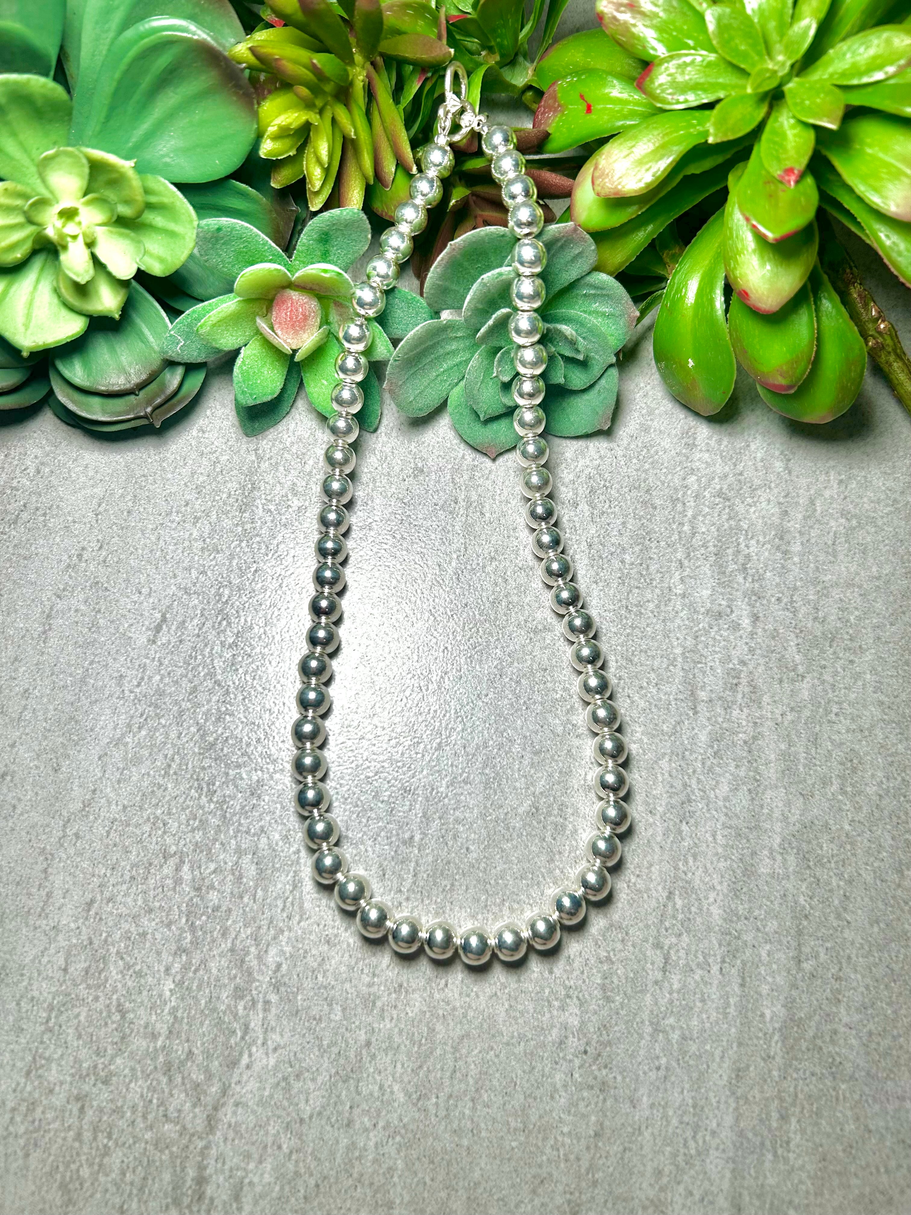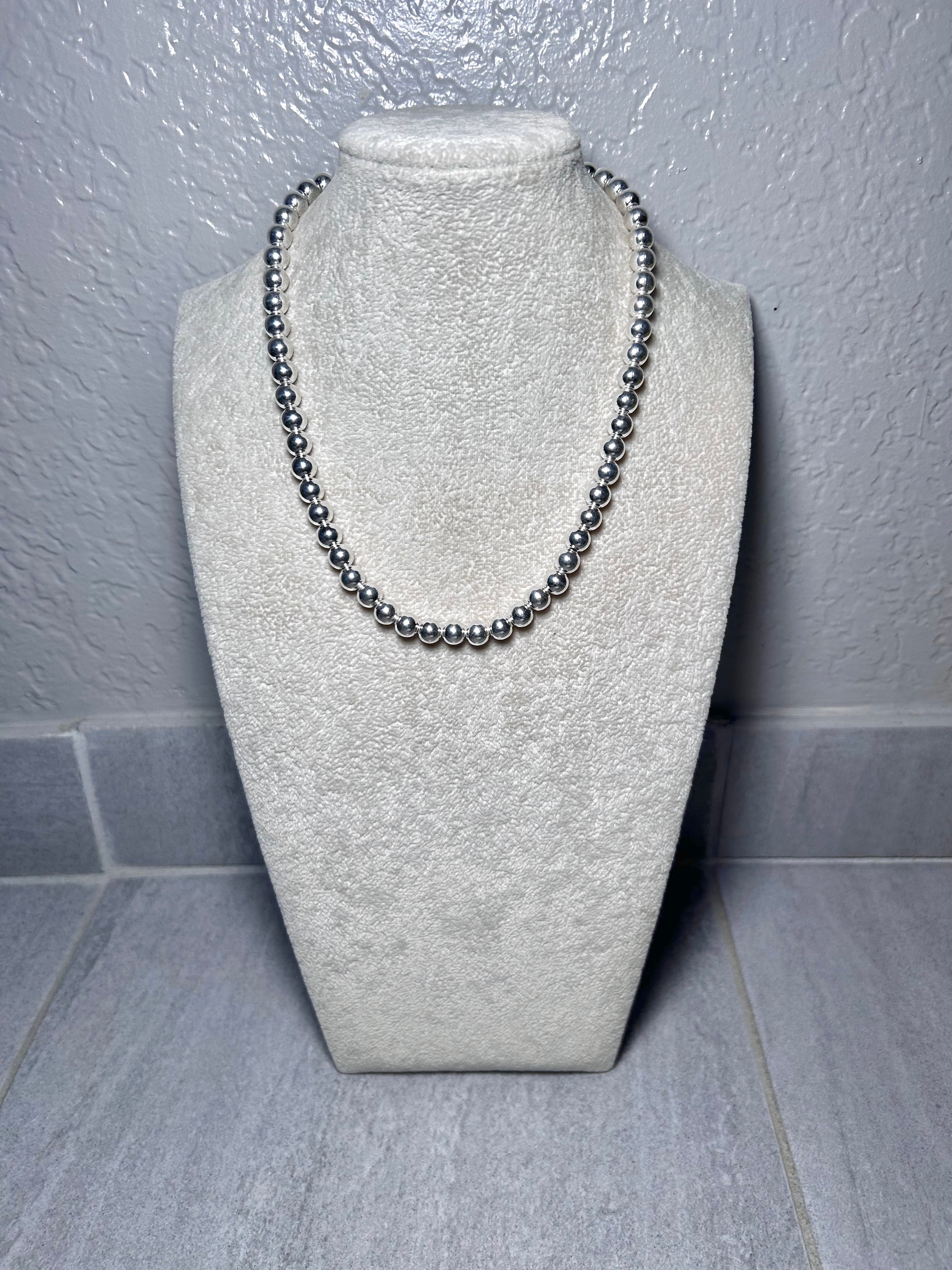 Navajo Made Strung 8 MM Sterling Silver Necklace