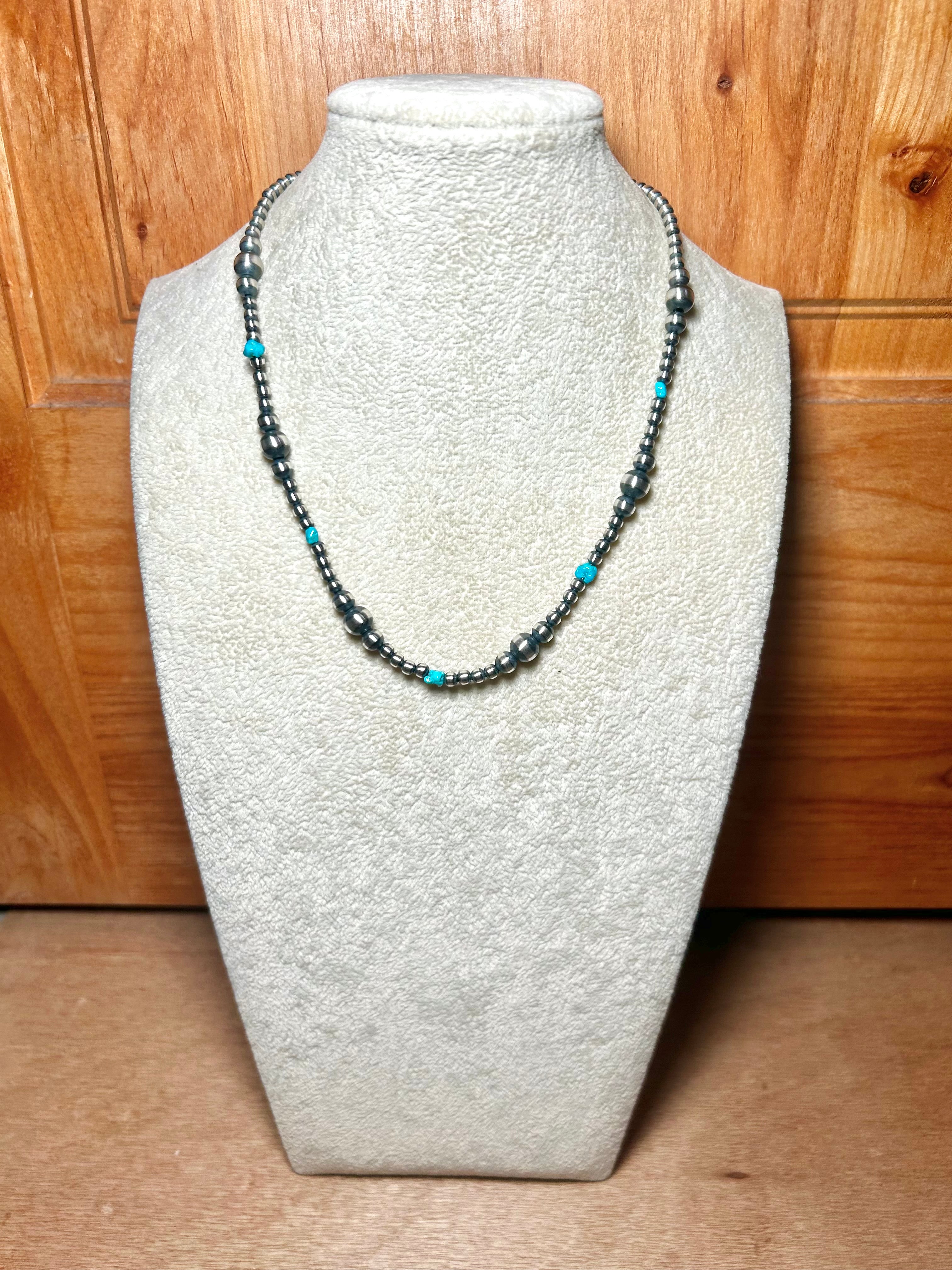 Navajo Made Strung Kingman Turquoise & Sterling Silver Necklace