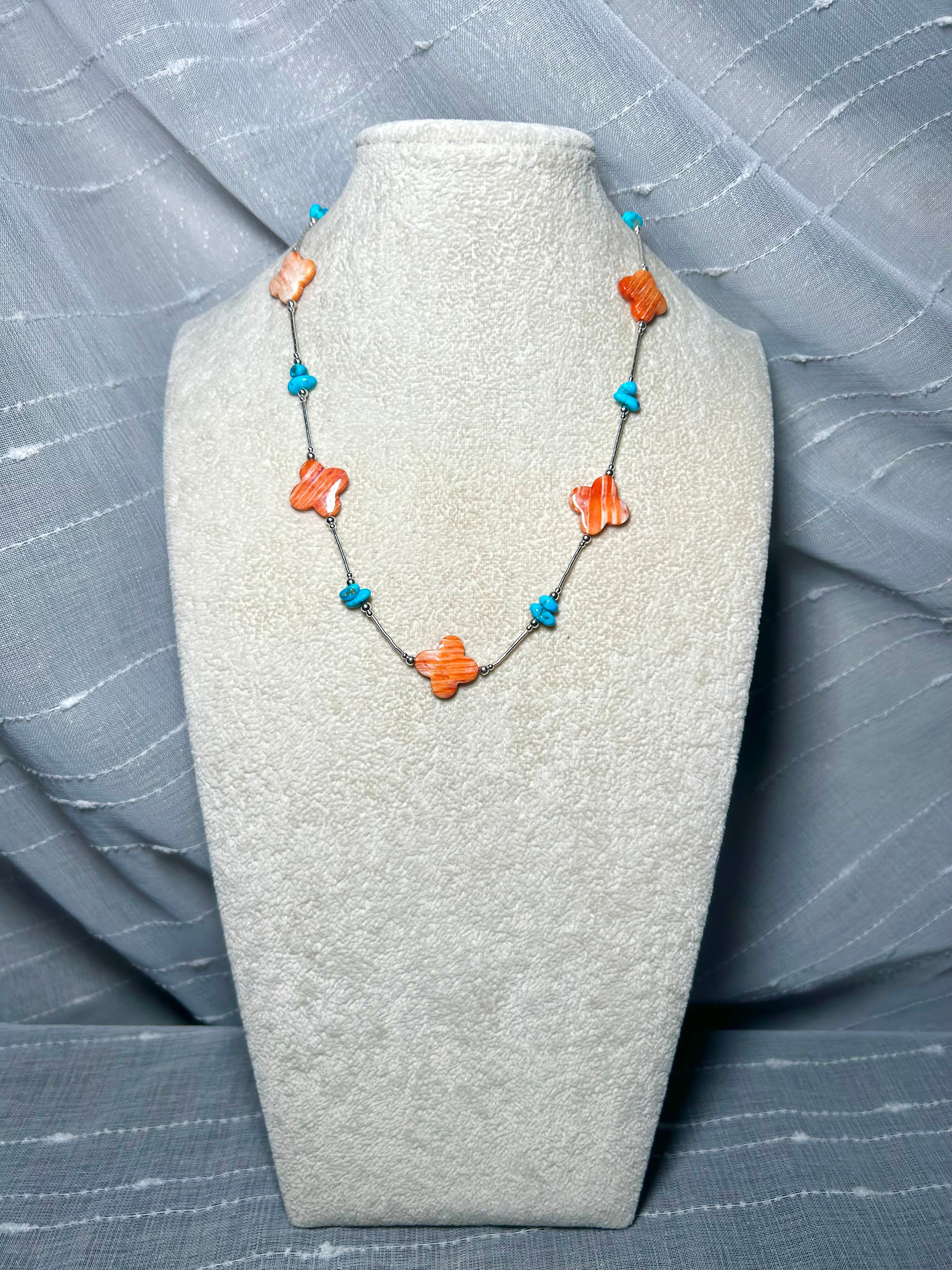 Navajo Made Strung Multi Stone & Sterling Silver Necklace