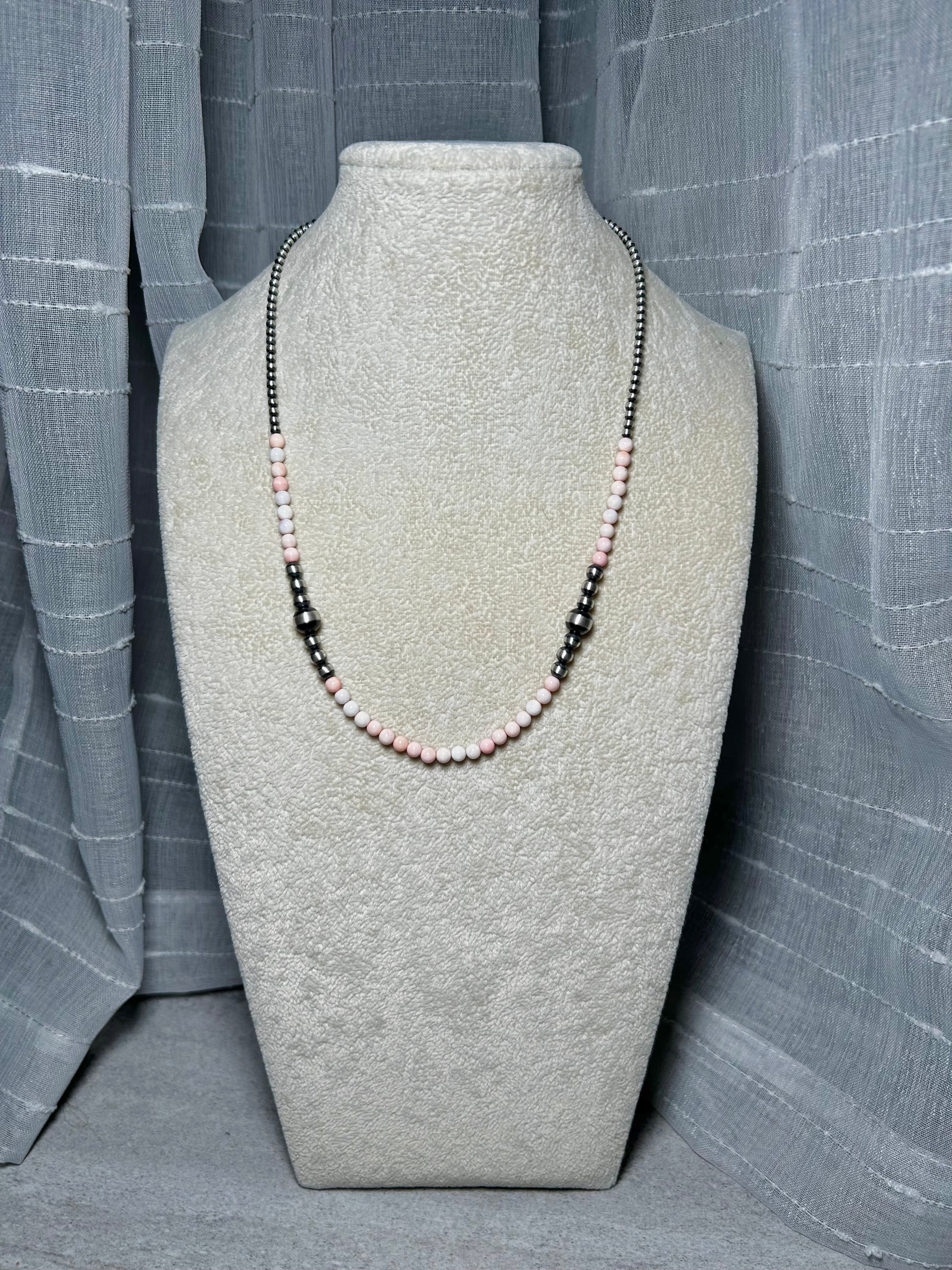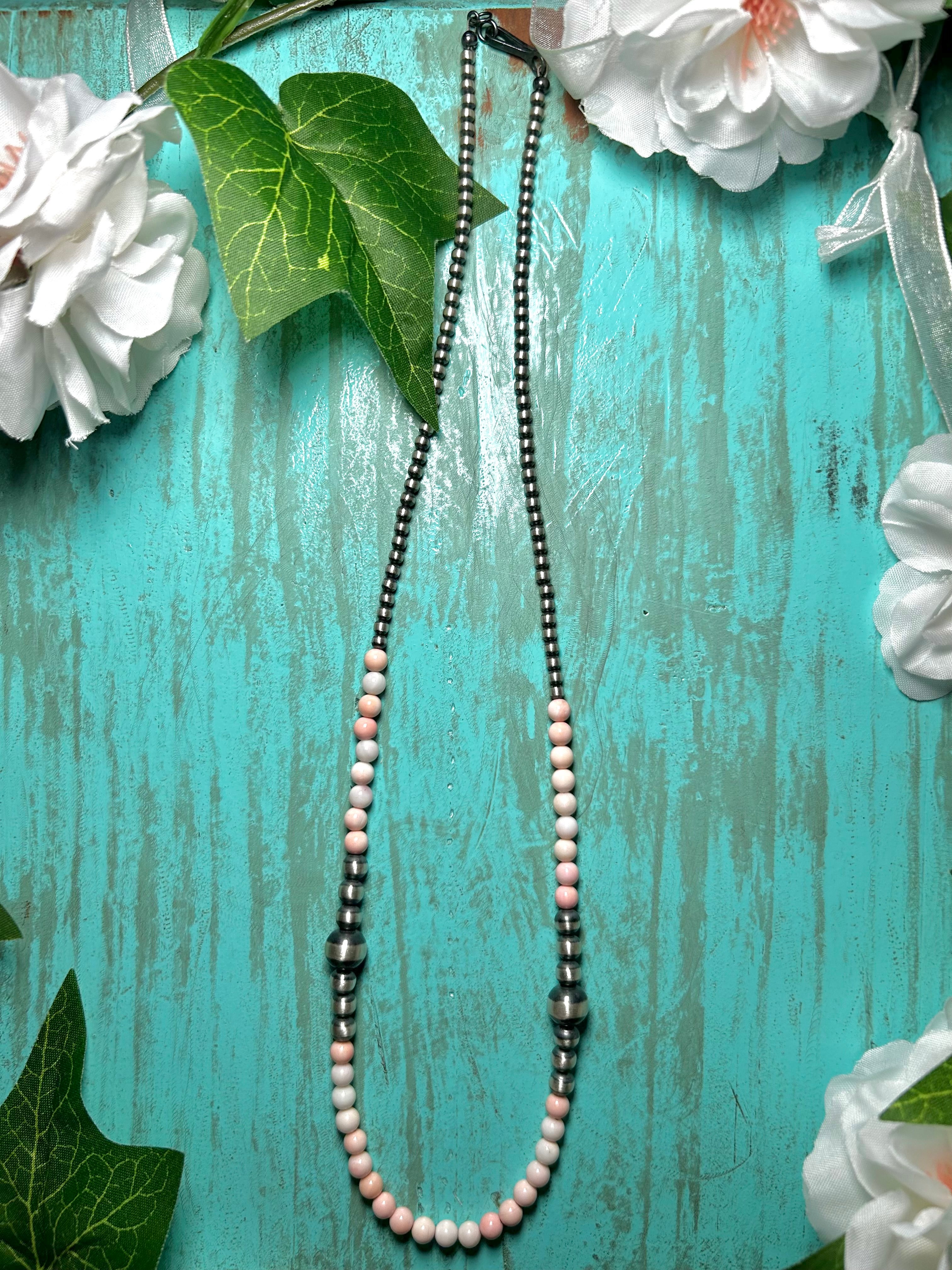 Navajo Made Strung Pink Conch & Sterling Silver Necklace