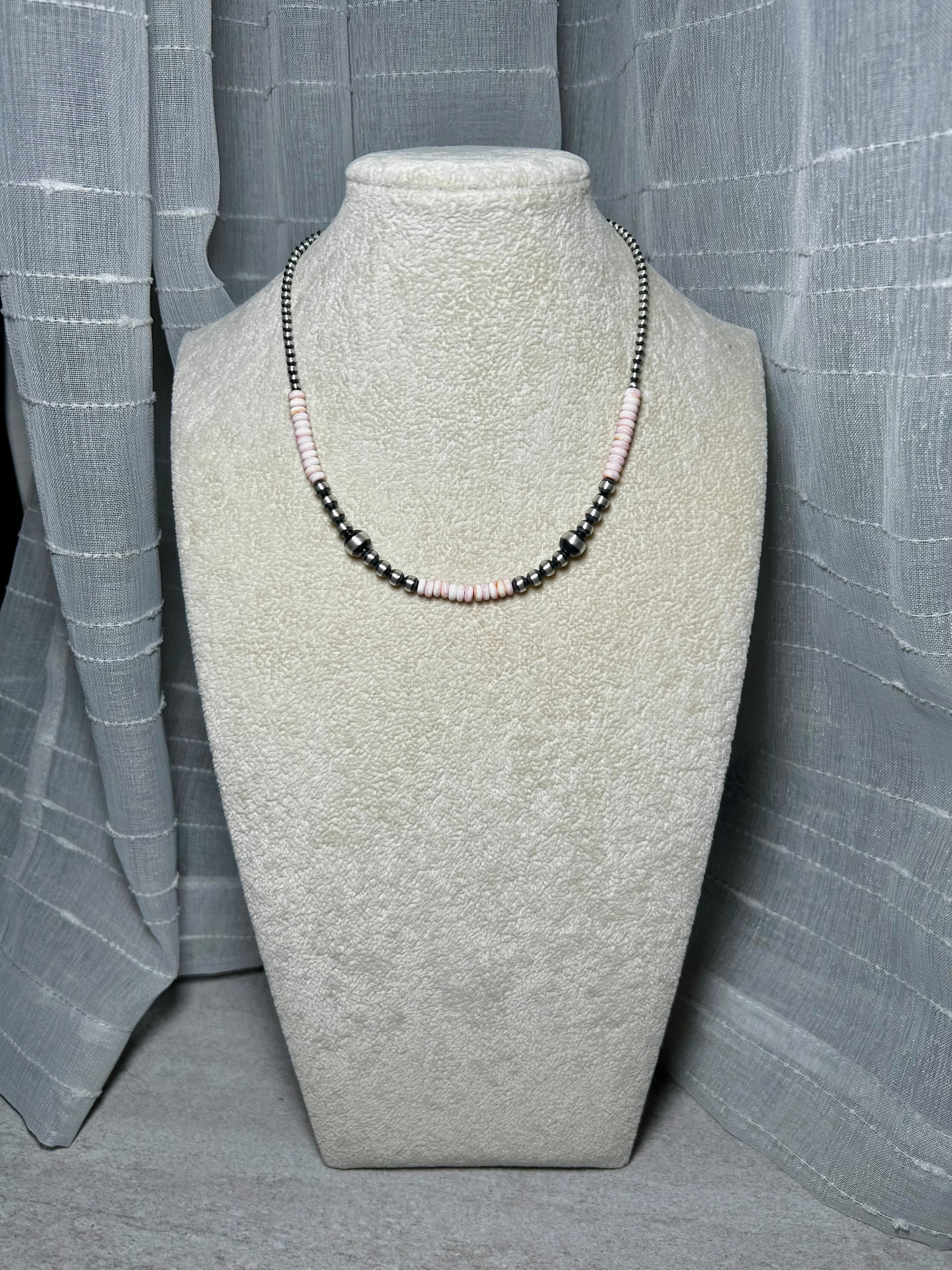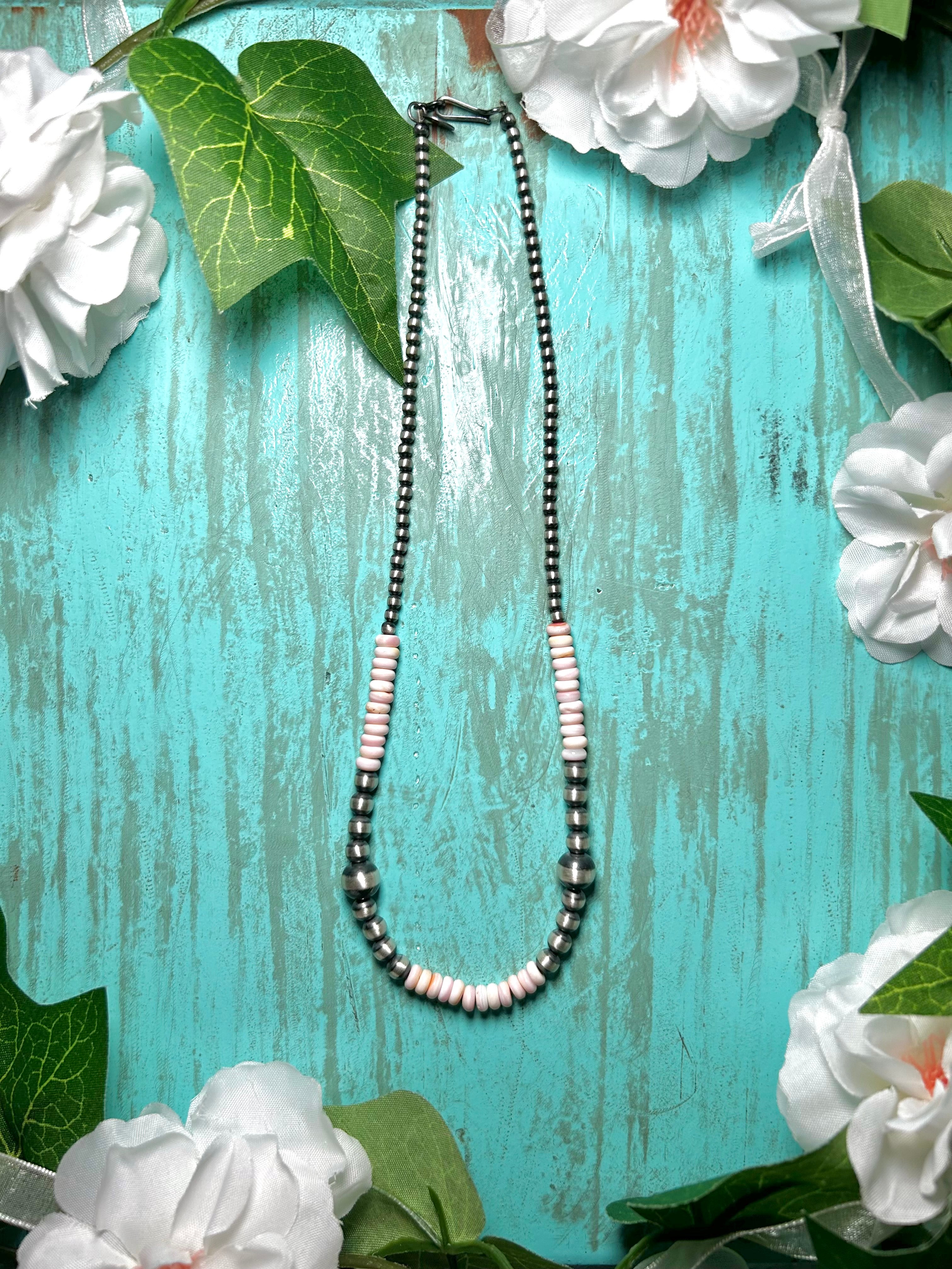 Navajo Made Strung Pink Conch & Sterling Silver Necklace
