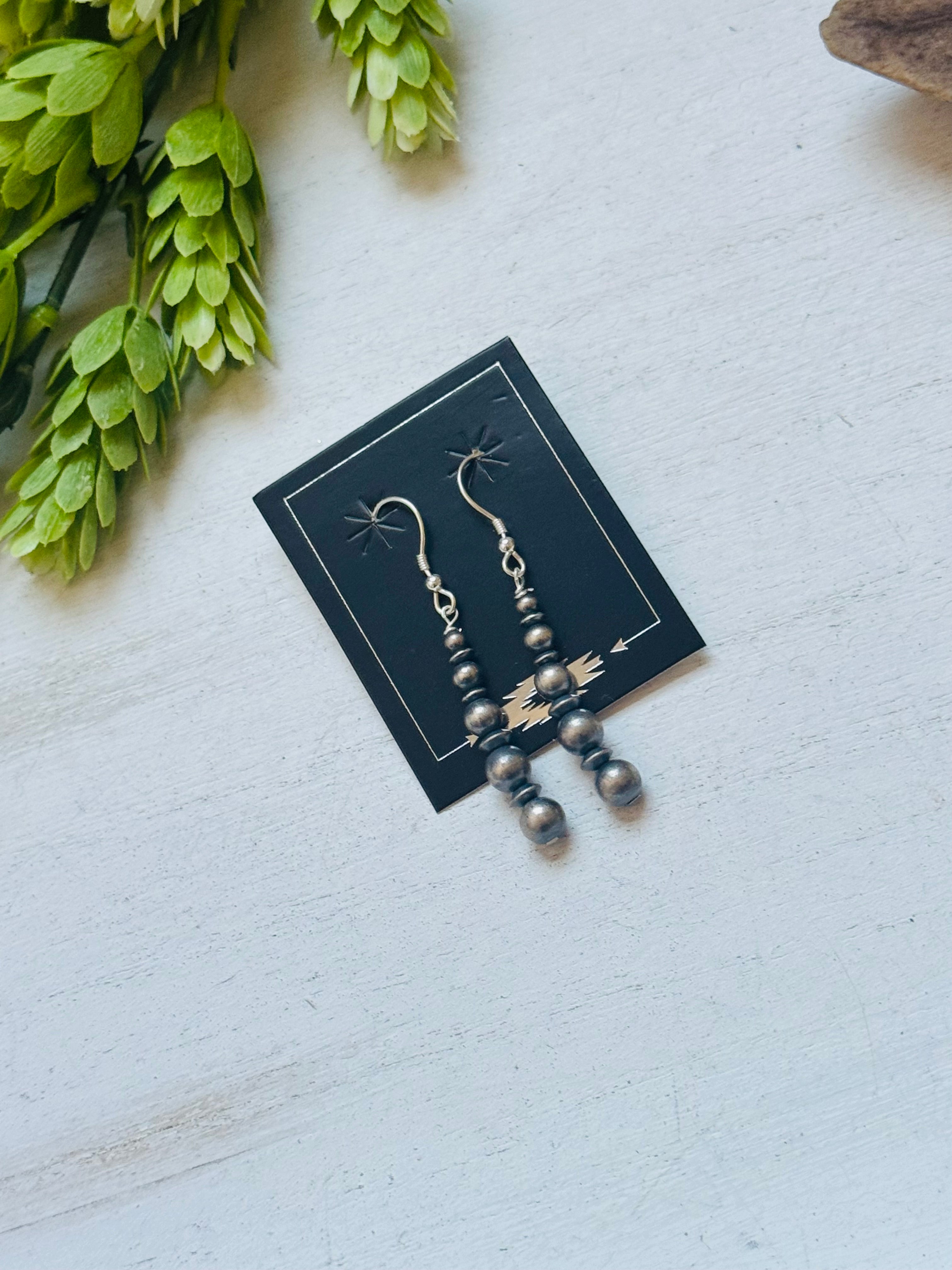 Navajo Strung Sterling Silver Graduated Dangle Pearl Earrings