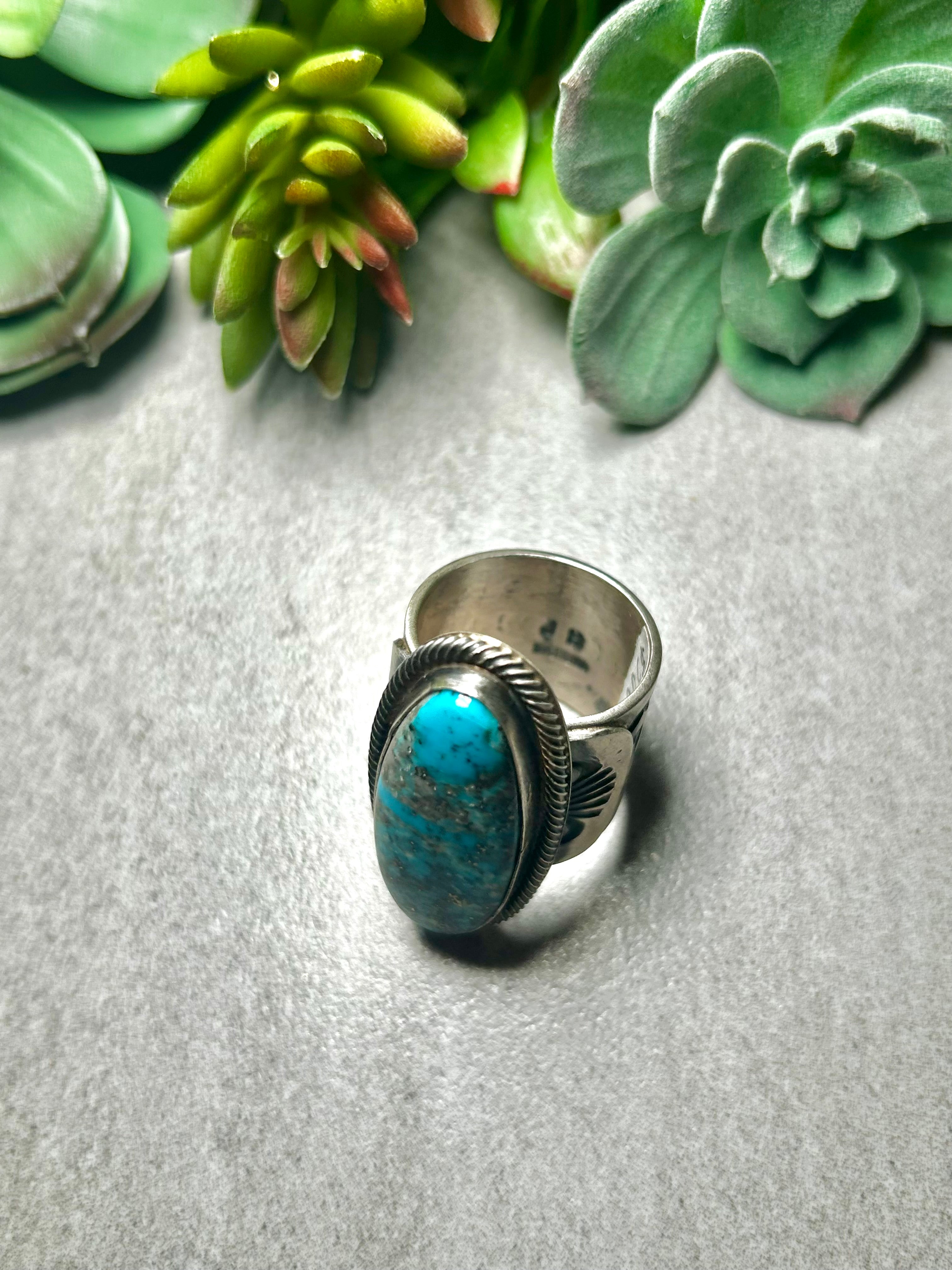 Navajo Made Thunder Mountain Turquoise & Sterling Silver Ring Size 12.5