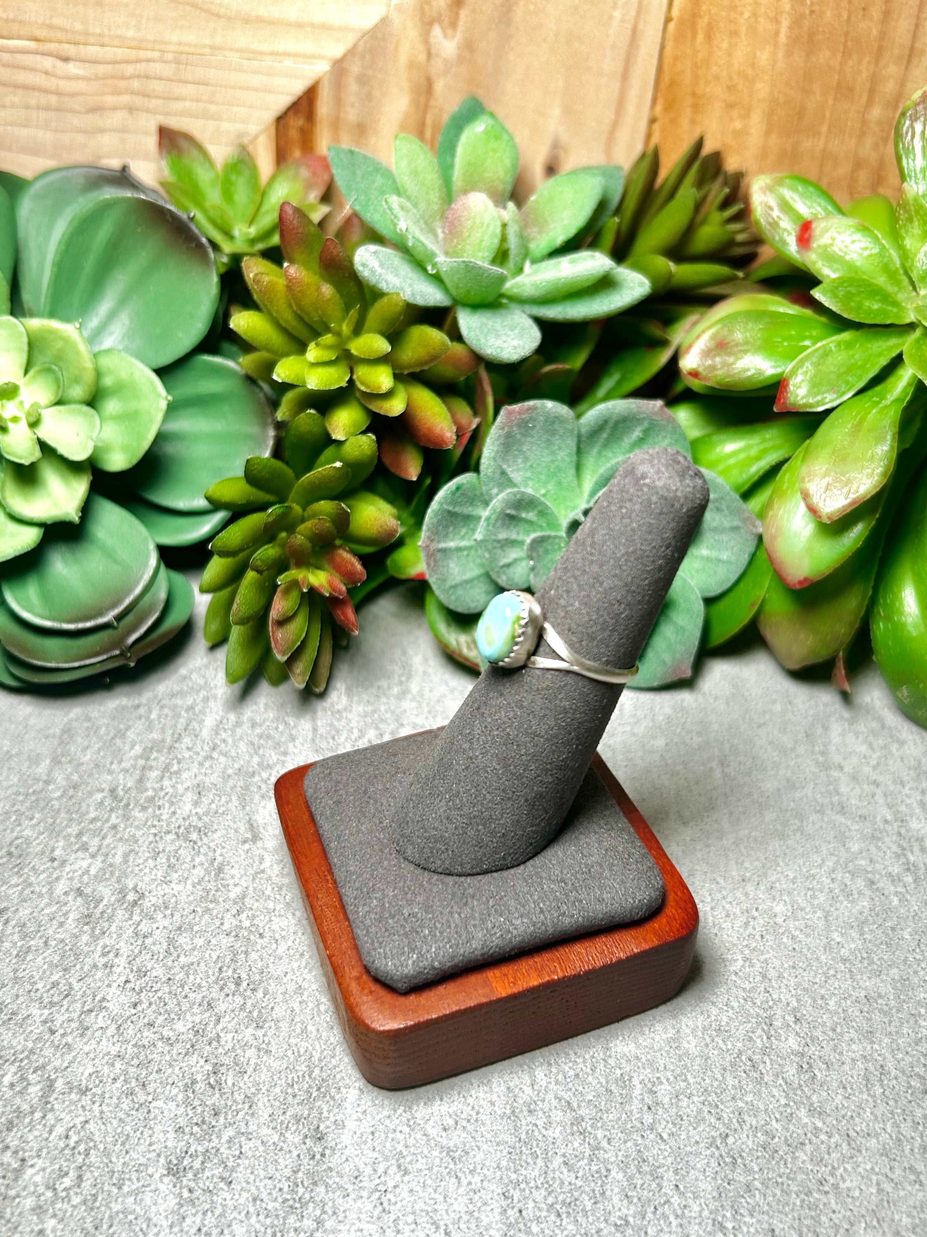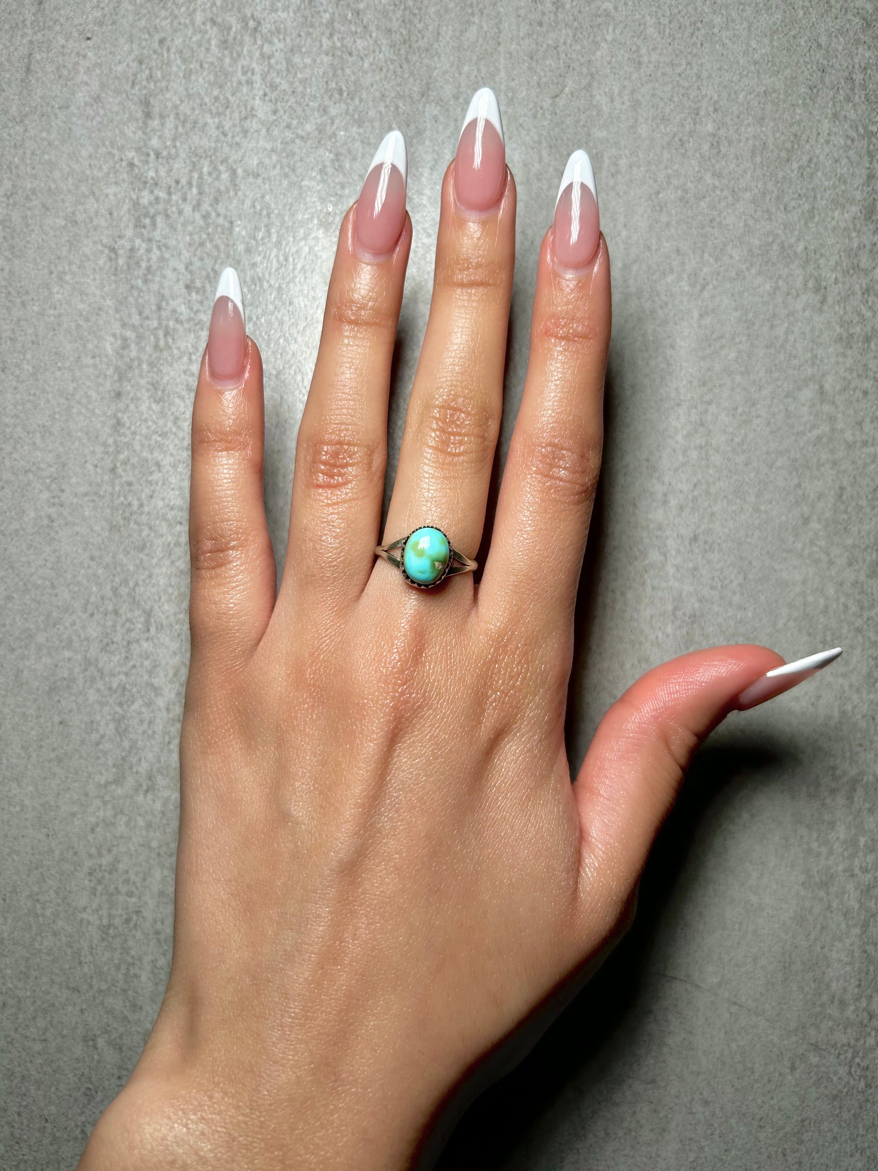 Randy Boyd Sonoran Mountain Turquoise & Sterling Silver Ring Size 6. It measures 3/8 of an inch long and 3/8 of an inch wide. Signed by the artist and stamped sterling silver.