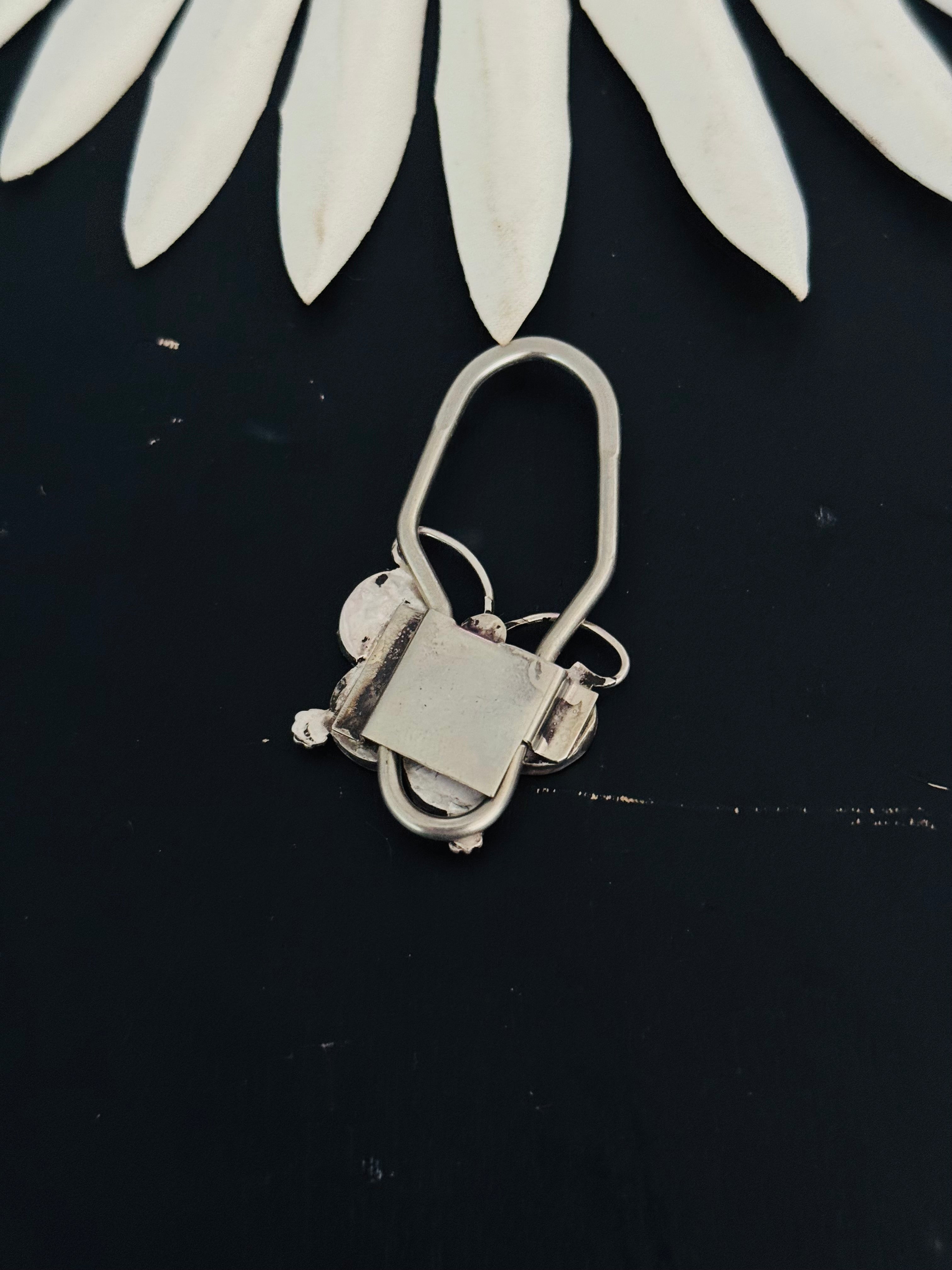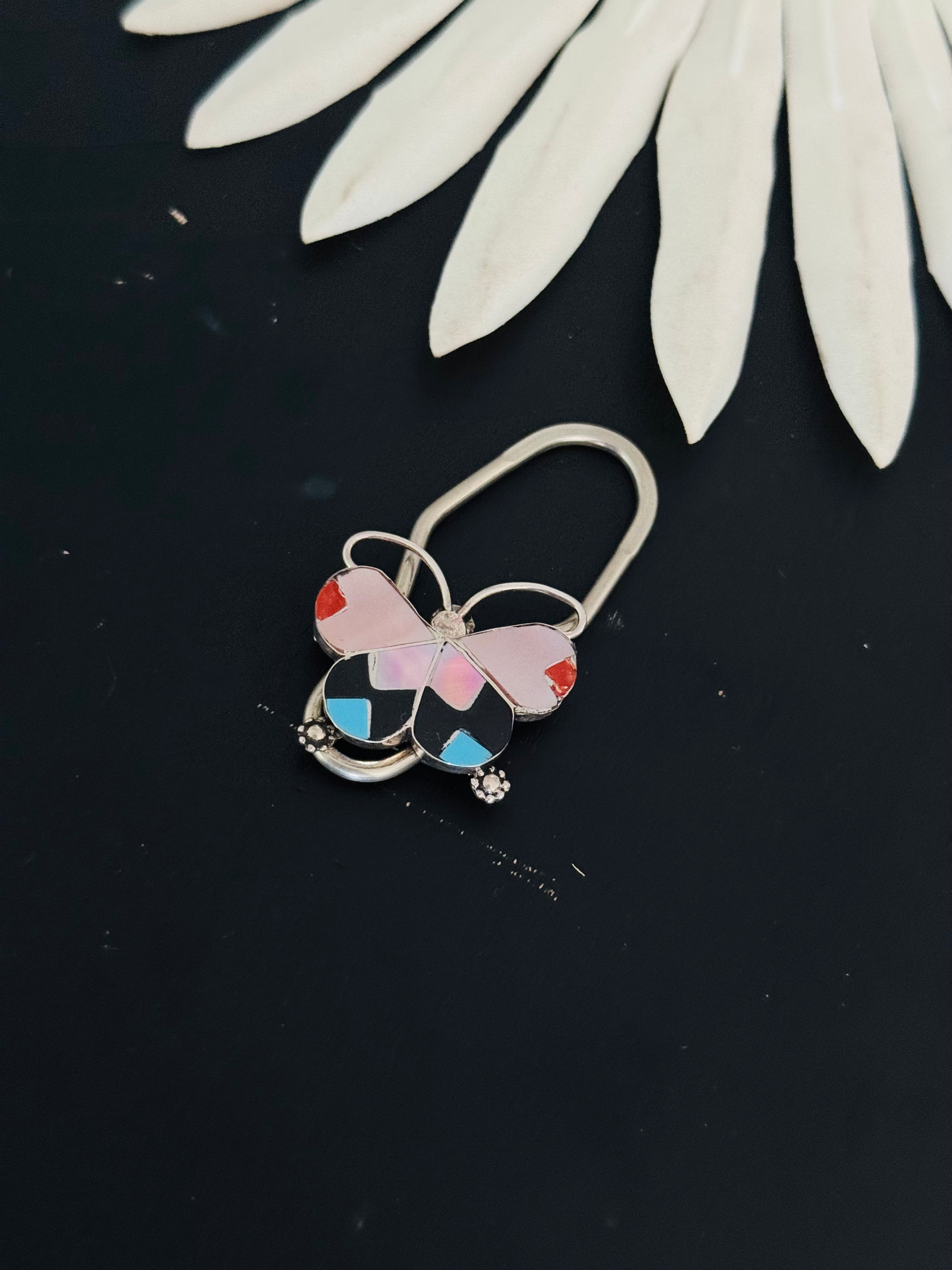 Alison Dishta Multi Stone & Sterling Silver Inaly Butterlfy Keychain. It measures 2 1/8 inches long and 1 1/8 inches wide. Signed by artist.