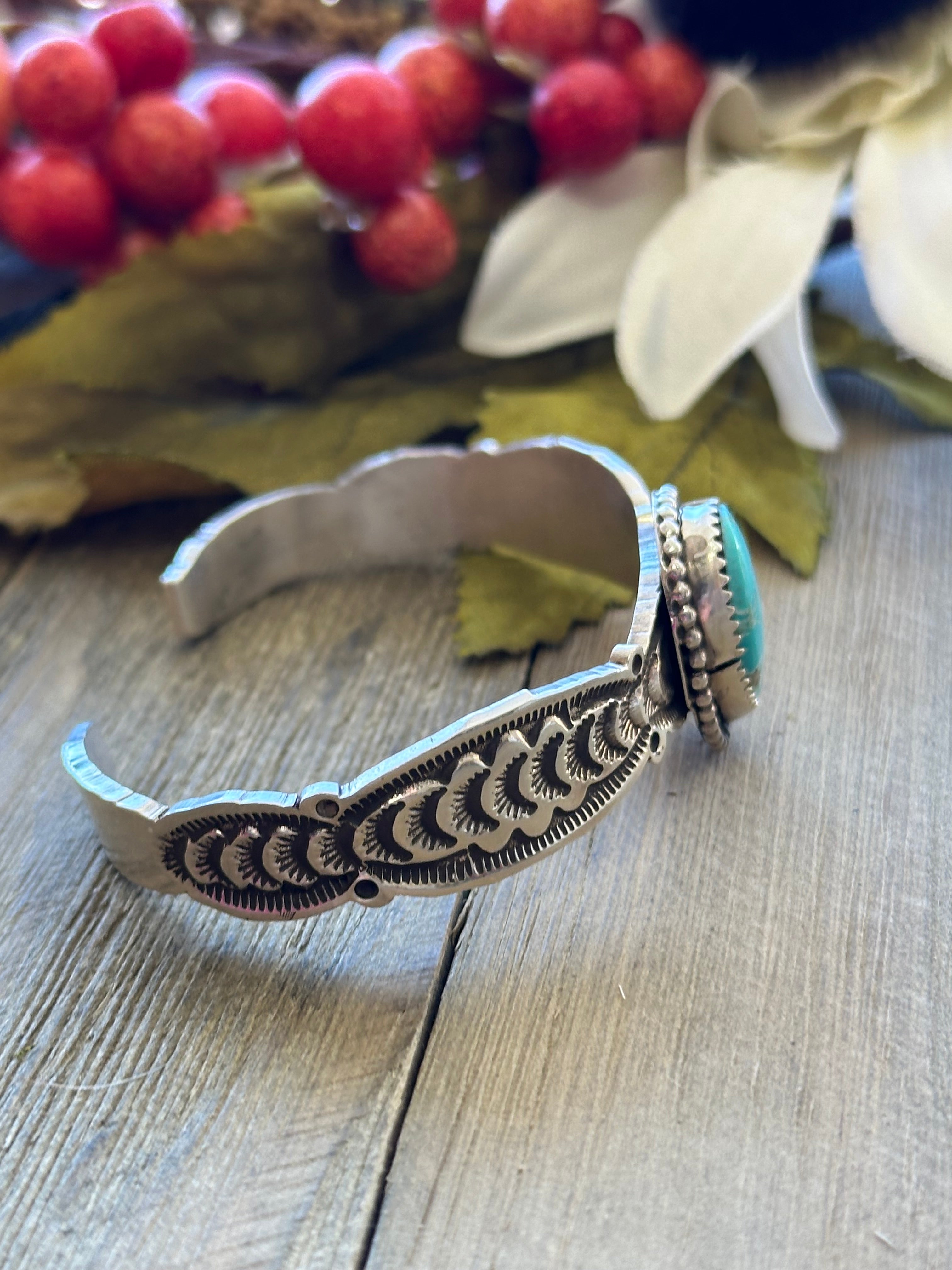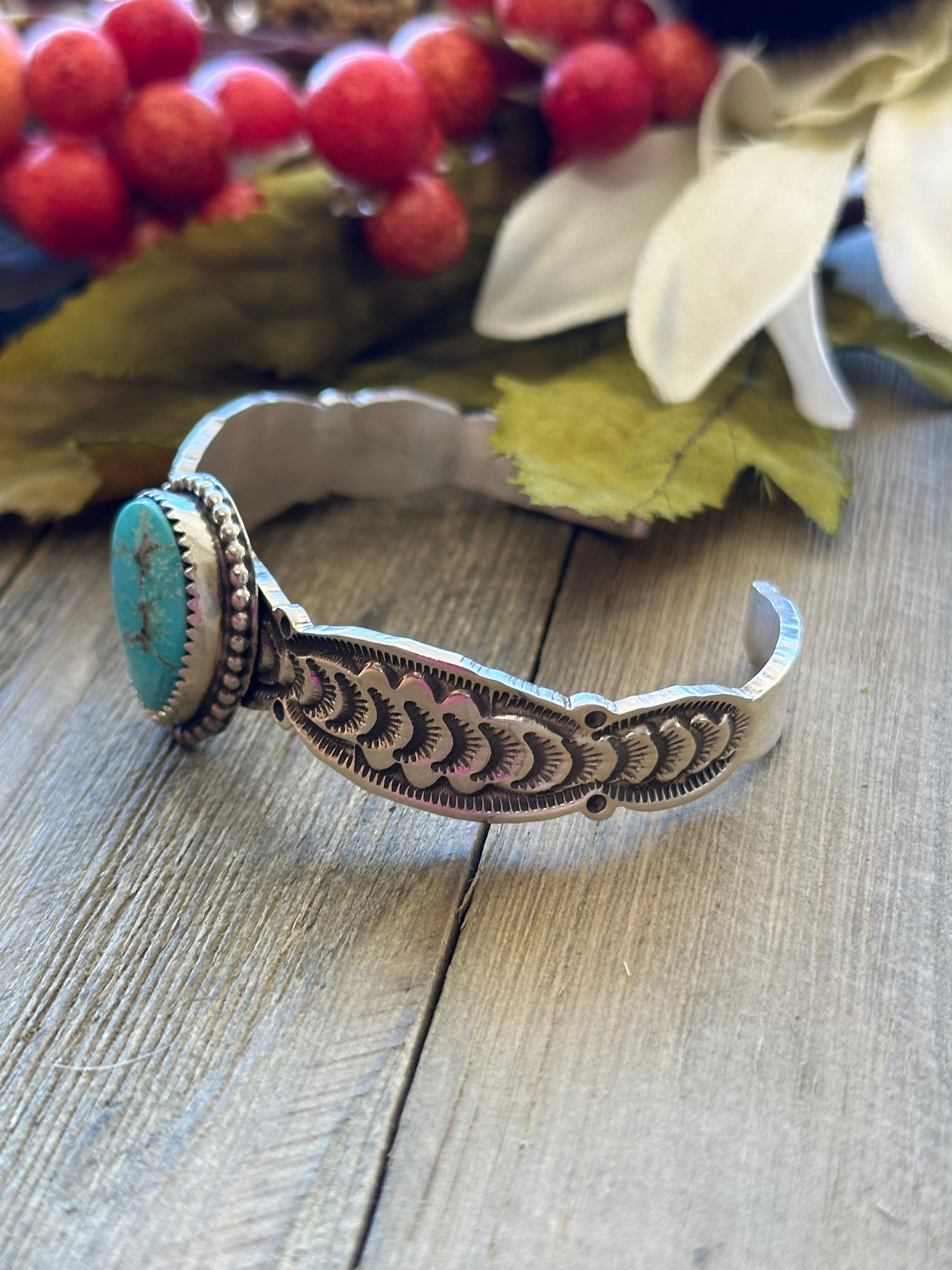 Navajo Made Kingman Turquoise & Sterling Silver Cuff Bracelet