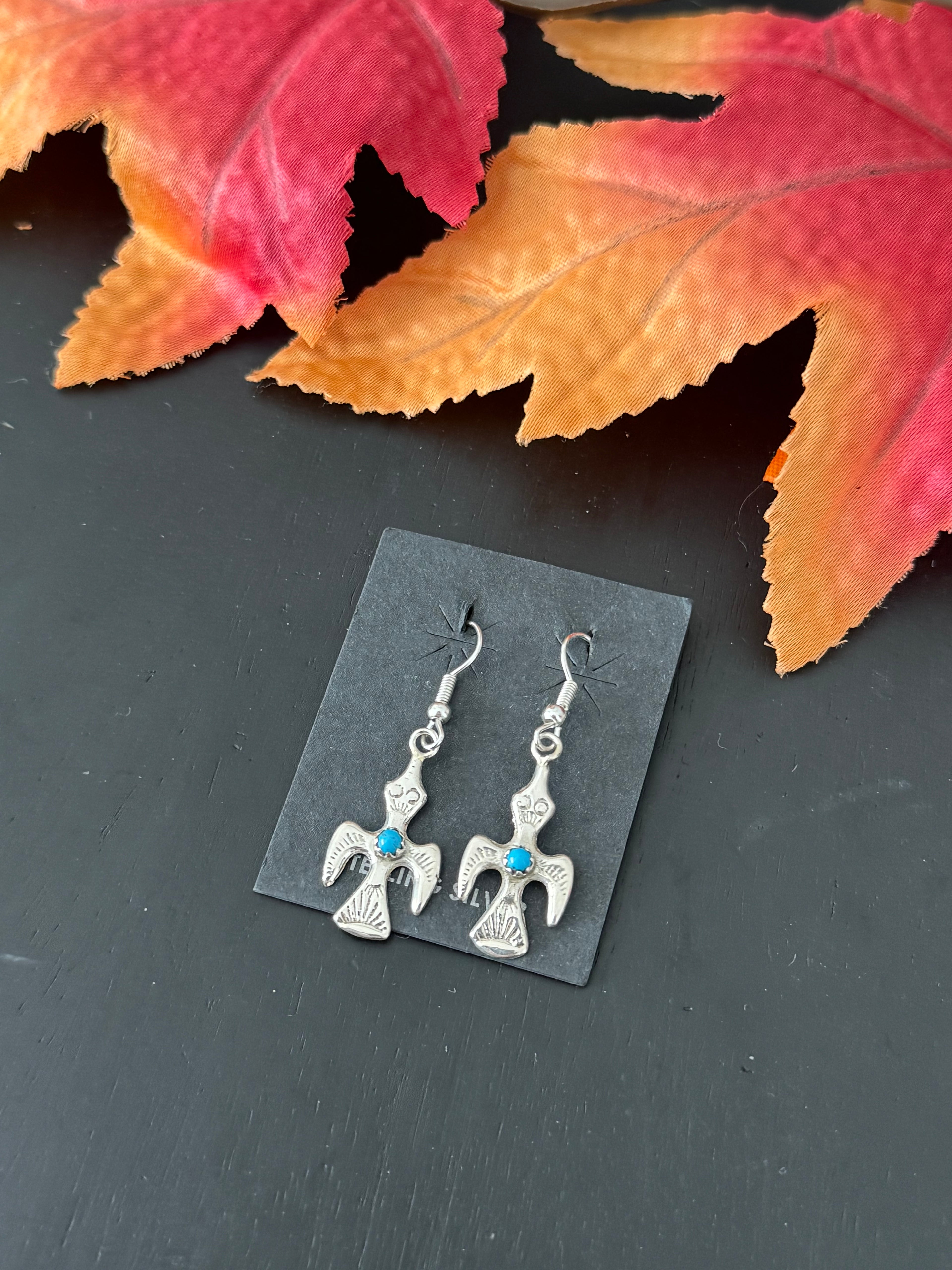 Navajo Made Turquoise & Sterling Silver Dangle Earrings