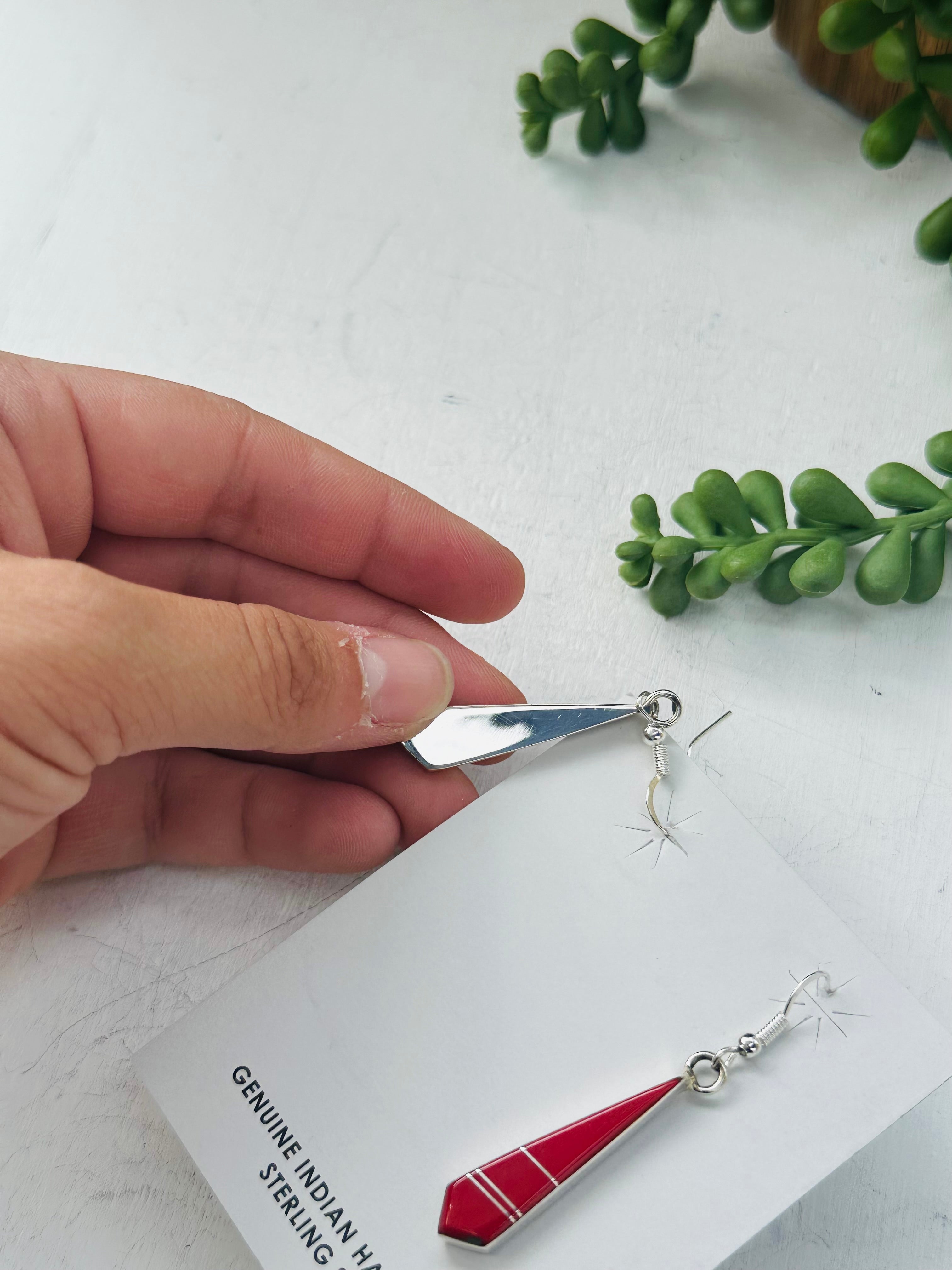 - These are must haves for your everyday wear. Mary Yazzie Turquoise & Sterling Silver Inlay Dangle Earrings. It measures 2 inches long and just over 3/8 of an inch wide. Signed by the artist and stamped sterling silver.