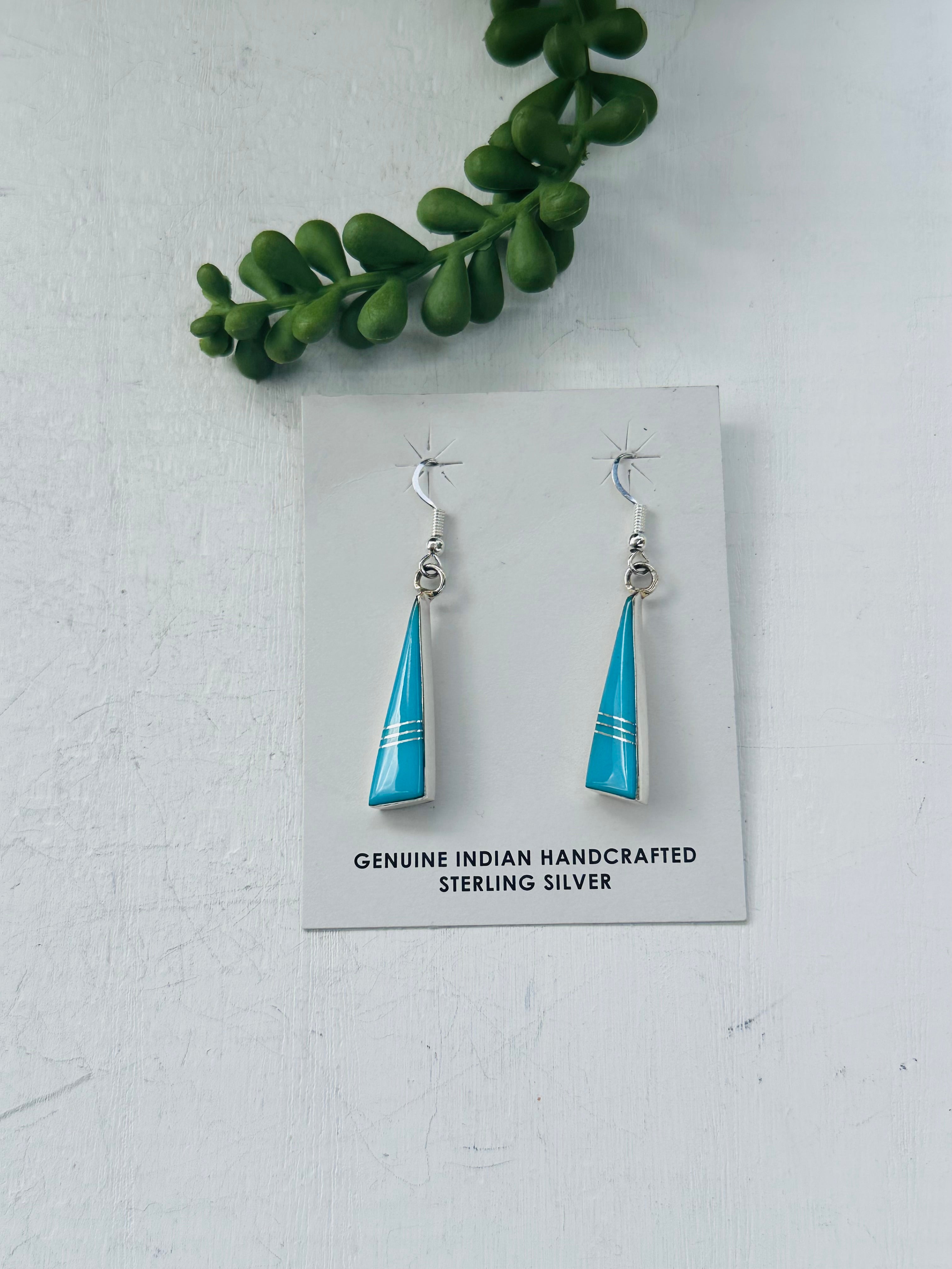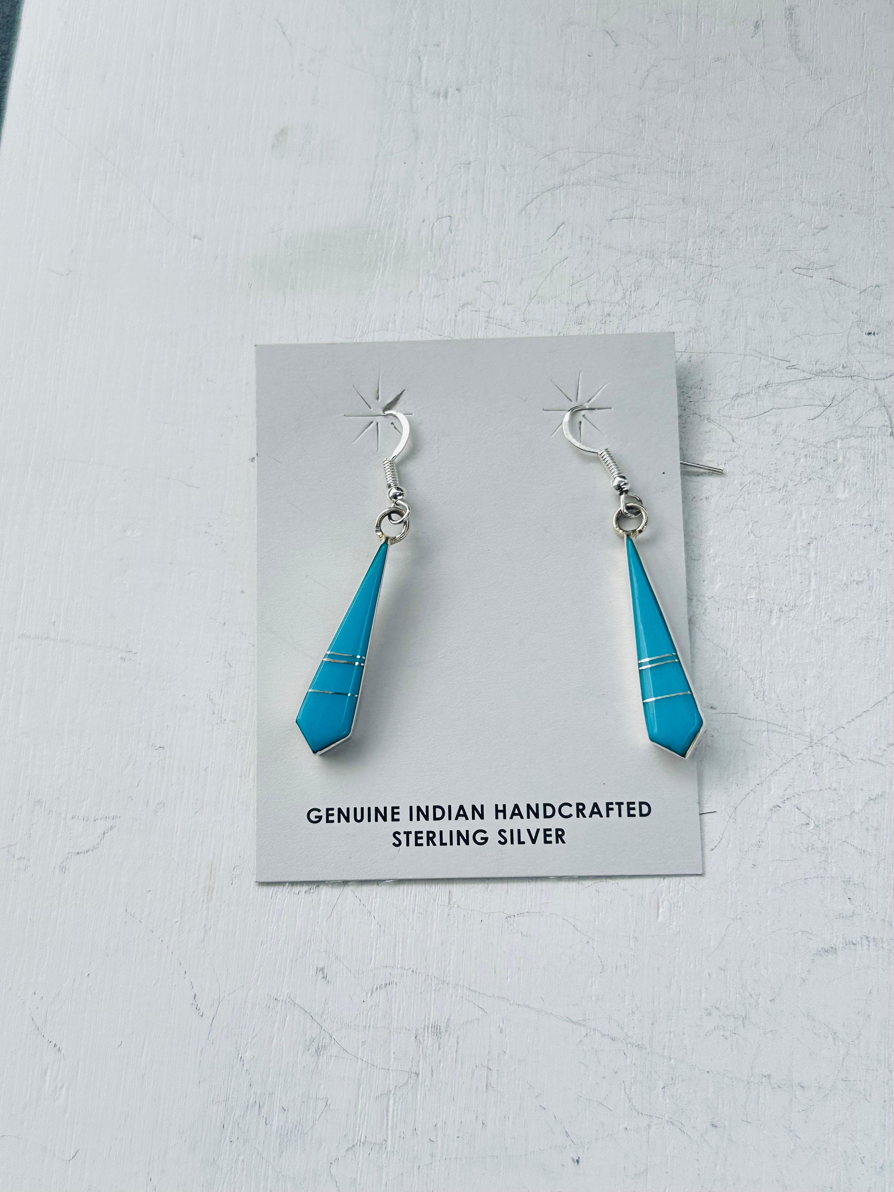 Mary Yazzie Turquoise & Sterling Silver Inlay Dangle Earrings