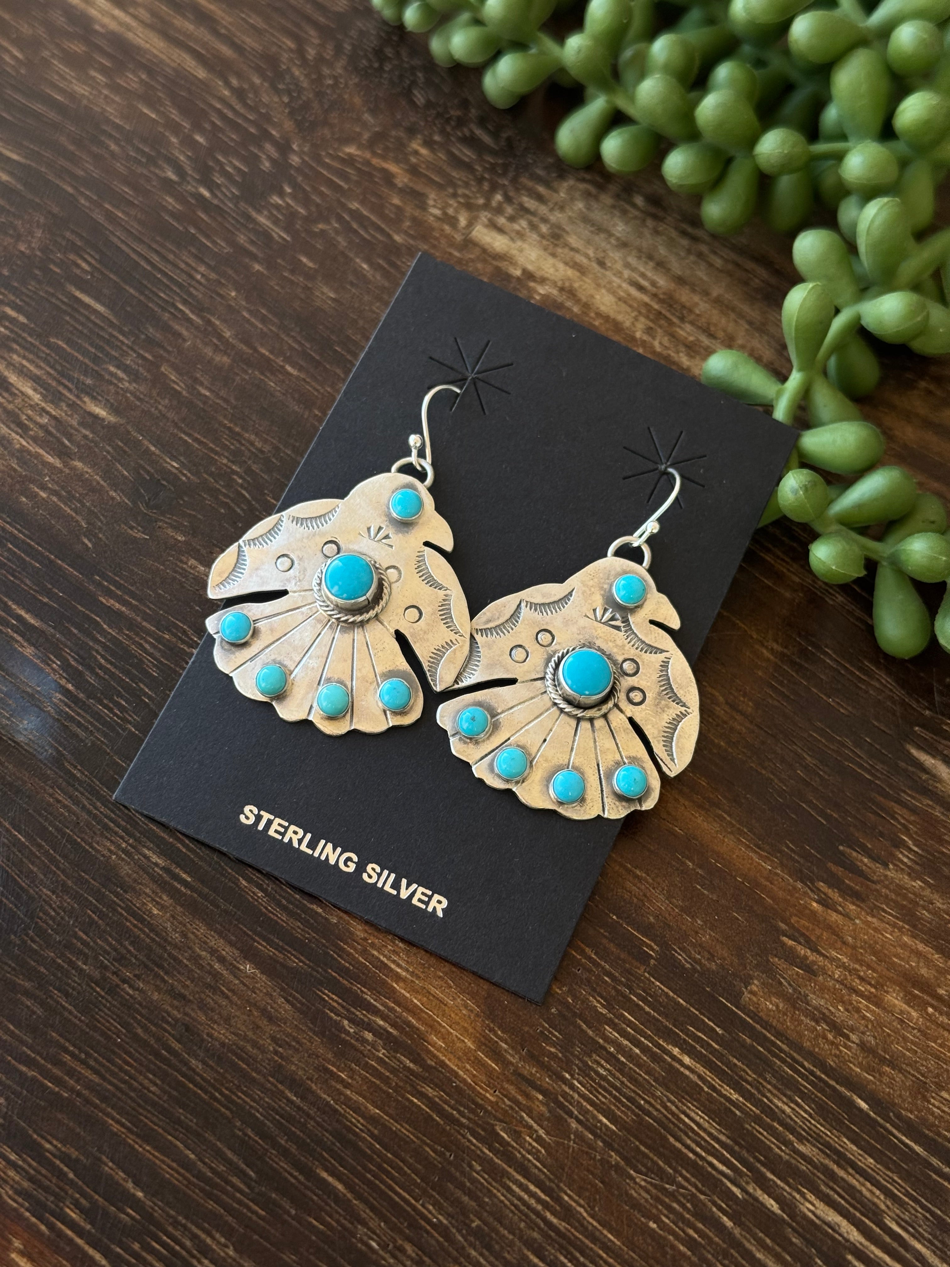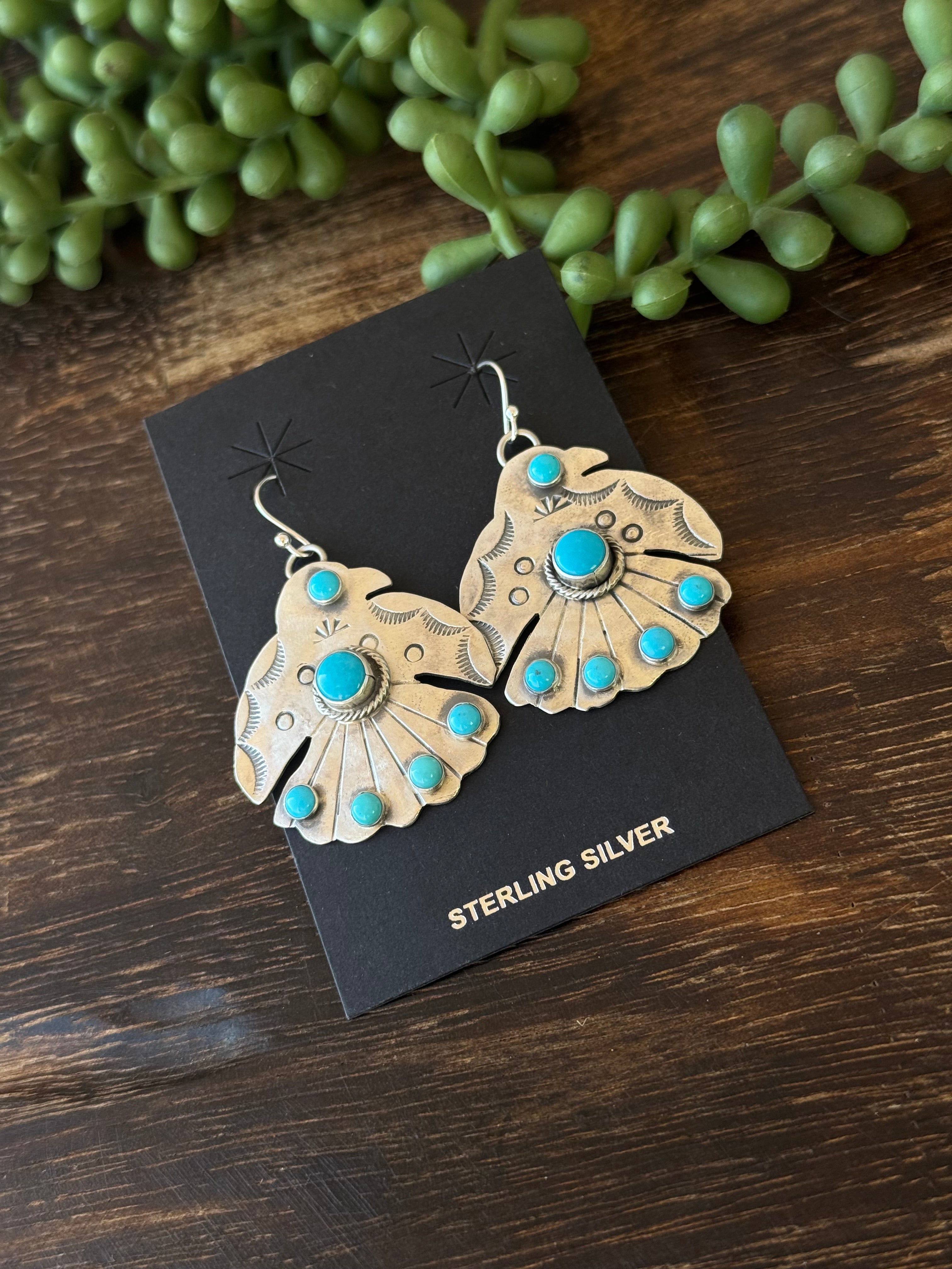 Navajo Made Turquoise & Sterling Silver Thunderbird Dangle Earrings
