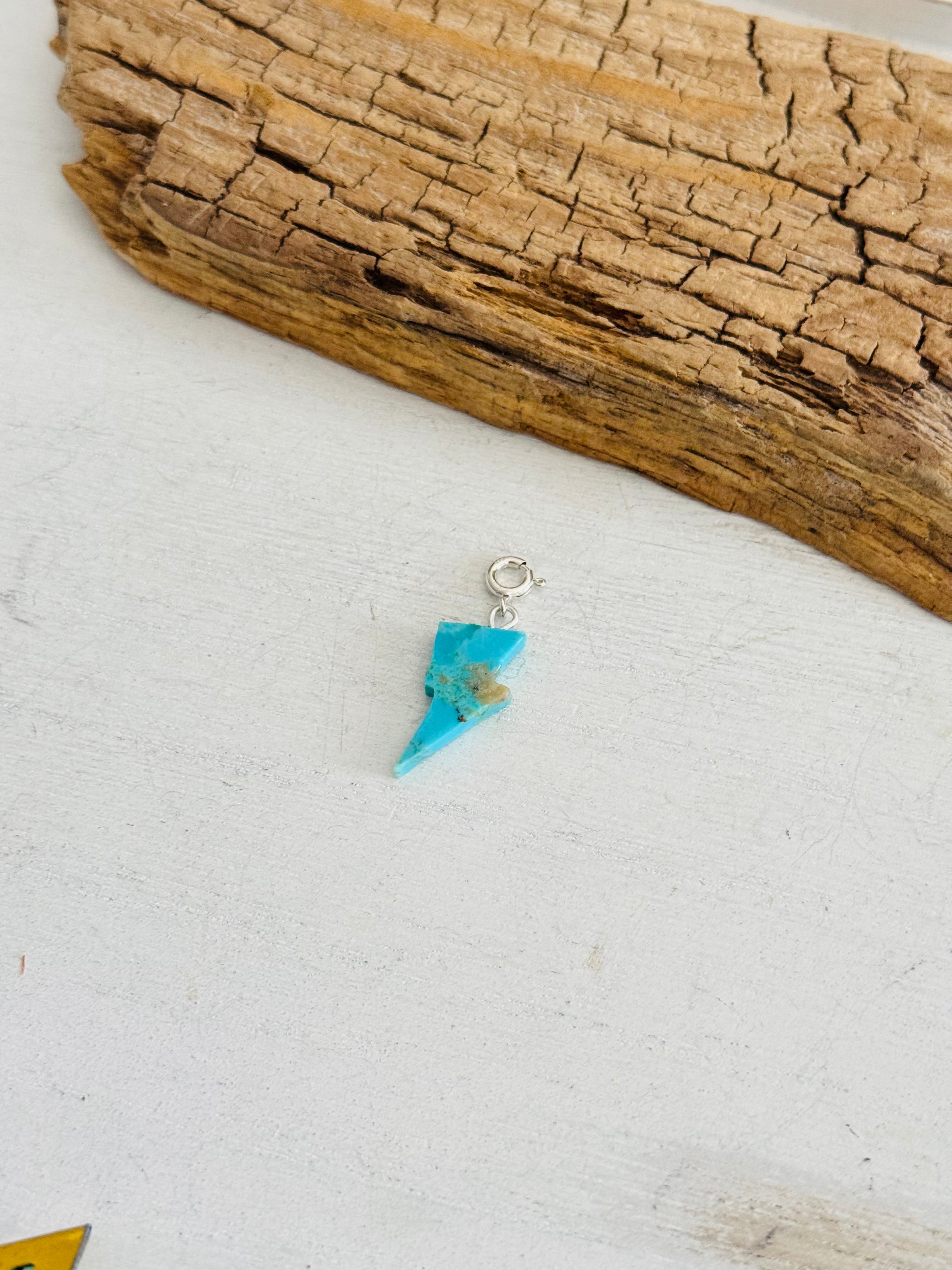 Navajo Made Mohave Turquoise & Sterling Silver Lightning Bolt Charms