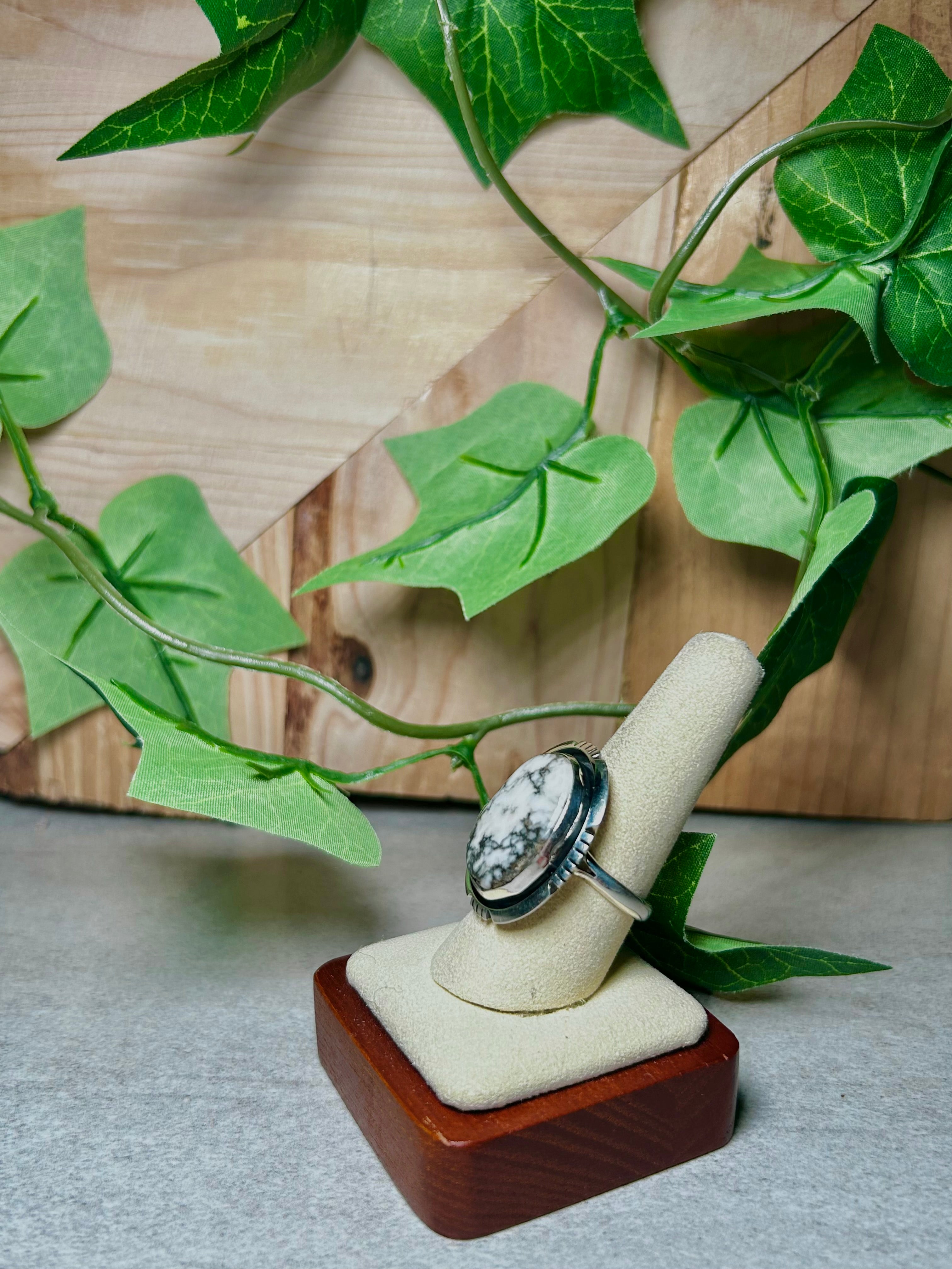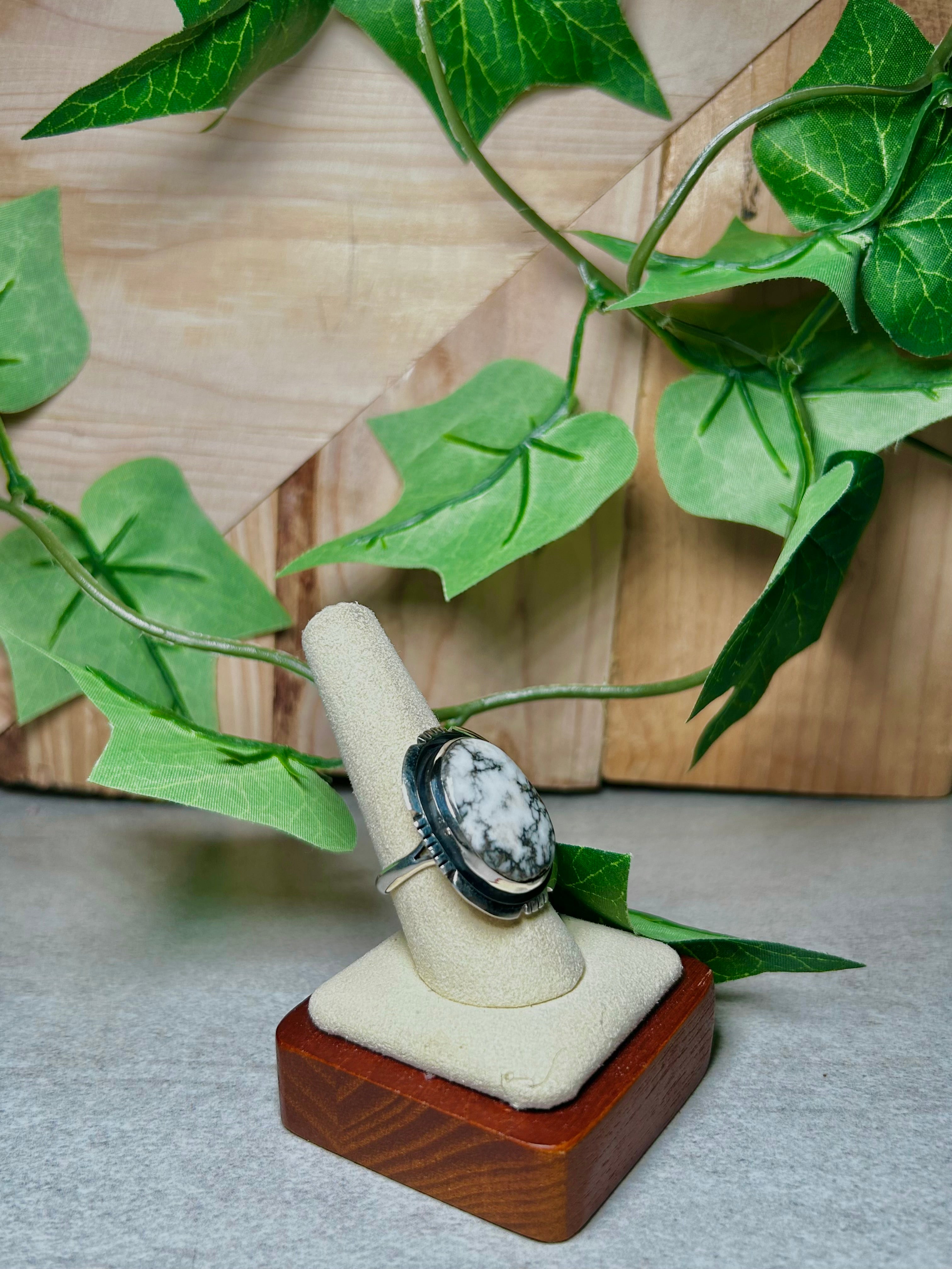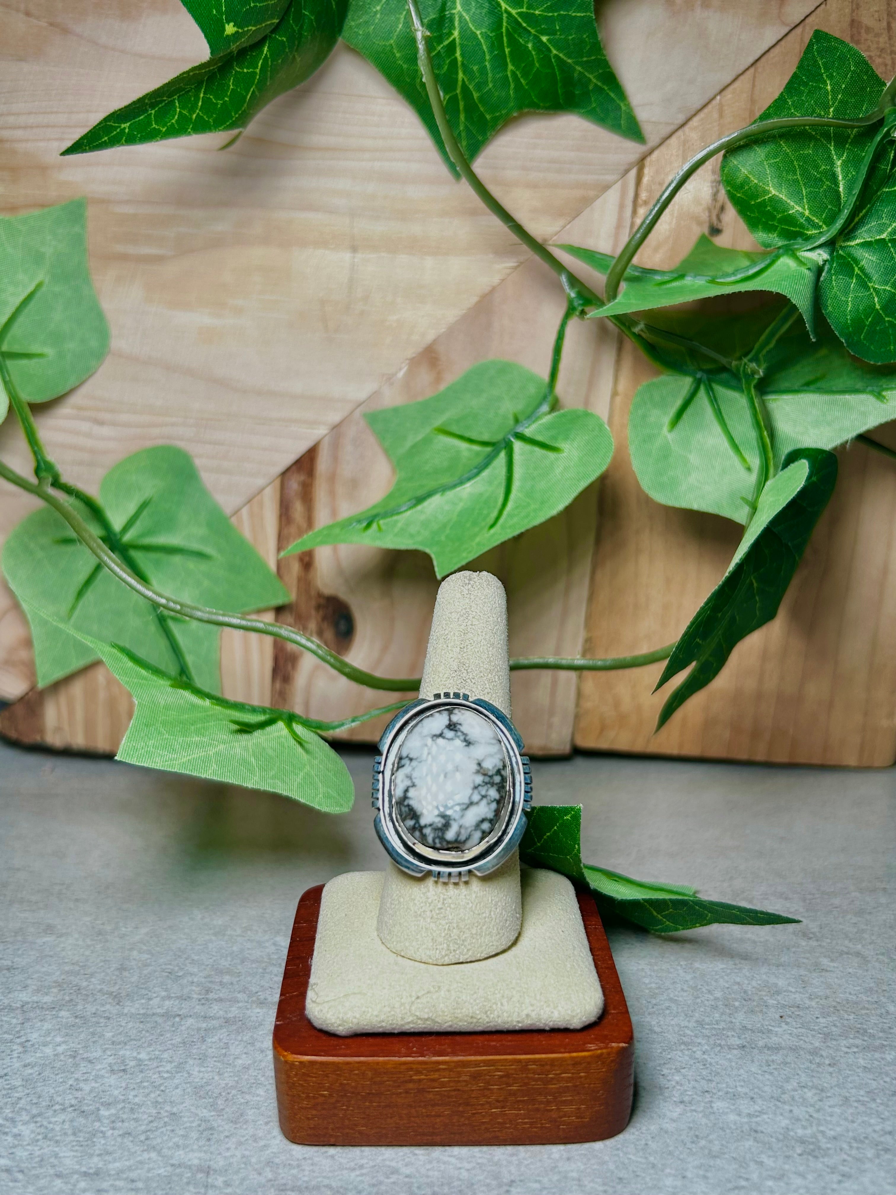 Navajo Made White Buffalo and Sterling Silver Ring Size 9