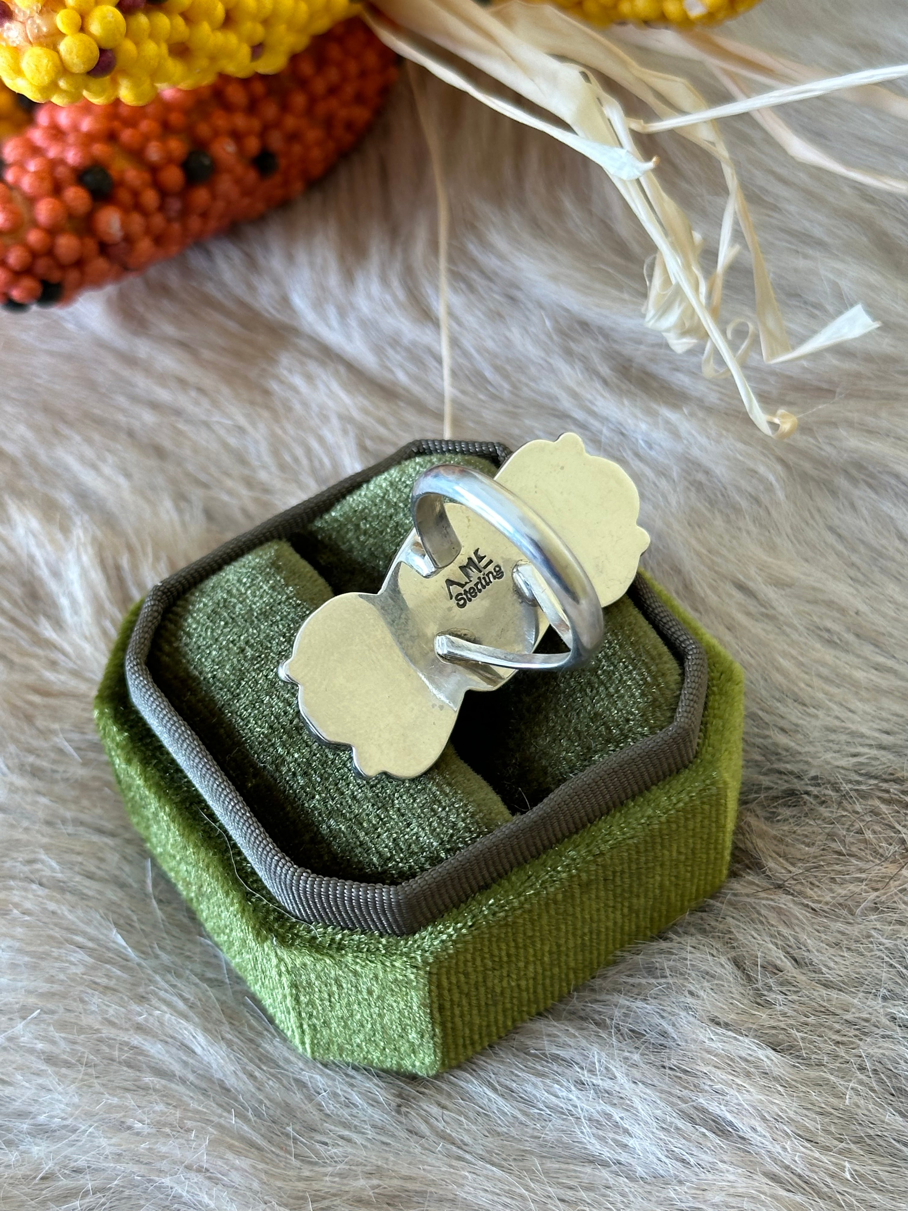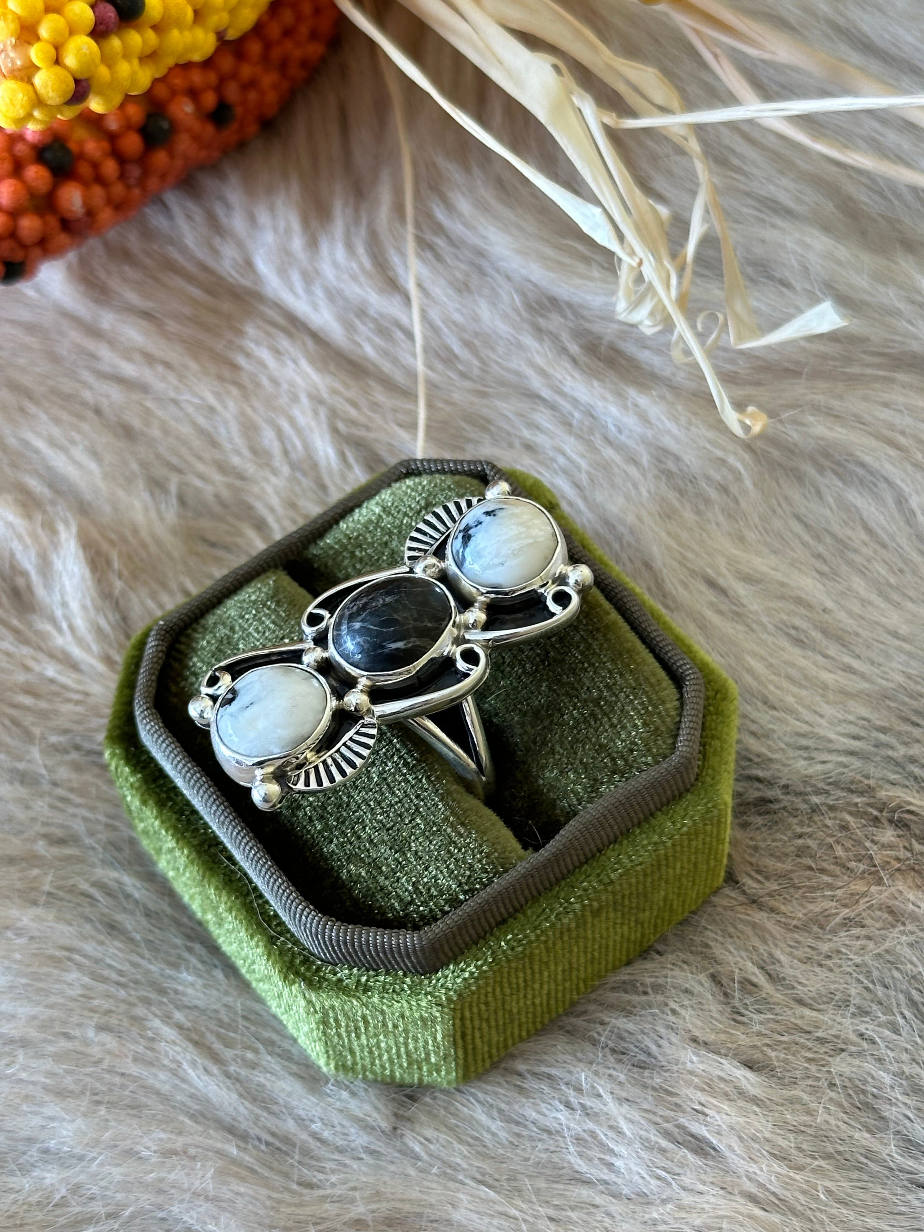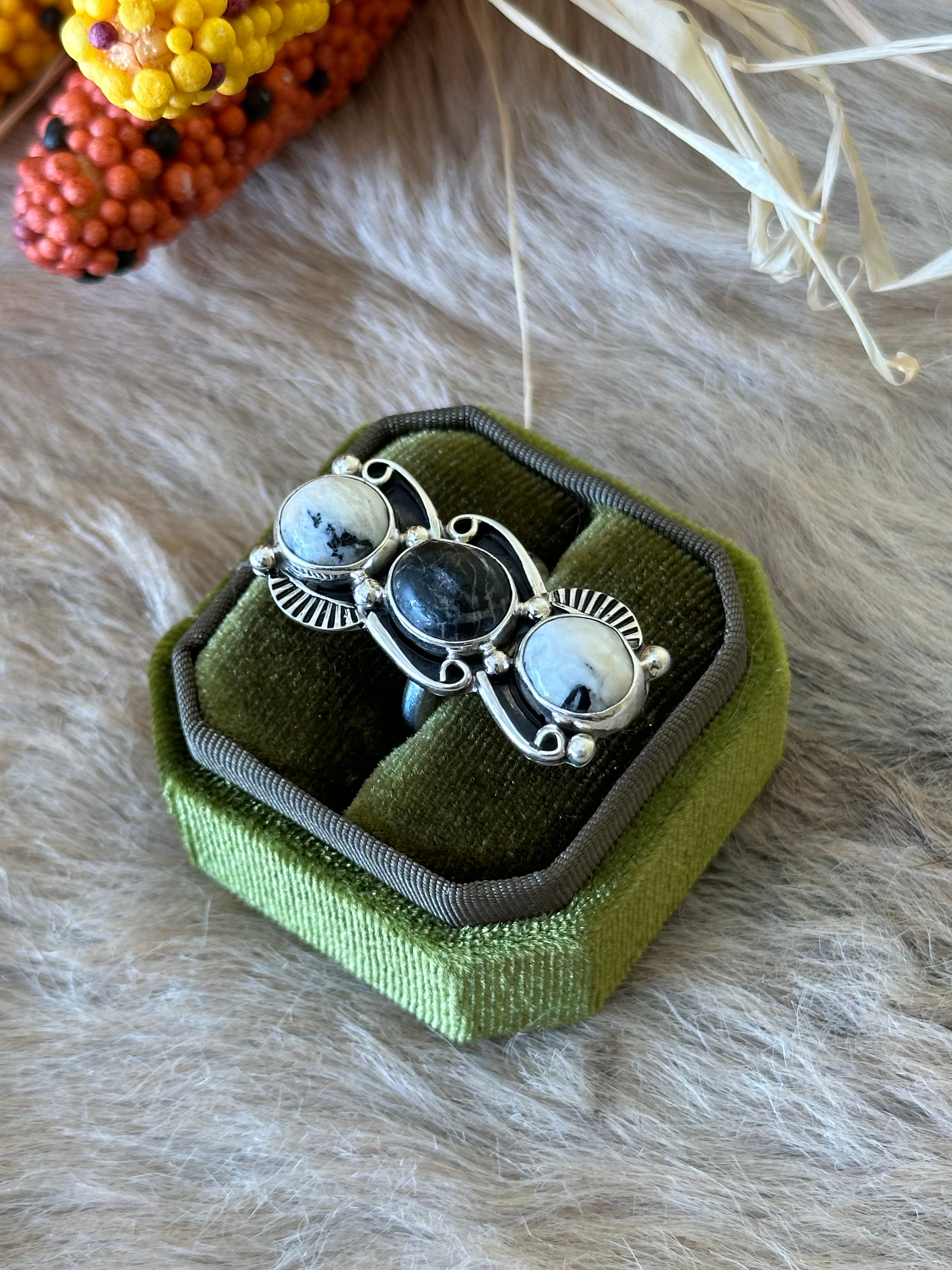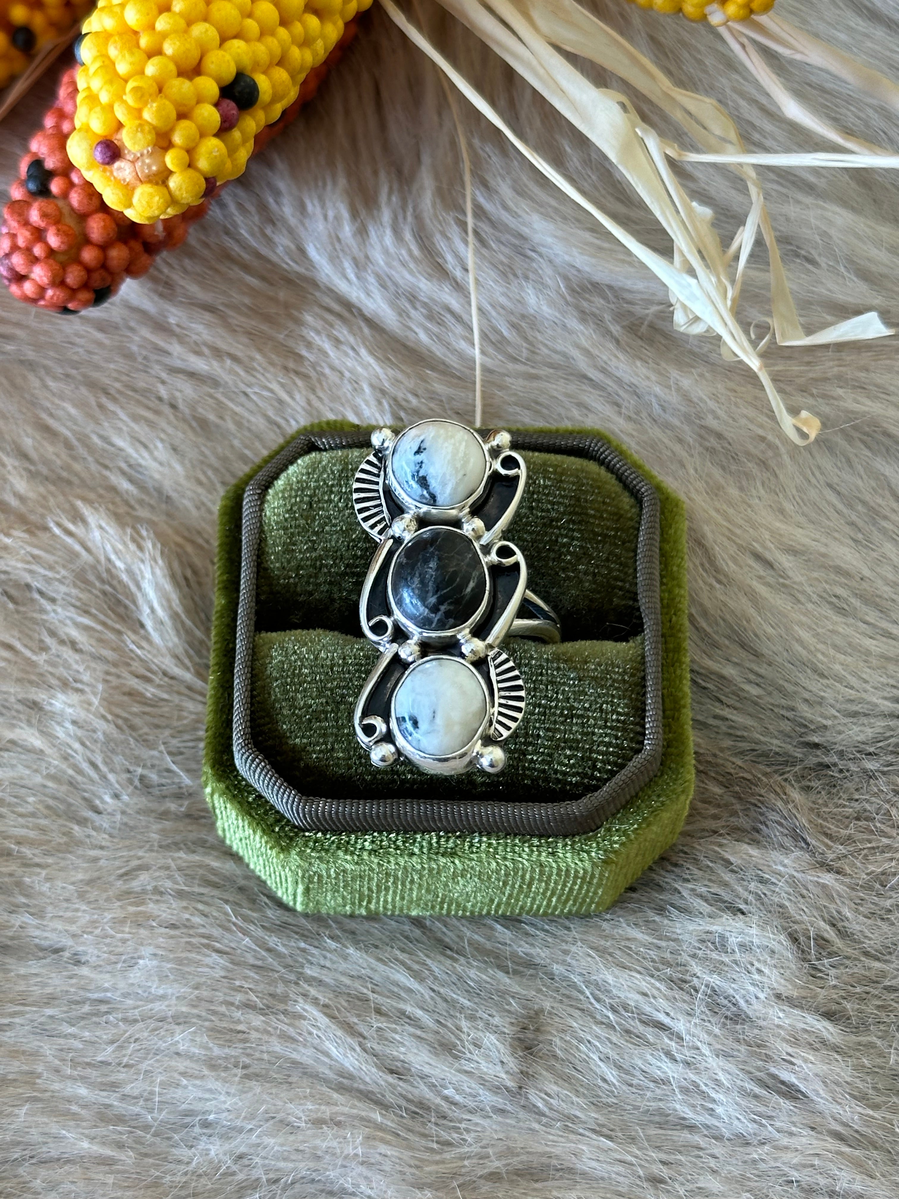 Navajo Made White Buffalo & Sterling Silver Adjustable Ring