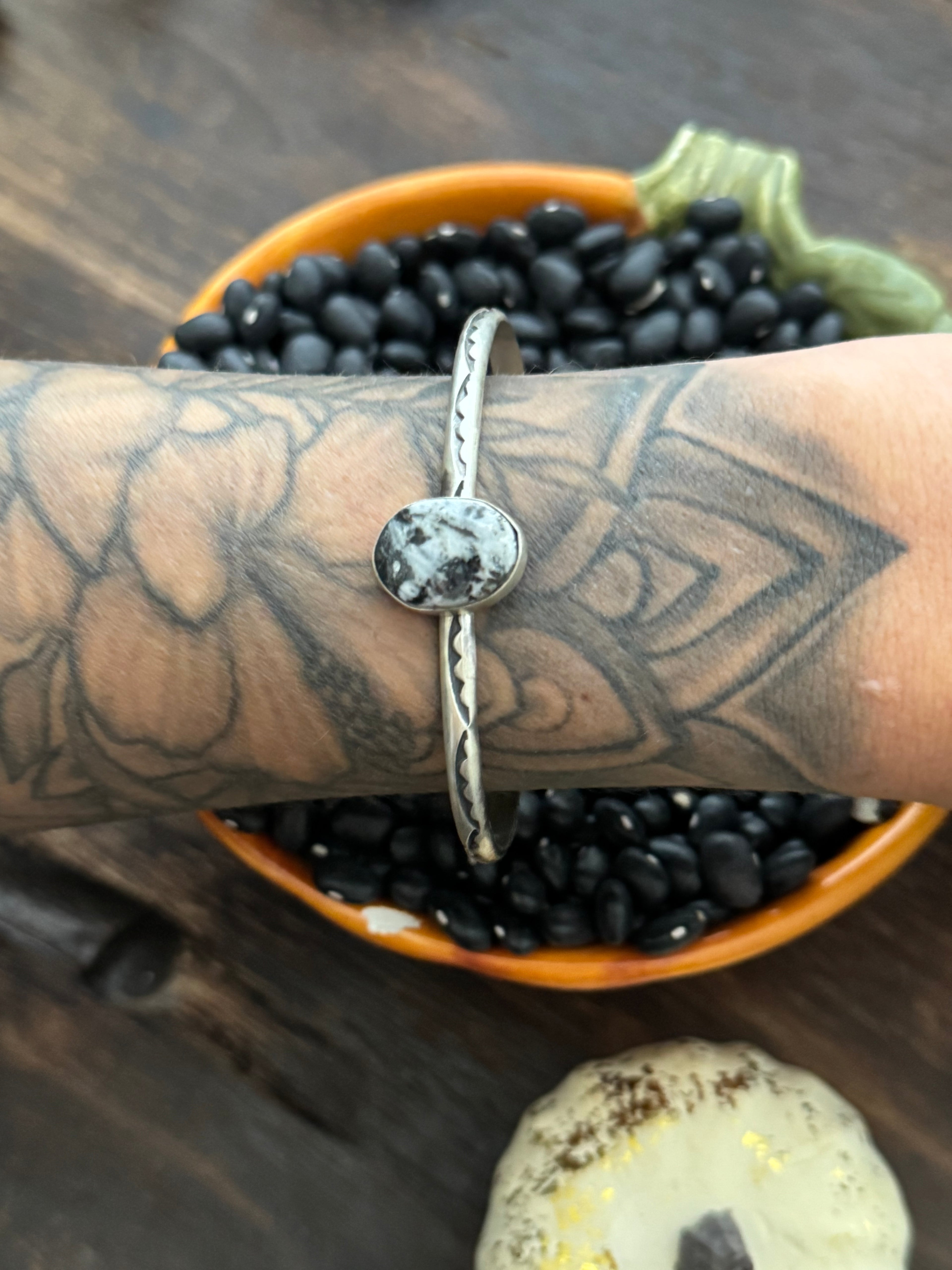 Navajo Made White Buffalo & Sterling Silver Cuff Bracelet