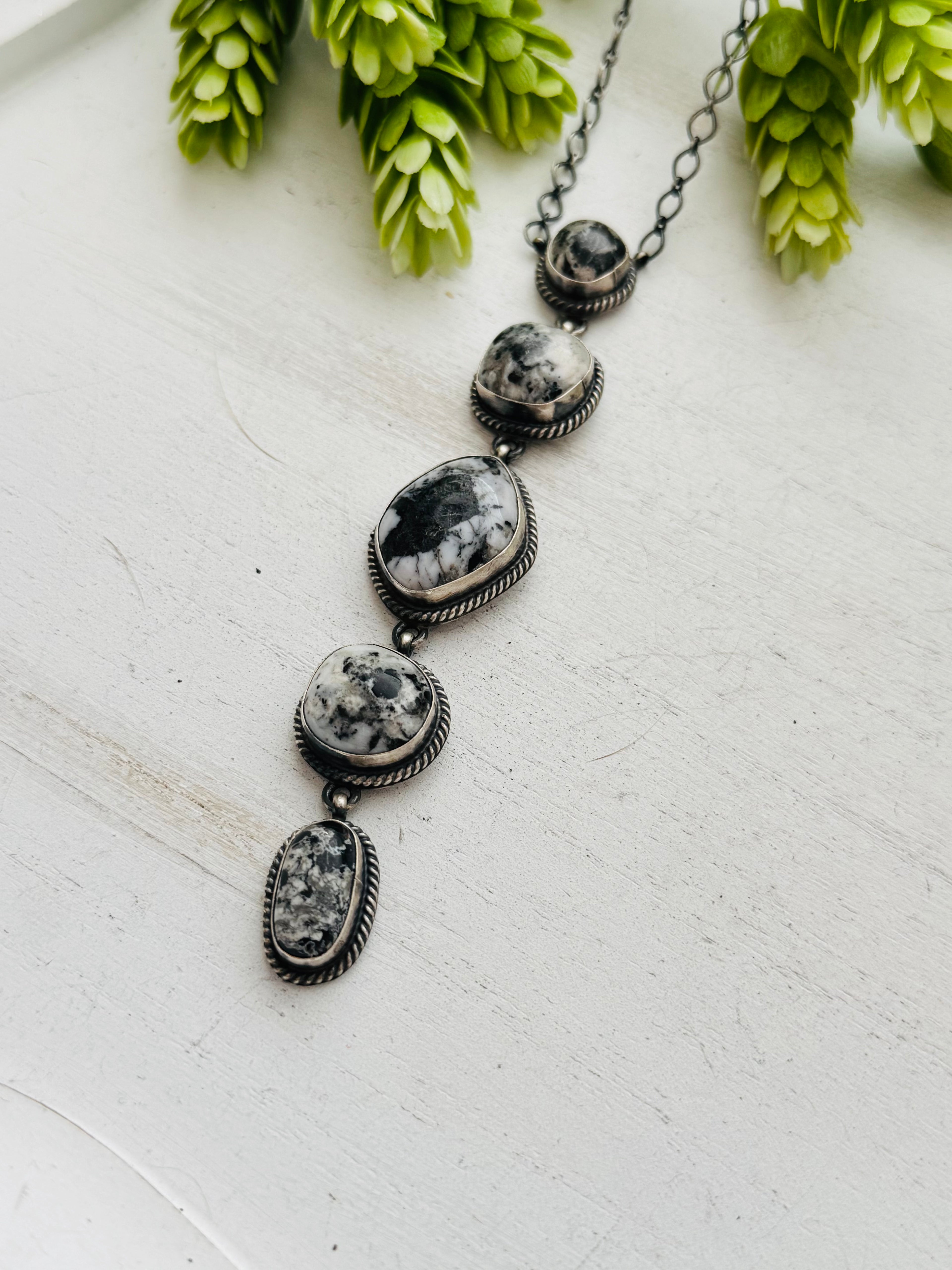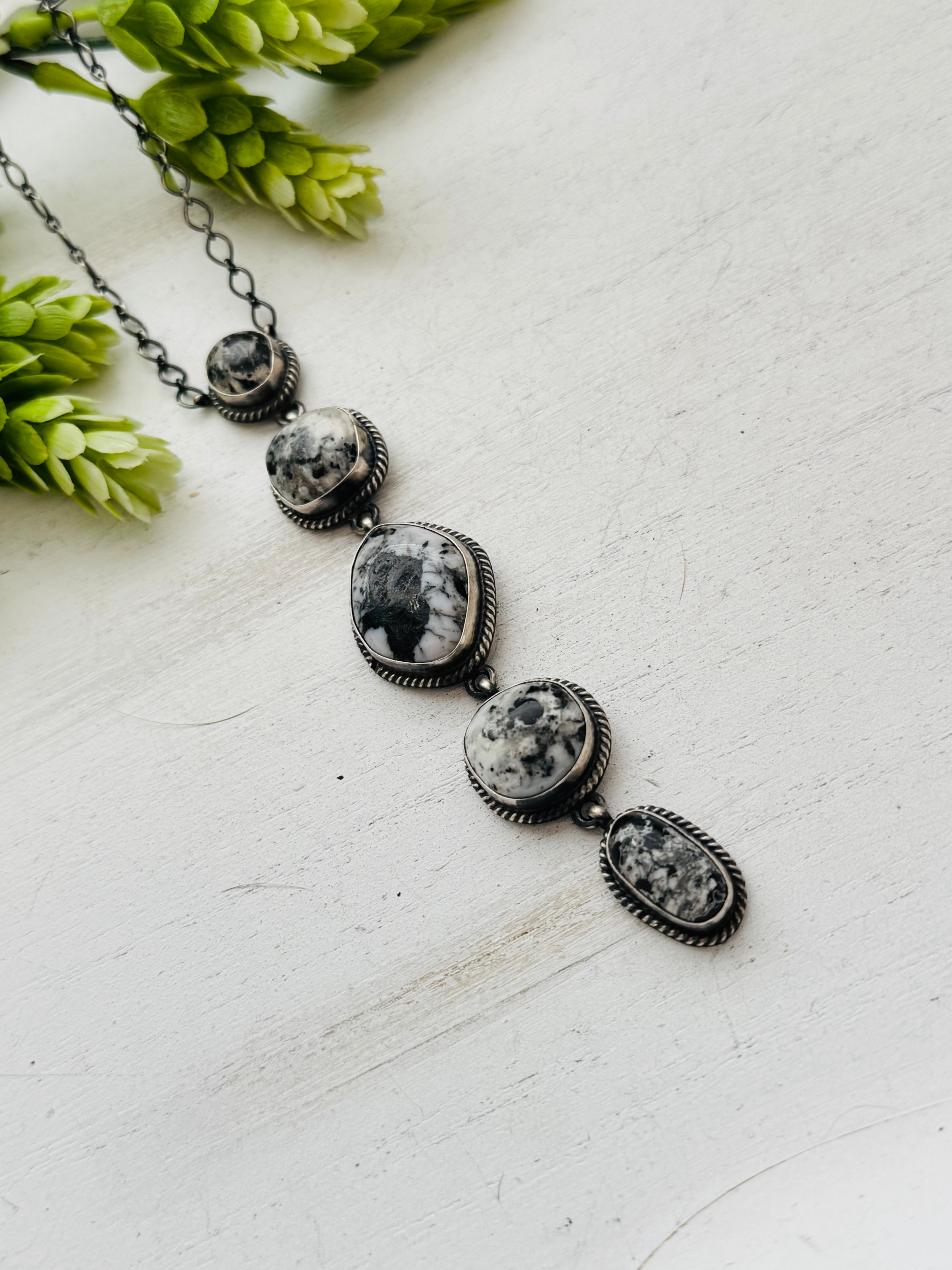 Navajo Made White Buffalo & Sterling Silver Necklace