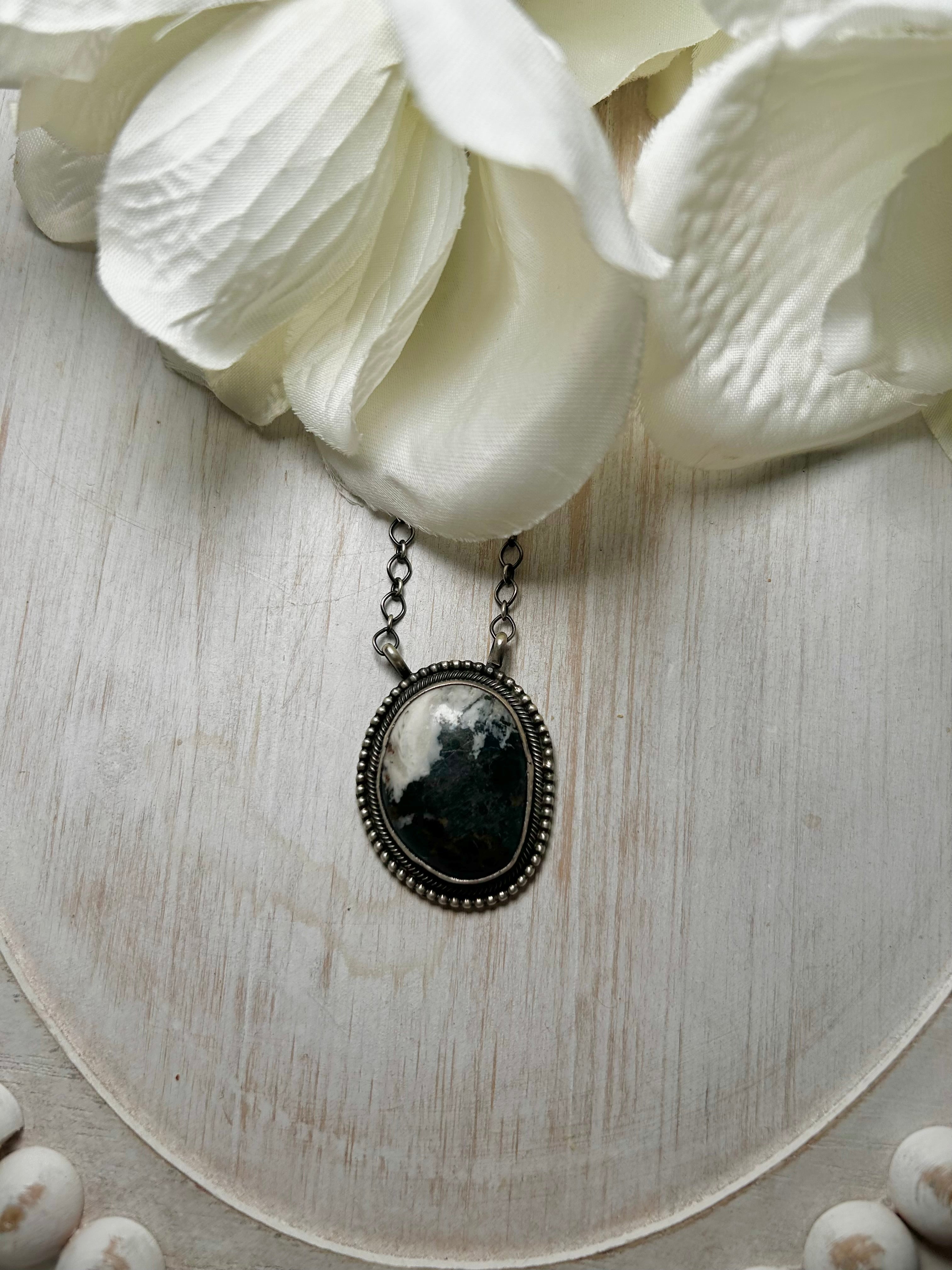 Navajo Made White Buffalo & Sterling Silver Necklace