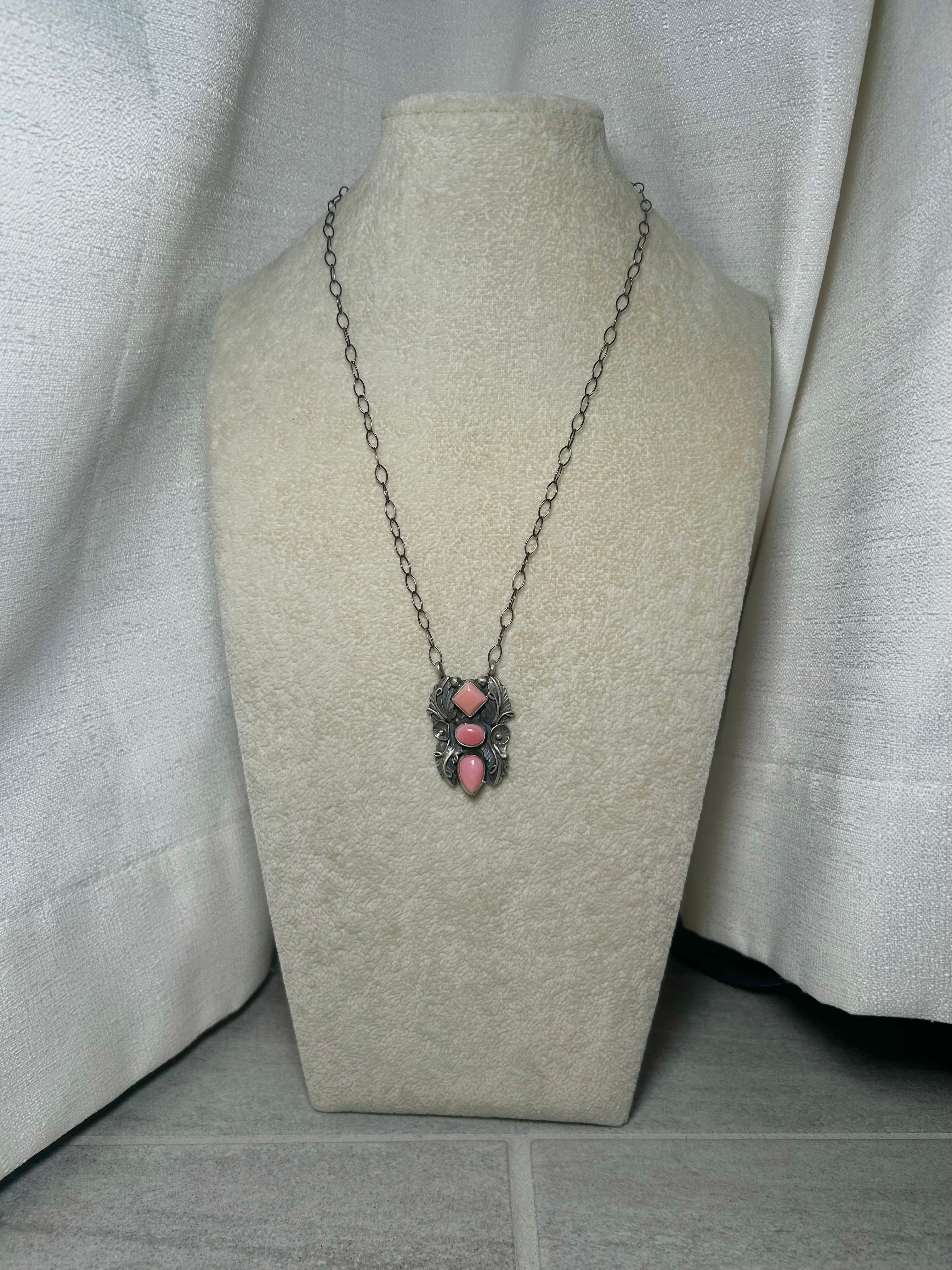 Navajo Made Pink Conch & Sterling Silver Necklace
