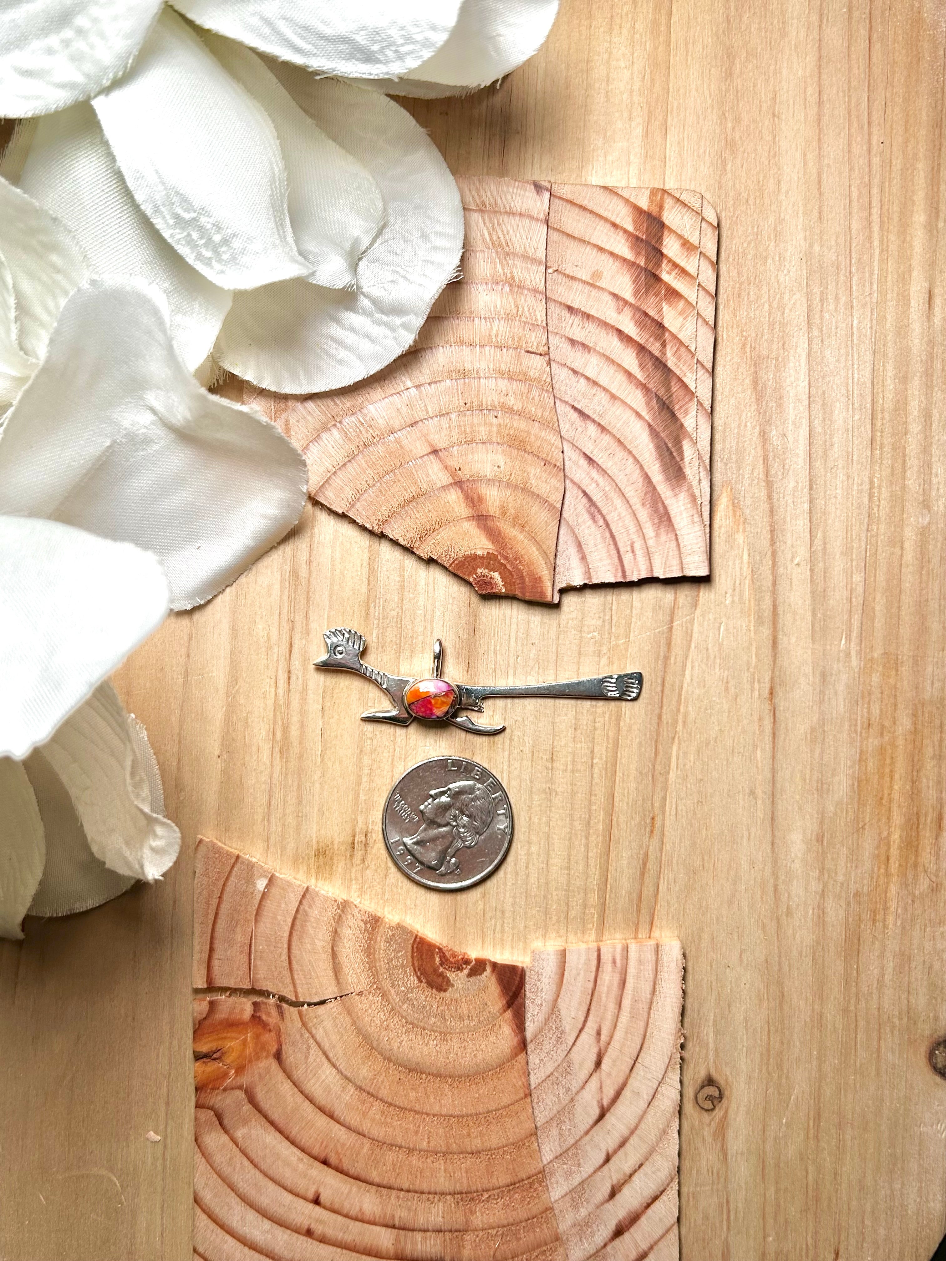 Navajo Made Mohave Turquoise & Sterling Silver Pendant. It measures 2 3/8 inches long and 3/4 of an inch wide. Pendant Only! Signed by the artist and stamped sterling silver.