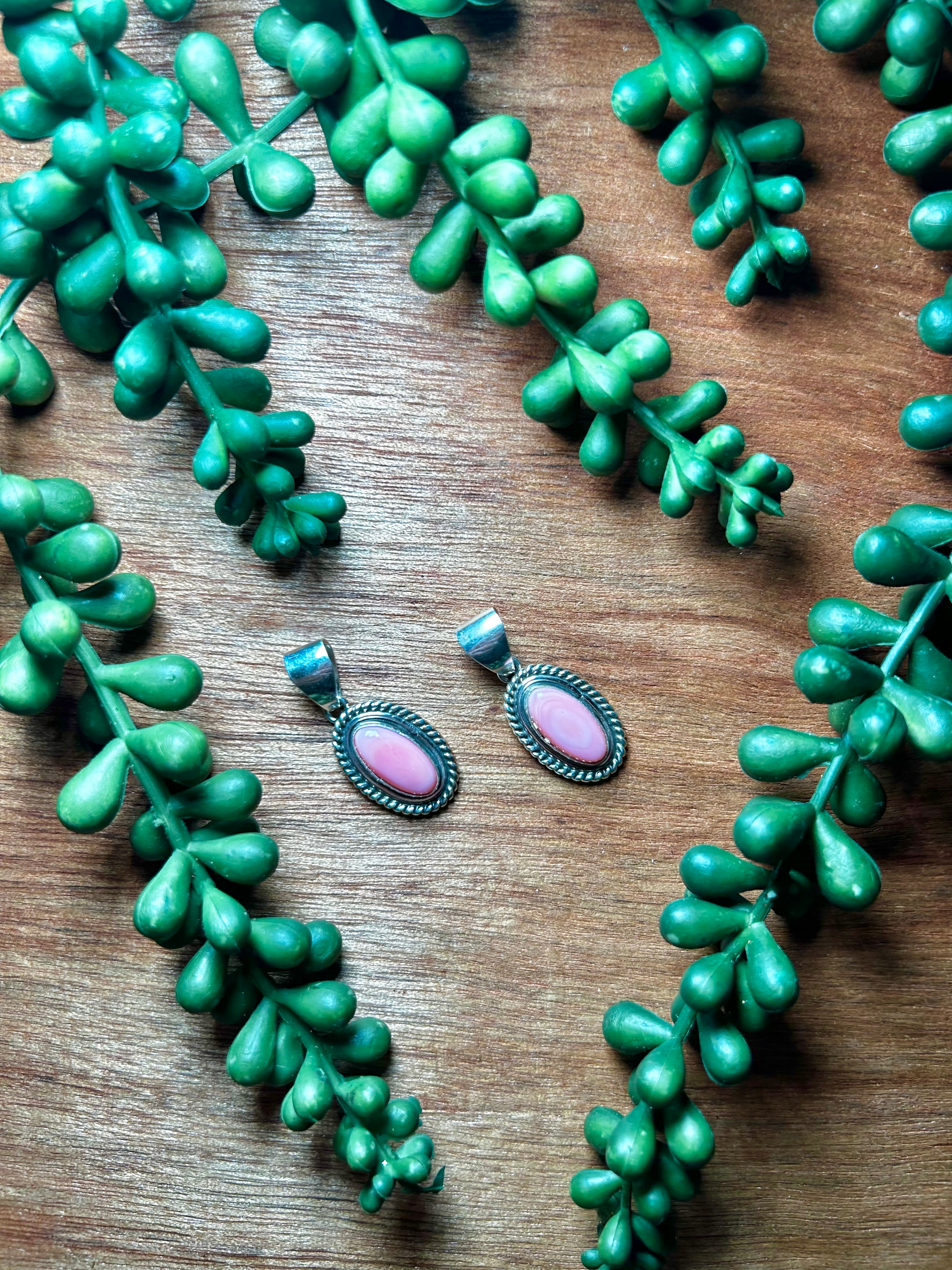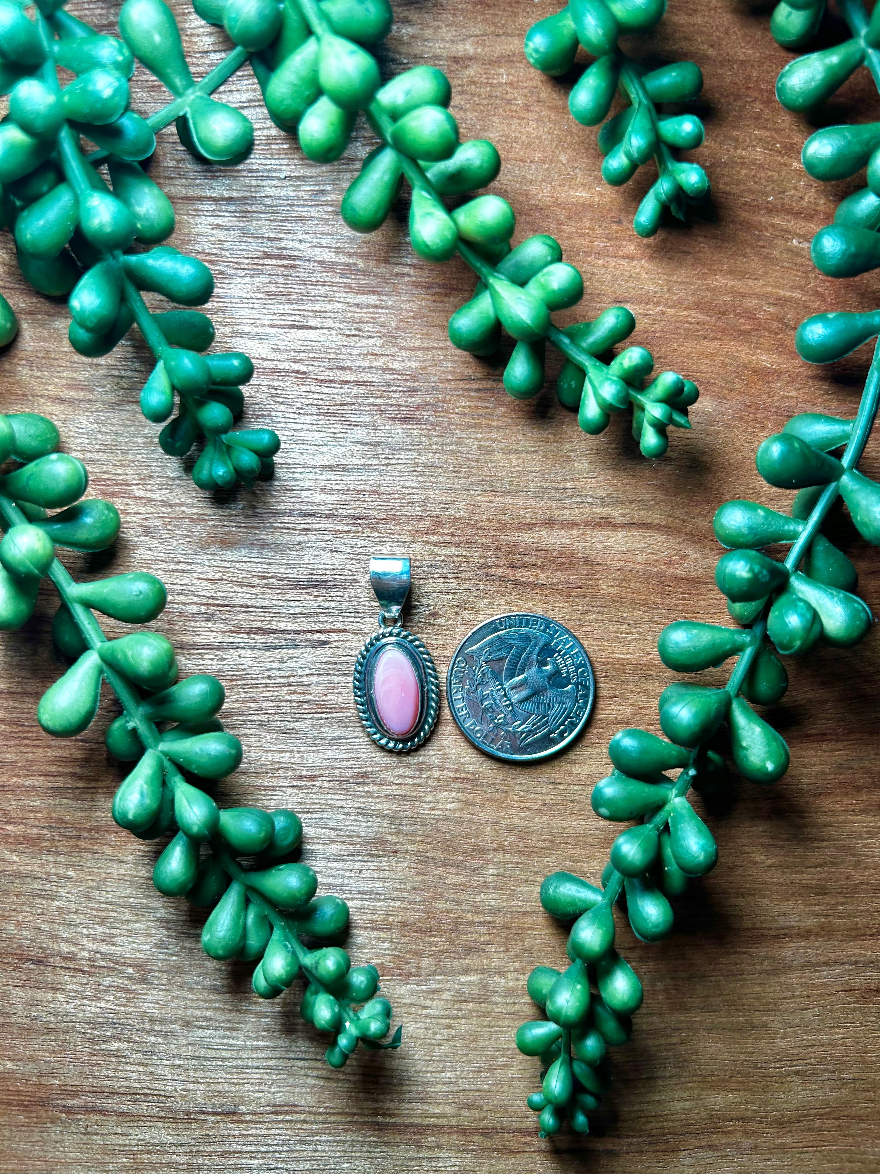 Navajo Made Pink Conch & Sterling Silver Pendant