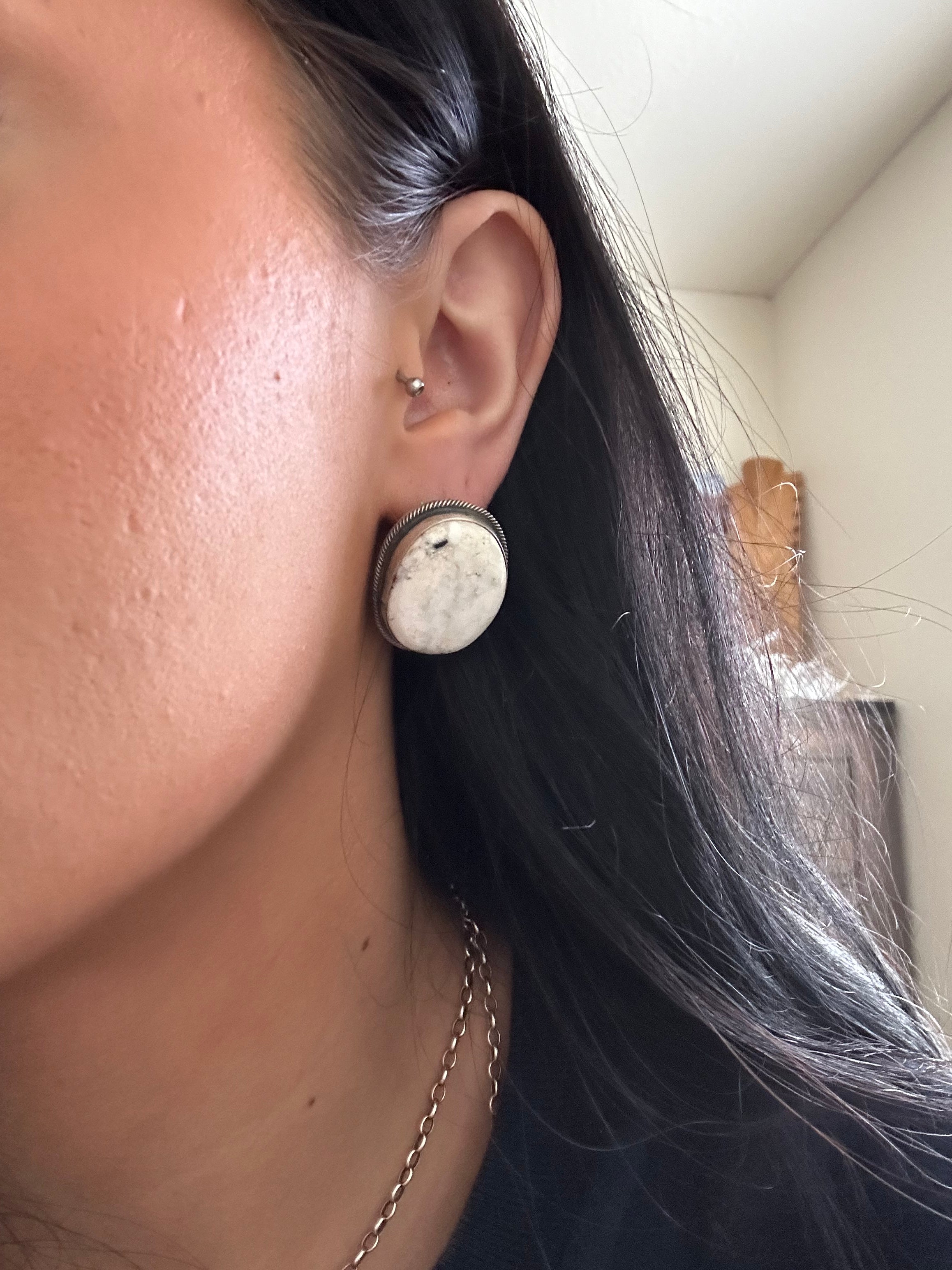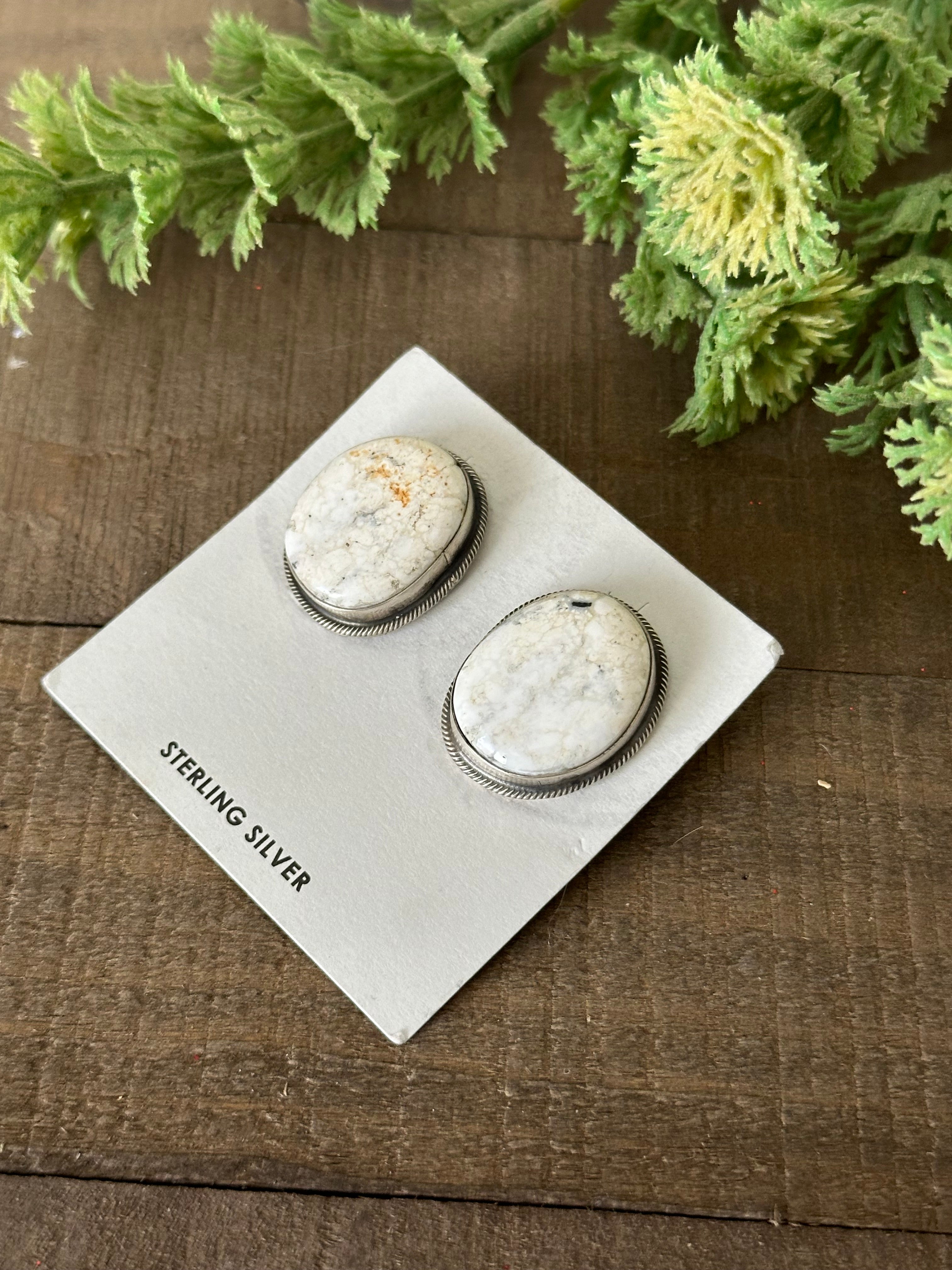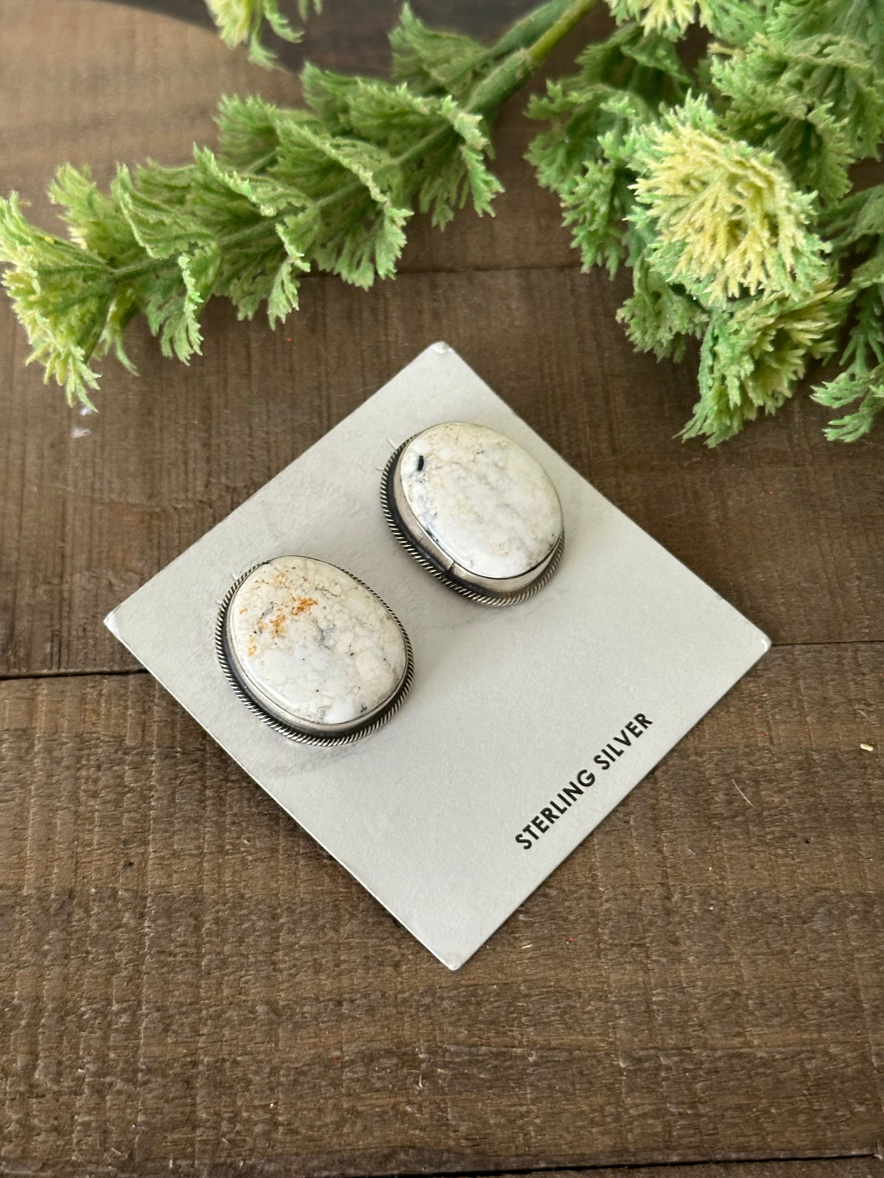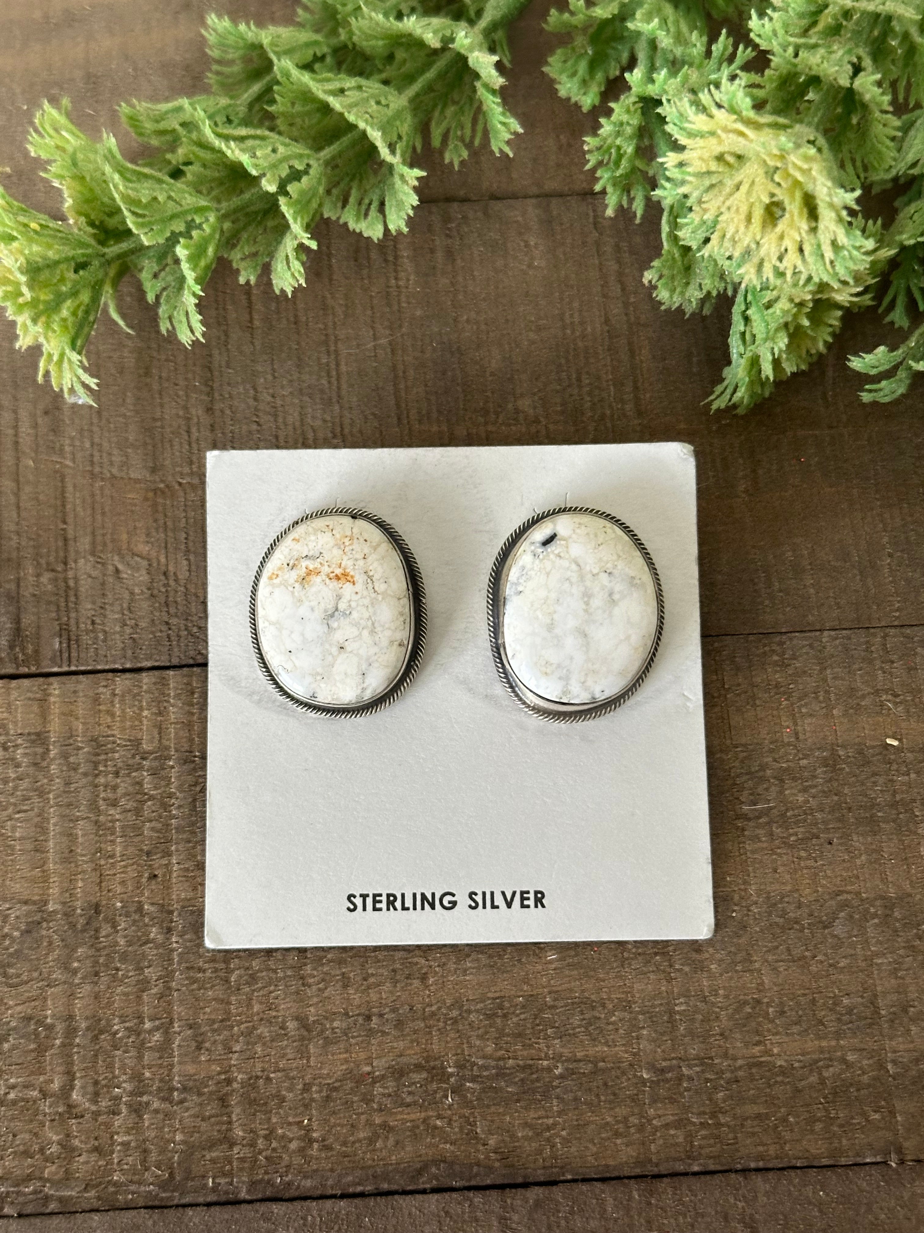 Navajo Made White Buffalo & Sterling Silver Post Earrings