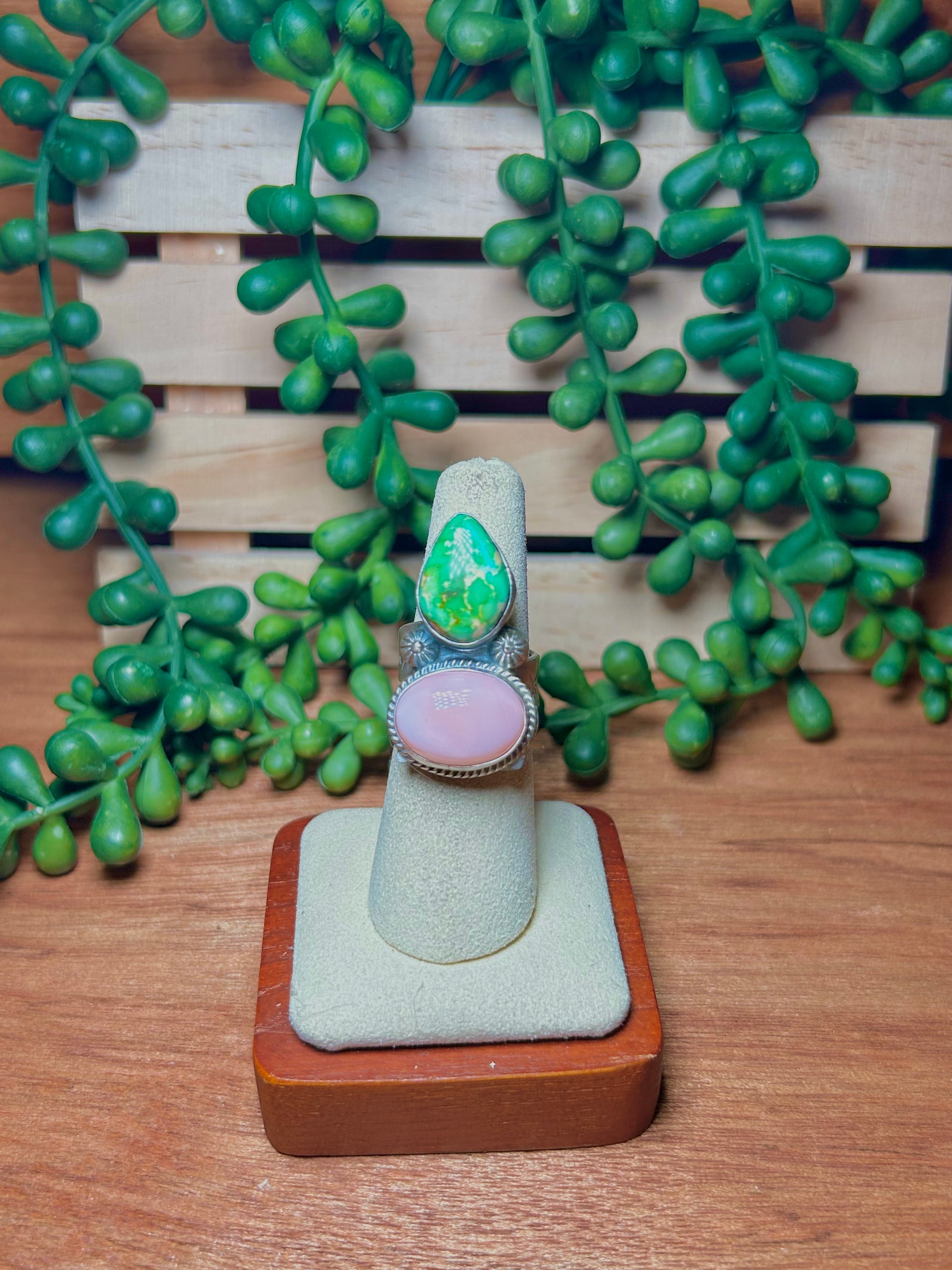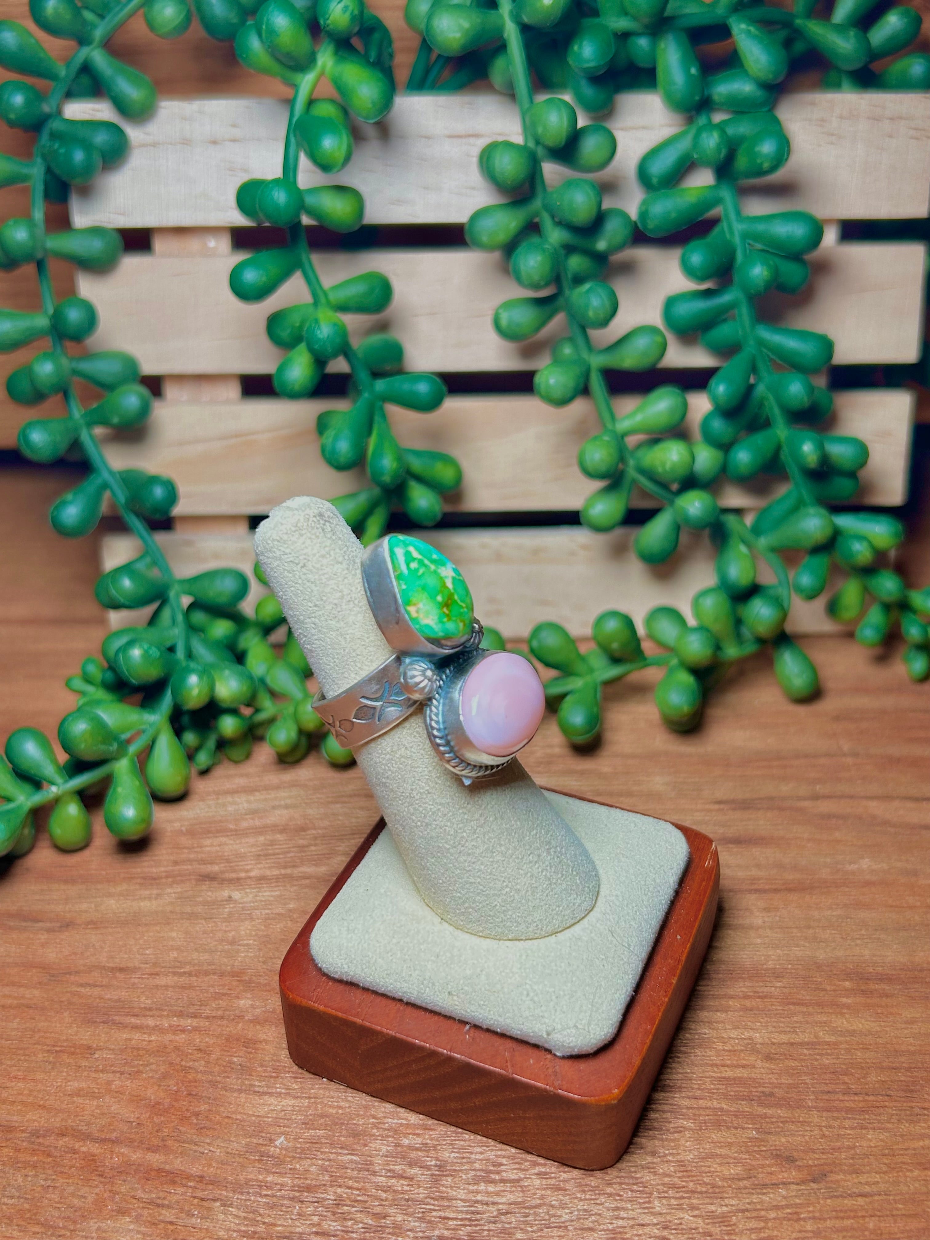 Navajo Made Multi Stone & Sterling Silver Adjustable Ring