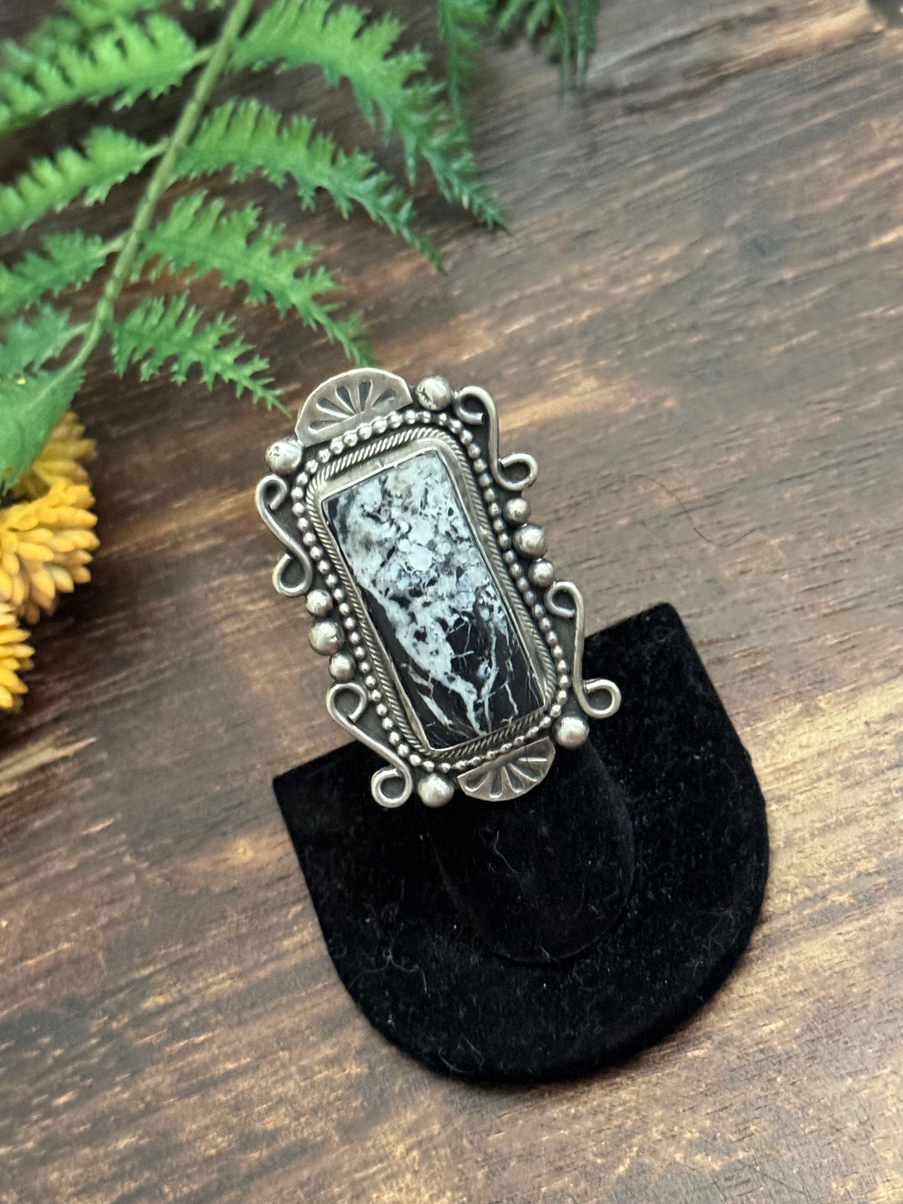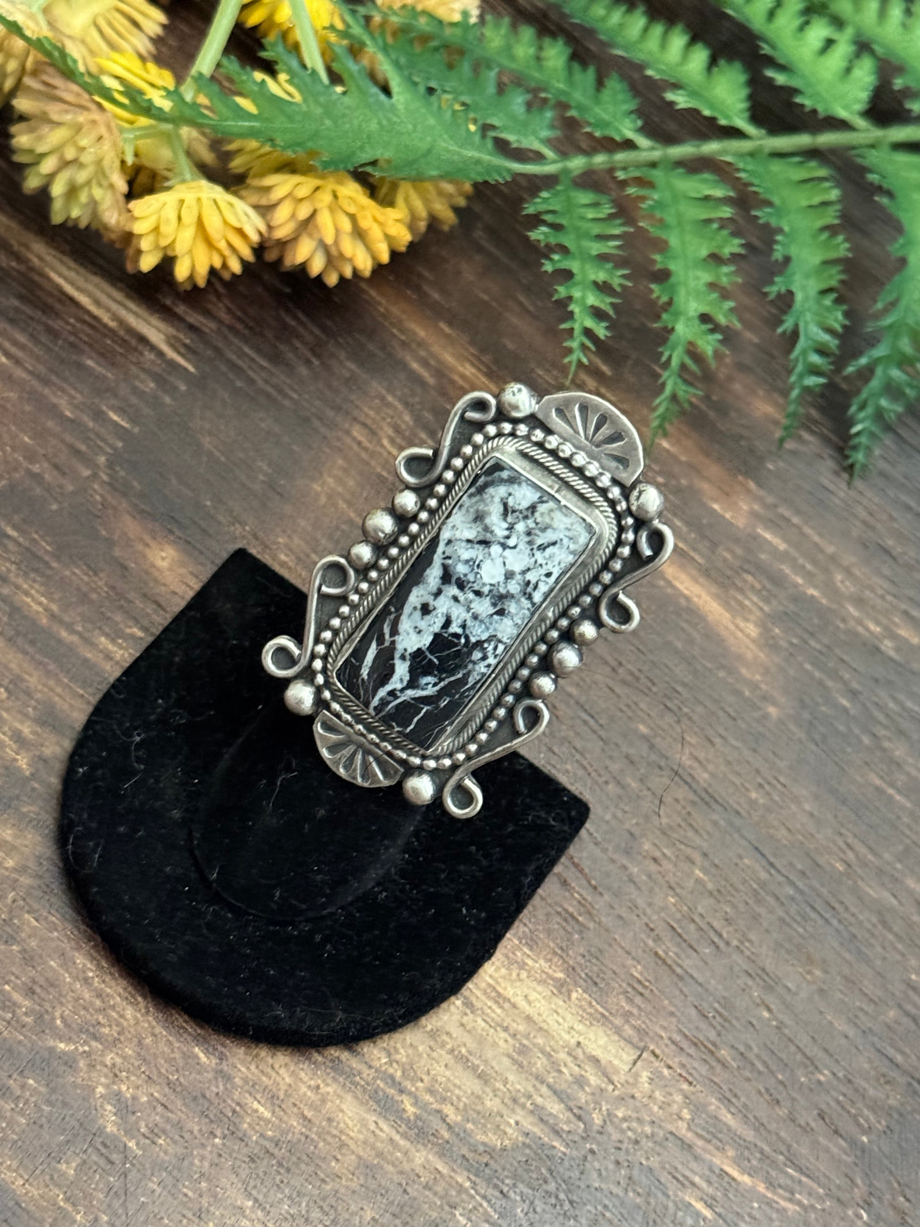 Navajo Made White Buffalo & Sterling Silver Ring Size 5.5