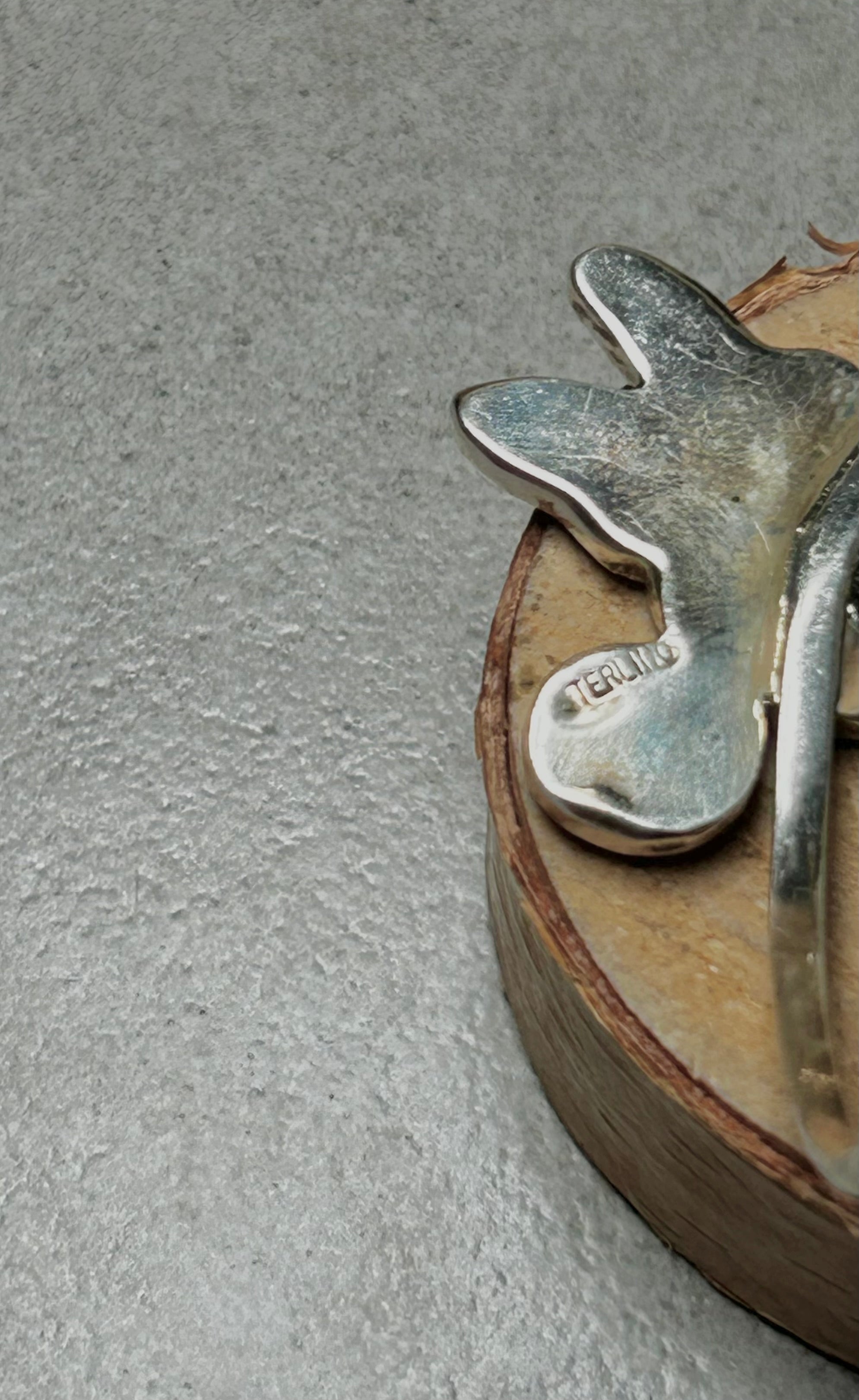 Zuni Multi Stone & Sterling Silver Cuff Bracelet. It measures a 2 inches wide with an inside circumference of 5 3/4 inches and a gap of 1 1/8 inches. Signed by the artist and stamped sterling silver.