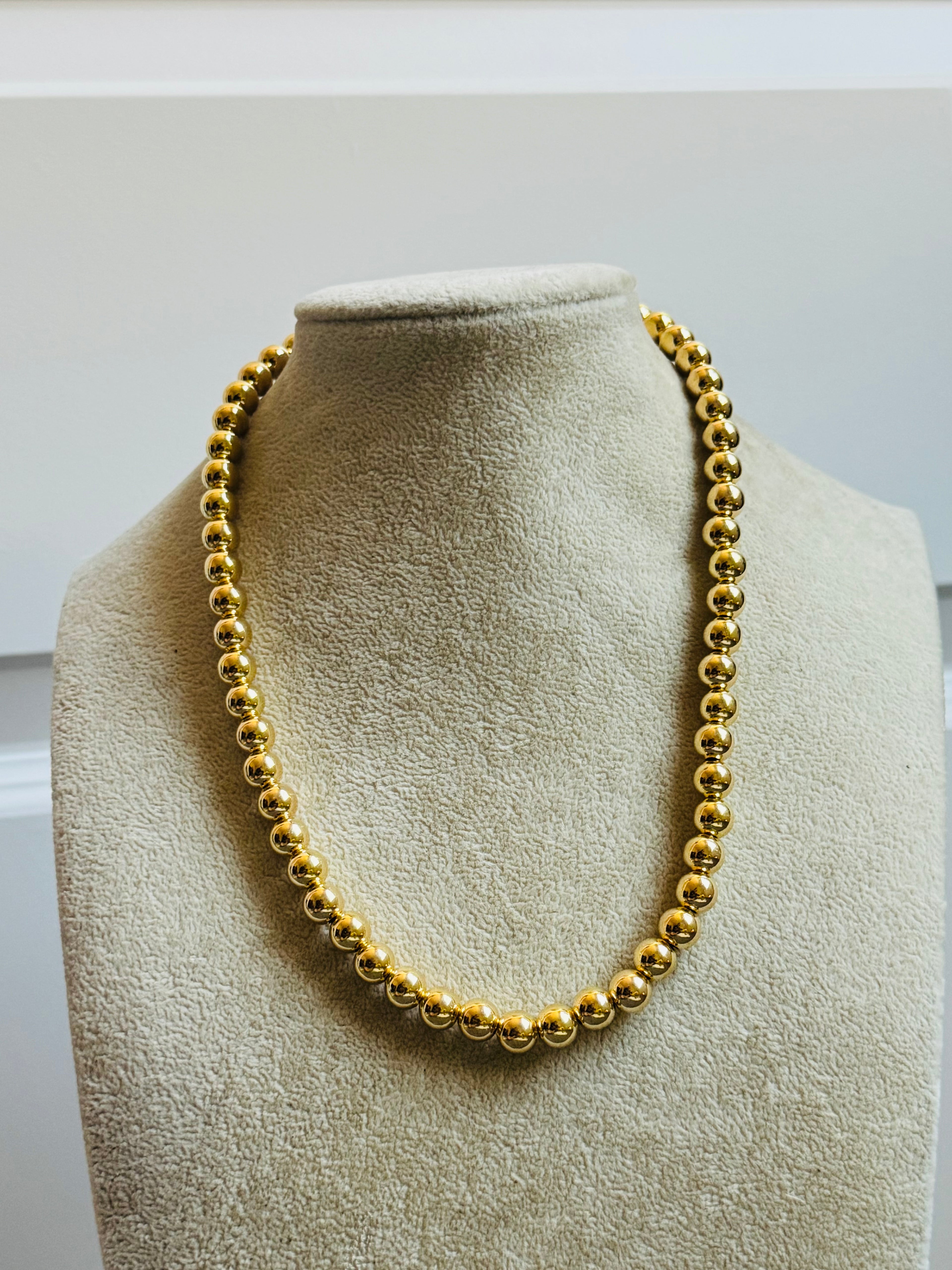Navajo Strung 18 K Gold Plated Sterling Silver Graduated Beaded Pearl Necklace. It measures 18 inches long.