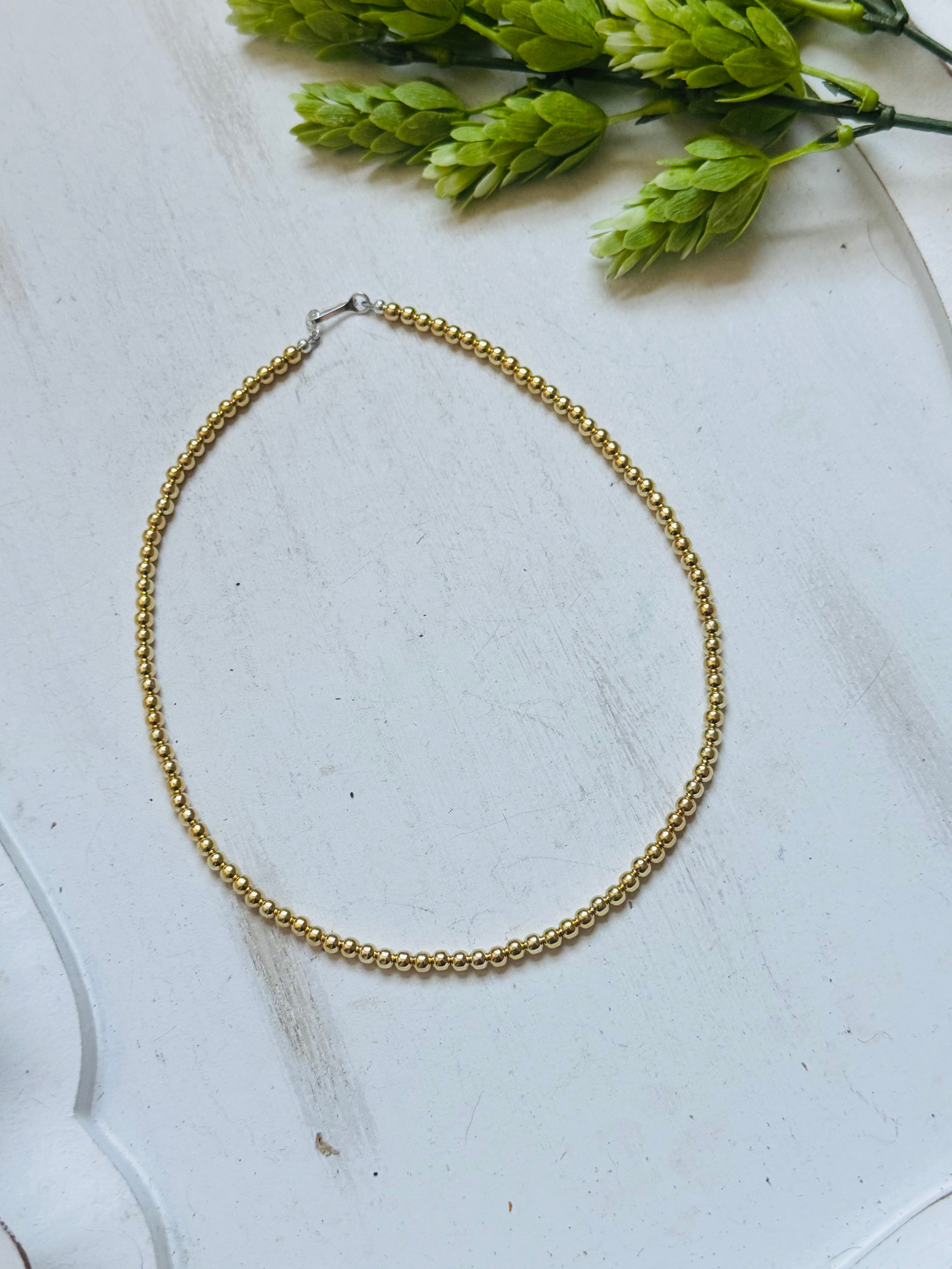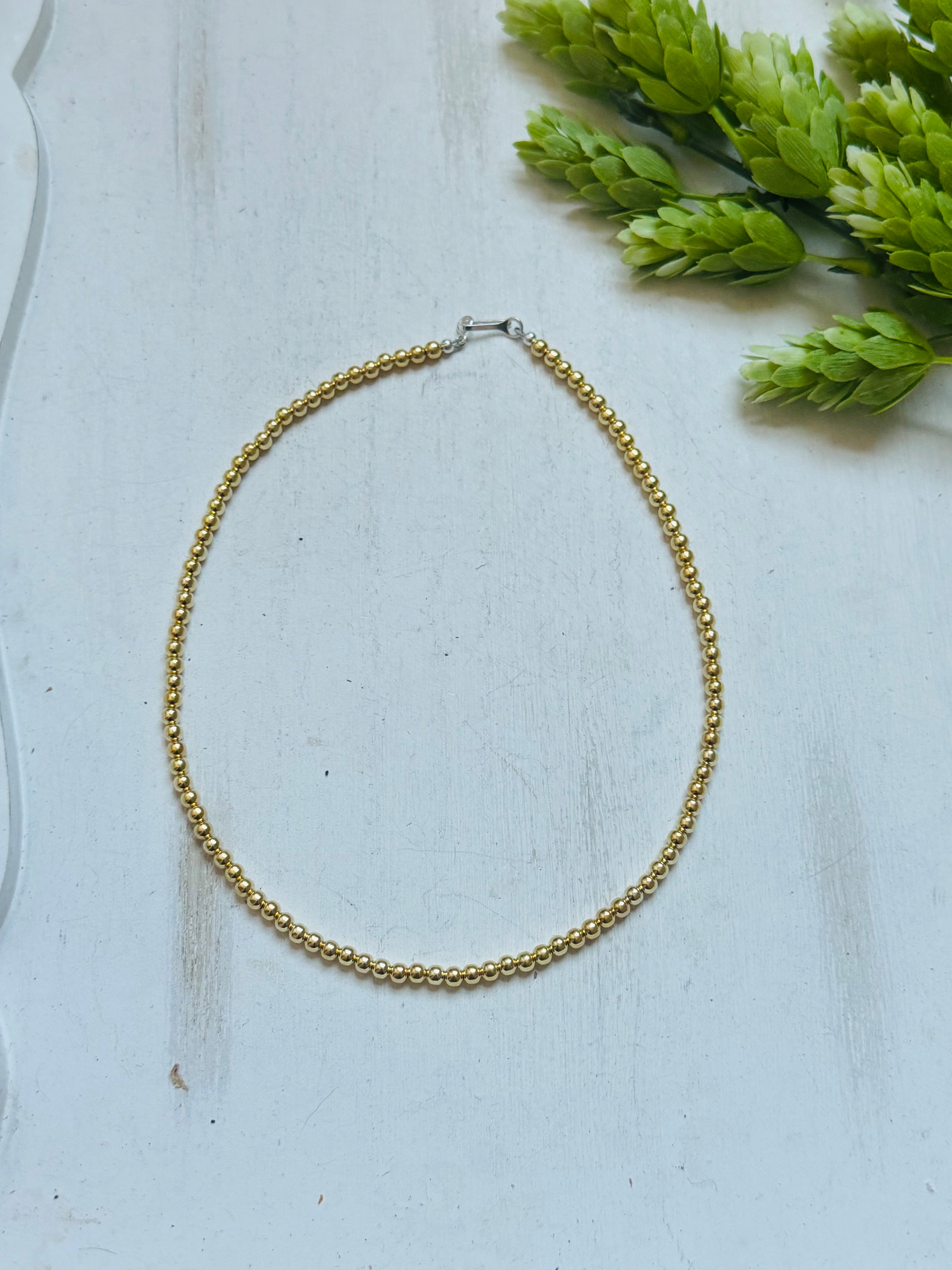 Navajo Strung 18 K Gold Plated Sterling Silver Graduated Beaded Pearl Necklace. It measures 18 inches long.