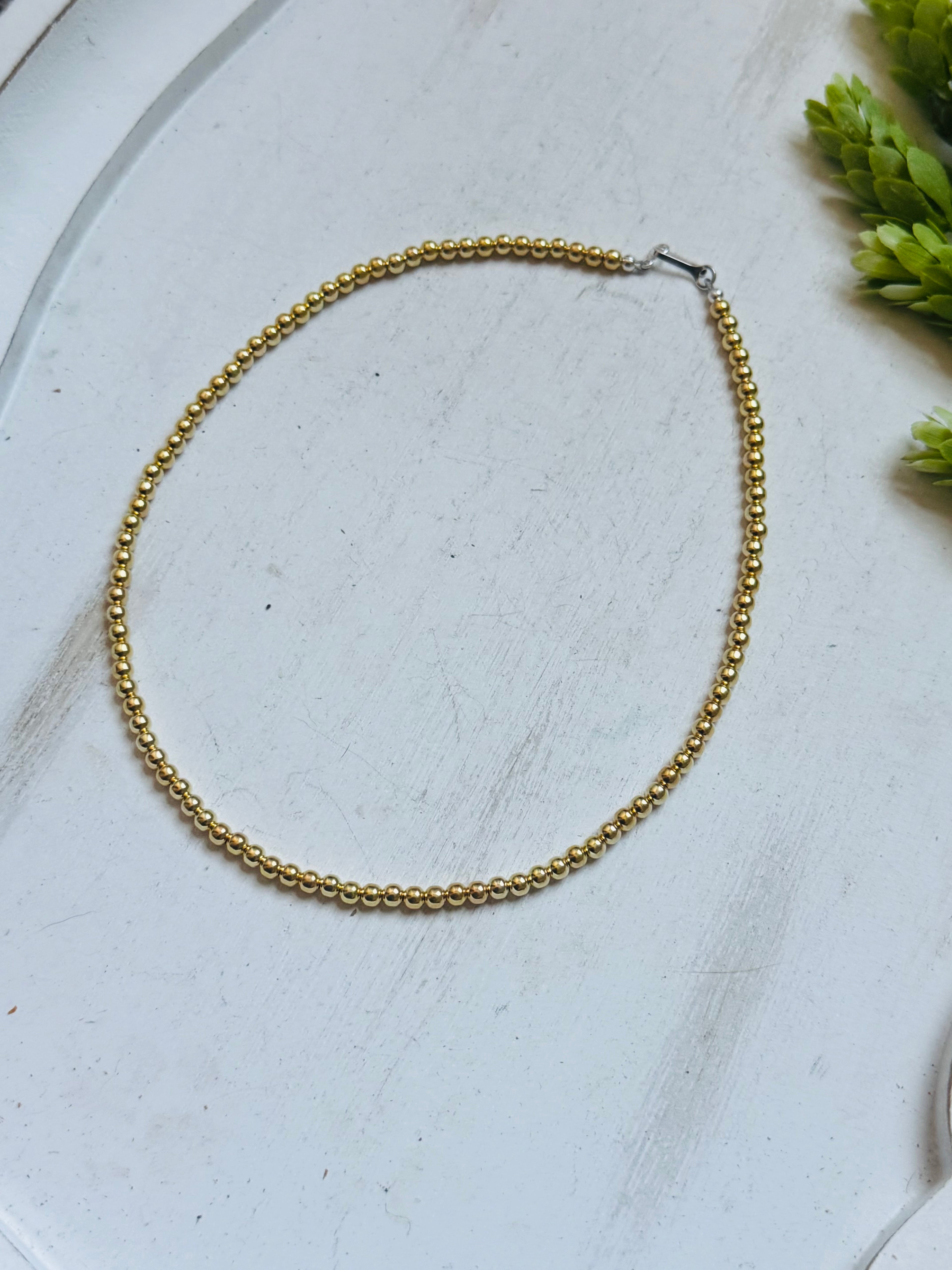 Navajo Strung 18 K Gold Plated Sterling Silver Graduated Beaded Pearl Necklace