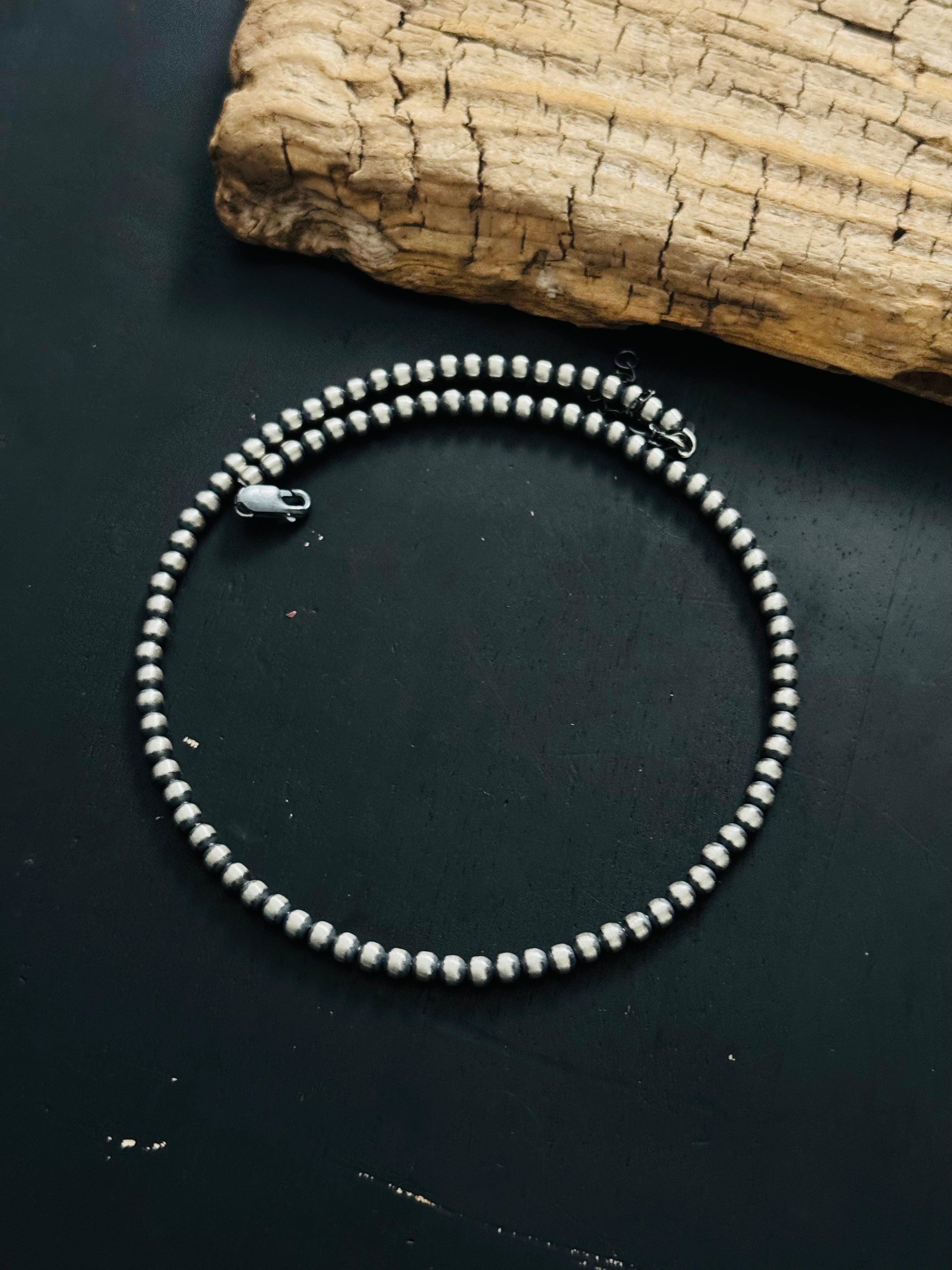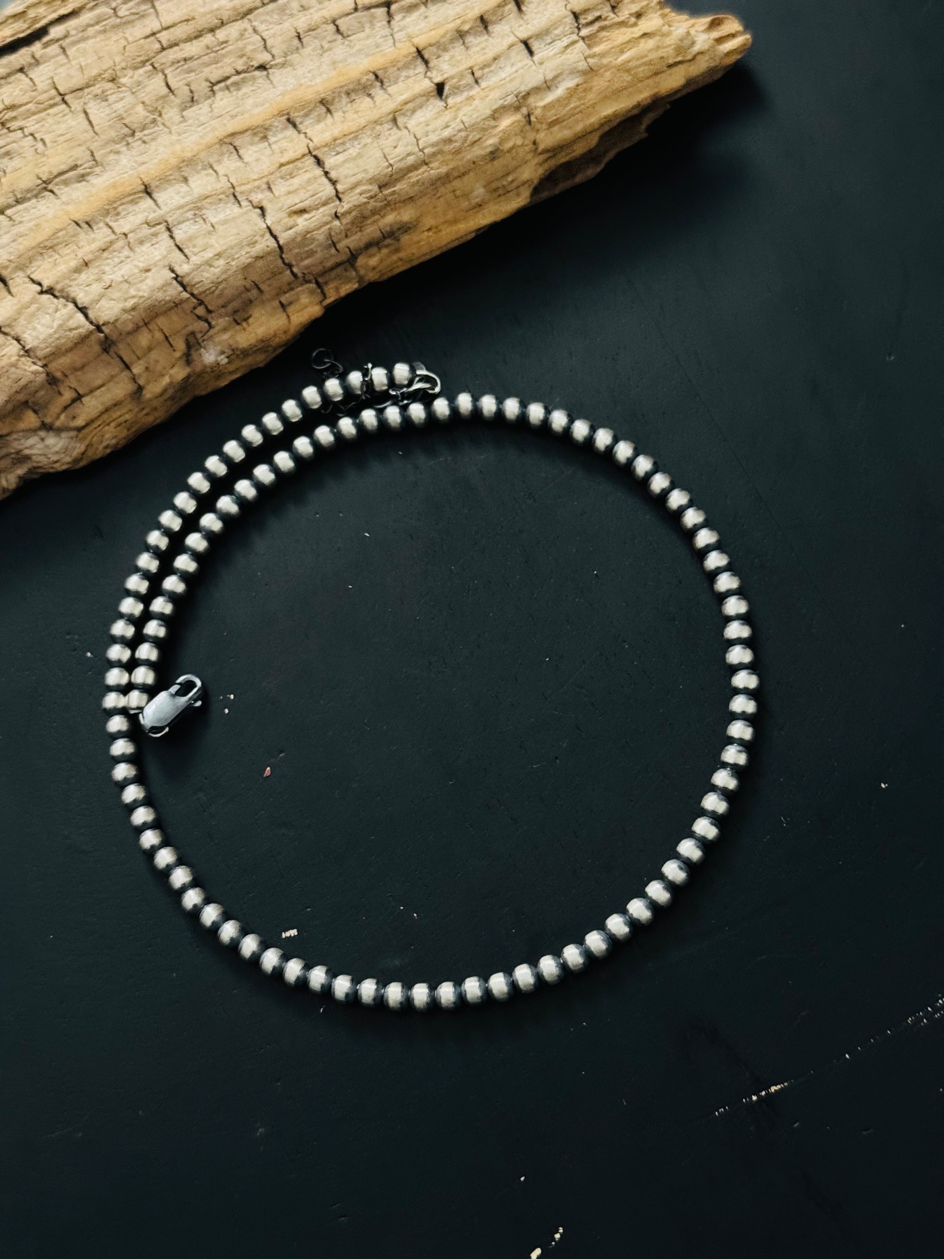 Navajo Strung 4 MM Sterling Silver Pearls Beaded Memory Wire Necklace