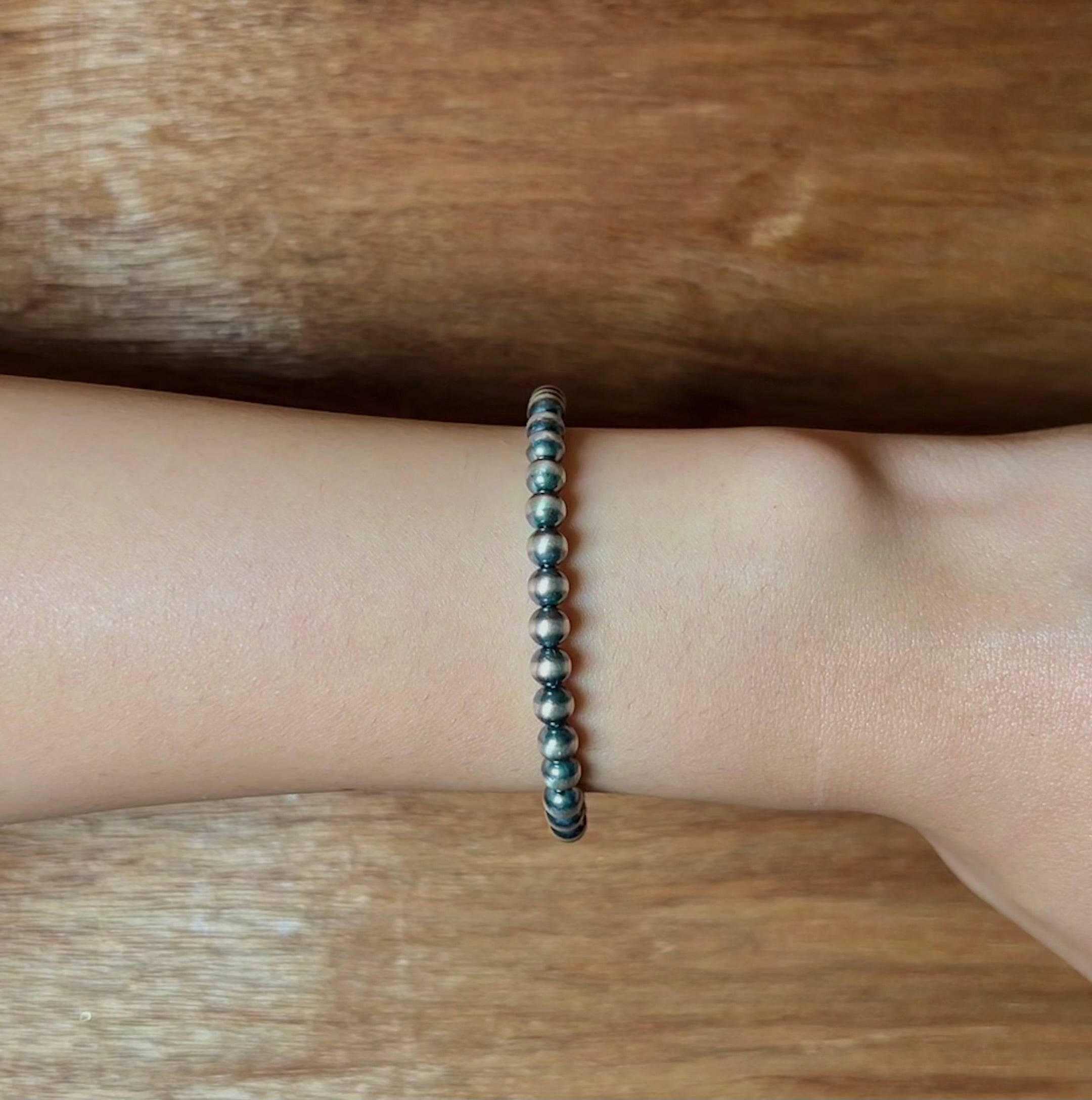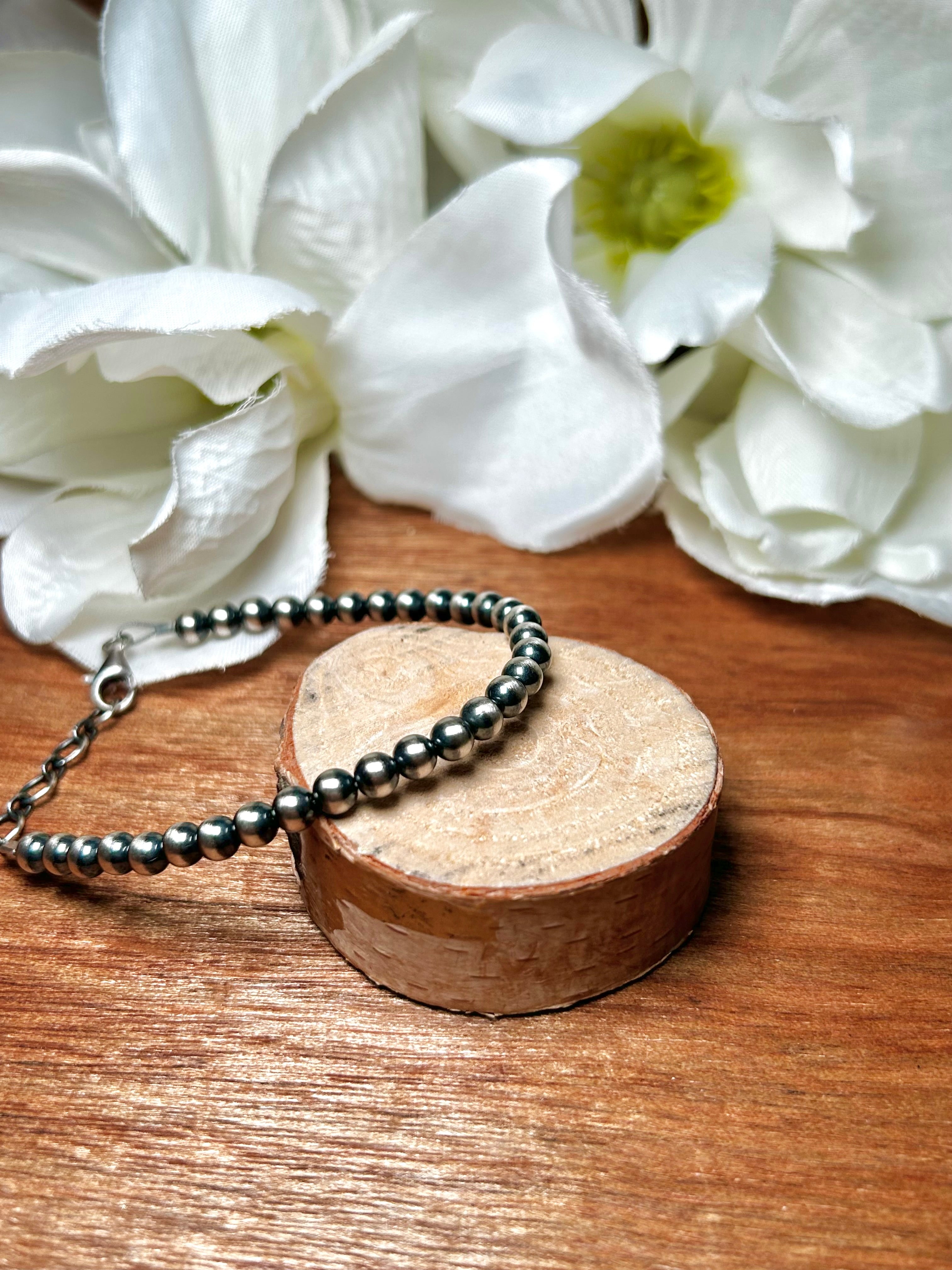 Navajo Strung 5 MM Sterling Silver. It measures 8 inches.
