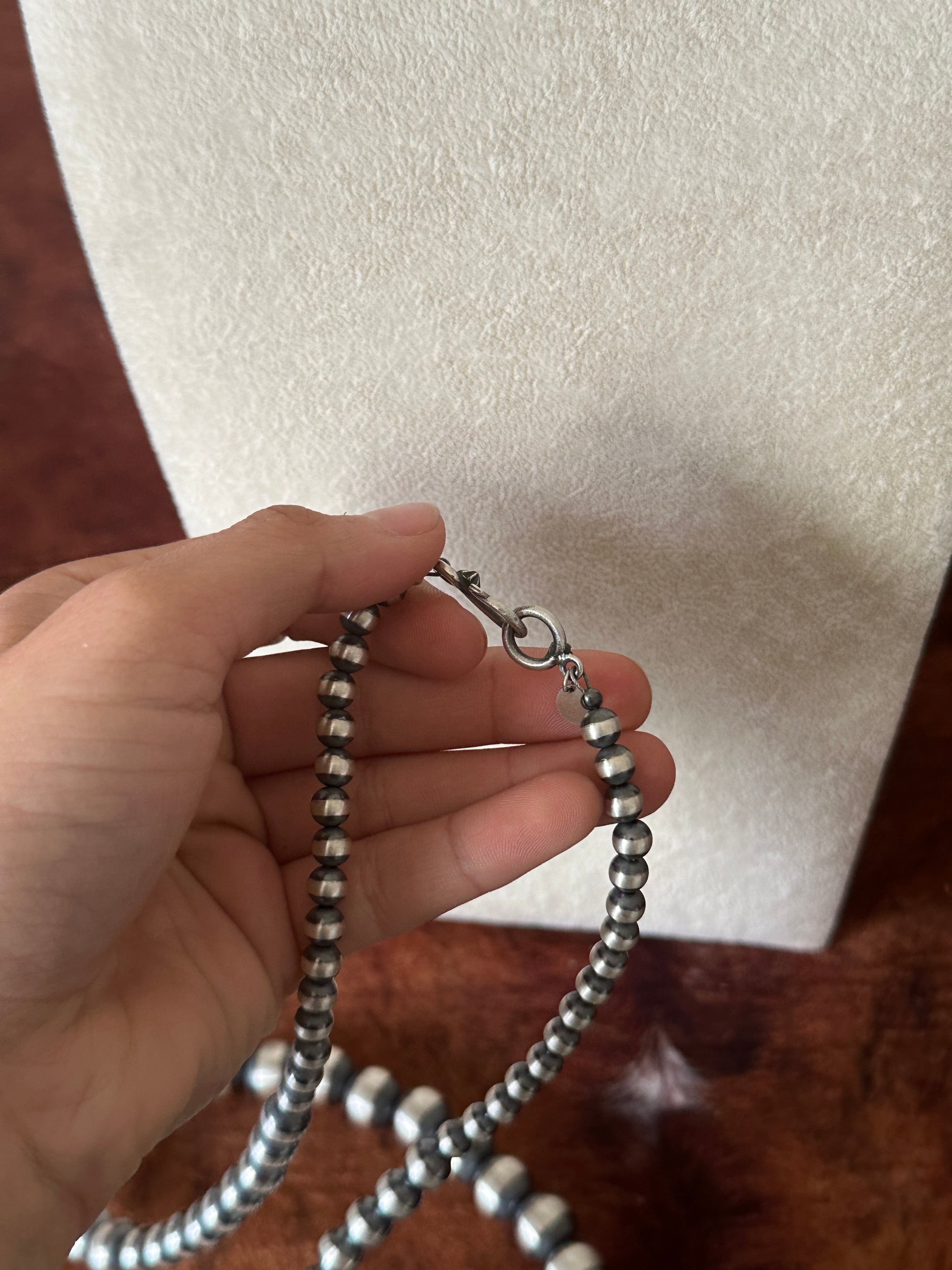 Navajo Strung 6 MM-12 MM Graduated Sterling Silver Pearls Beaded Necklace